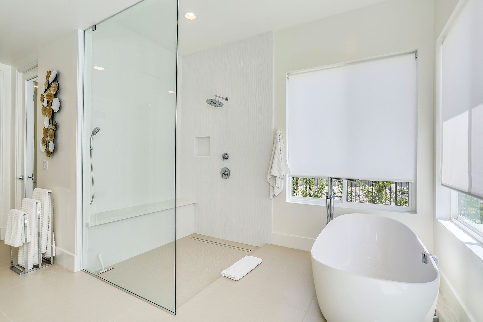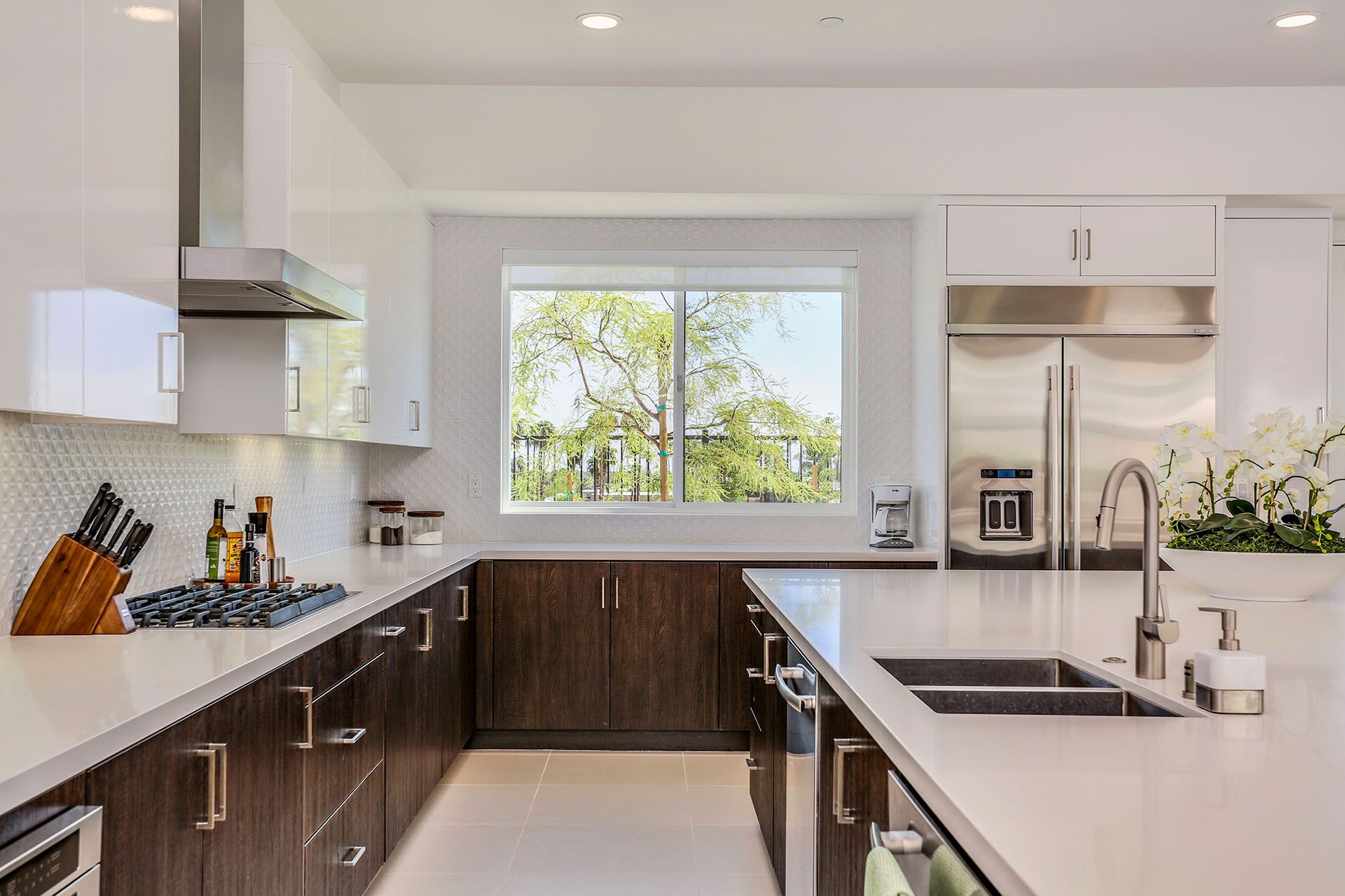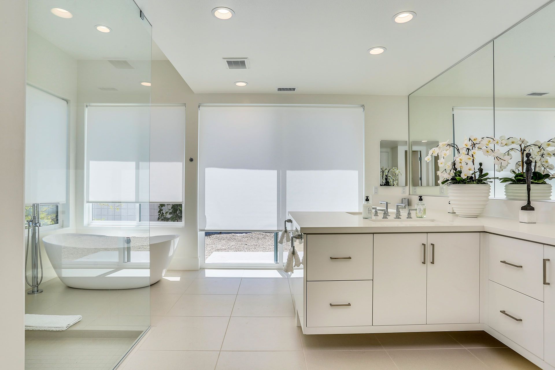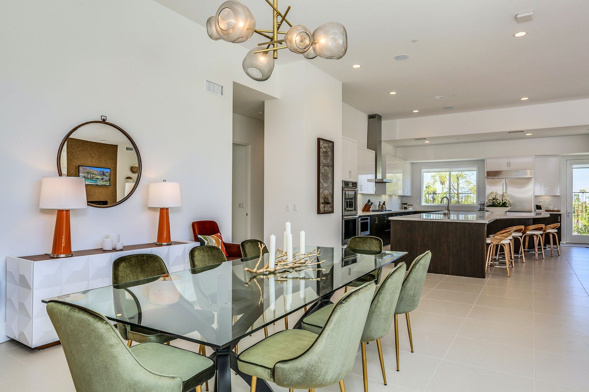 Beautifully appointed in the shades of the San Jacinto Mountains, this glamorous home captures the new-age modernist vibe of the LA desert. Stepping out to look around the garden, you'll notice tall swaying palms, vibrant red chairs and a sparking saline swimming pool with an integrated waterfall spa. Here, you'll also find a barbecue island bar with chic stools to perch on while sipping cocktails – we certainly know where we'd spend our time. Sliding glass doors welcome you into the living space, blurring the boundaries between outside and in, so you can gaze into the picturesque mountain silhouettes whether you are. Inside, there's a modern look with high vaulted ceilings, polished marble floors and a swanky chef's kitchen – enjoy a quick cup of coffee around the curved breakfast bar. Bright and roomy, all the bedrooms have their own personalities and open up to an outside area. They're also accompanied by some seriously stunning en-suite bathrooms – we could think of nothing better than taking a long soak in the freestanding bathtub to wash that chlorine off. In a historic tennis club neighbourhood, you're surrounded by great walking trails as well as the Palm Canyon Drive that will take just a six-minute car ride to reach. Flourishing with upscale shops, indie coffee houses and some excellent restaurants, there's plenty to explore. A sixteen-minute stroll north will find you in Downtown Palm Springs, boasting fancy boulevards and the glitz and glam of Hollywood. With so much around you, we think this mid-century pool pad is as convenient as it is stylish.