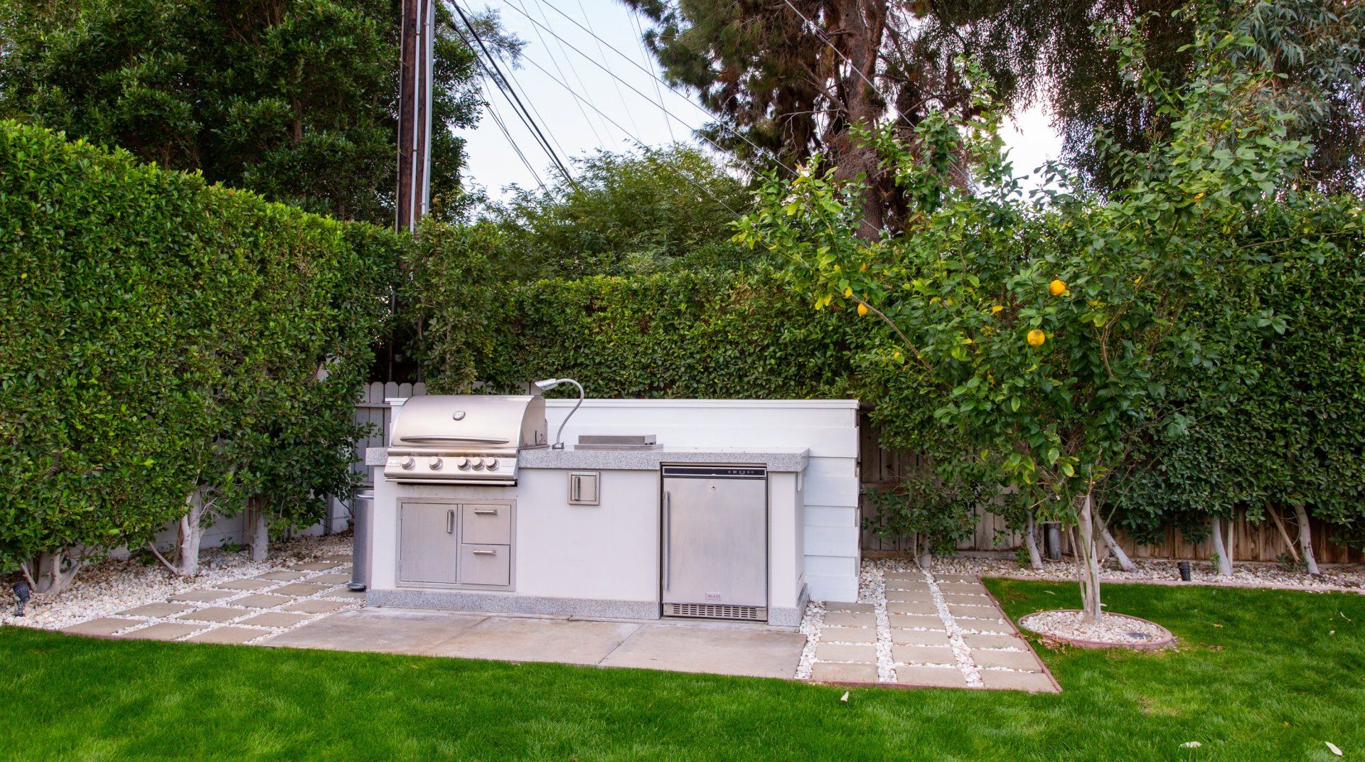 Set before a backdrop of dramatic mountains, this mid-century bungalow is an urban oasis in the city. Cacti line the path to the entrance, with some incredible treats behind that turquoise door. Let’s start outside – the green trim of your lush lawn and well-kept hedges surround a heated, saltwater pool, sun loungers, and a jacuzzi. And with a fire pit and professional barbecue, you can take the heat of the desert to its extreme.