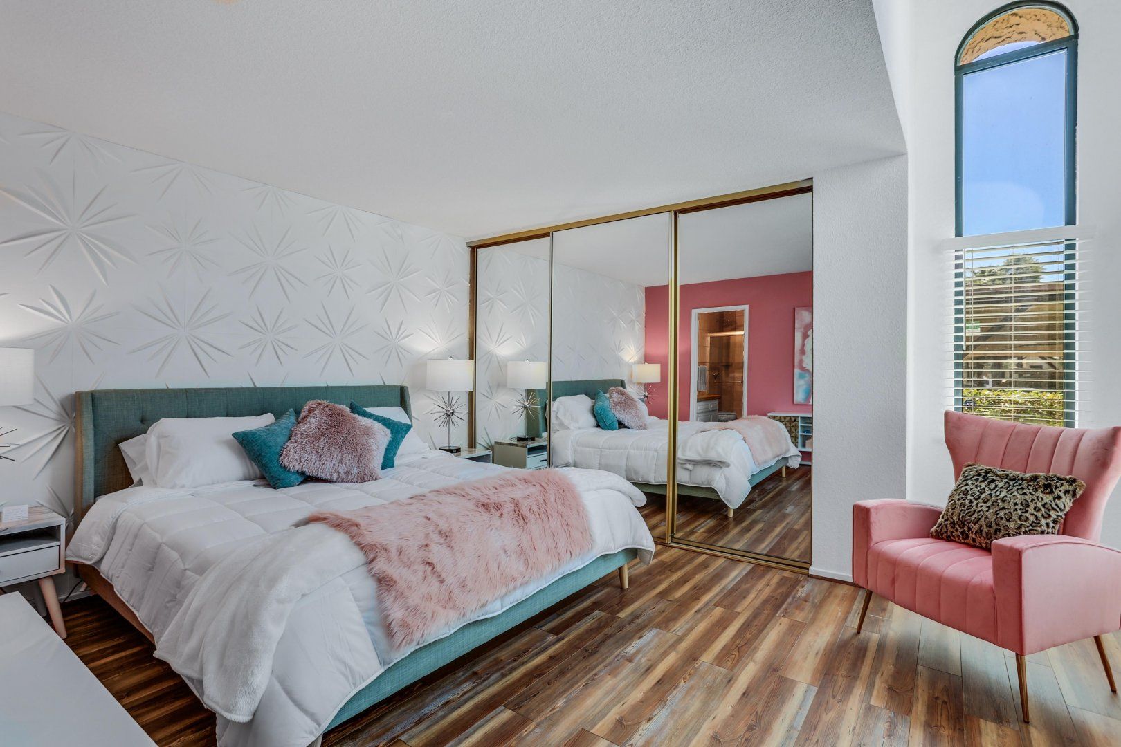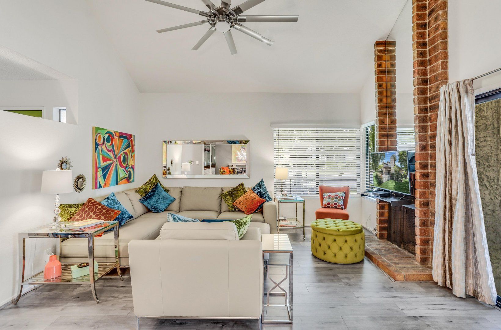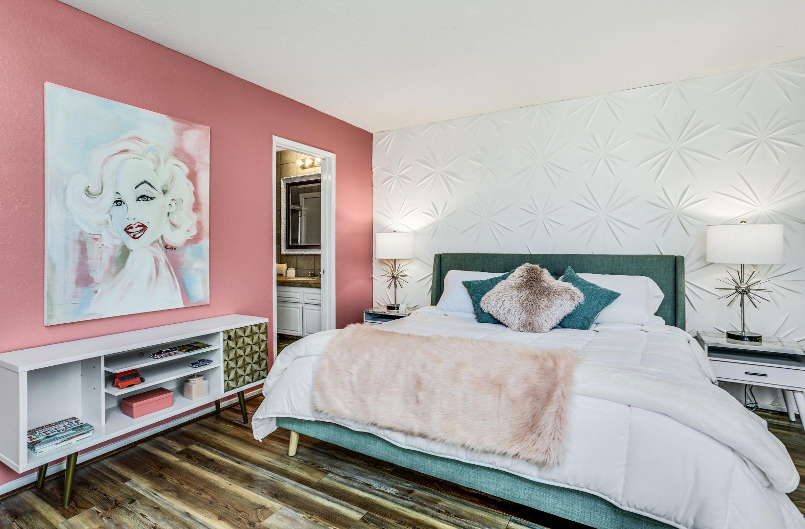 The interior is a careful blend of classic style and pop-art-inspired flourishes, providing a true feast for the eyes. Mix your favorite cocktail at the wet bar and flop down on one of the sofas as you admire the vaulted ceilings and carefully-curated collection of artworks. You'll also have your own terrace, where you can enjoy an alfresco meal in the warm Californian sunshine. And, there's even a shared swimming pool for refreshing dips when the temperature rises, along with a hot tub for alfresco soaks under the stars.