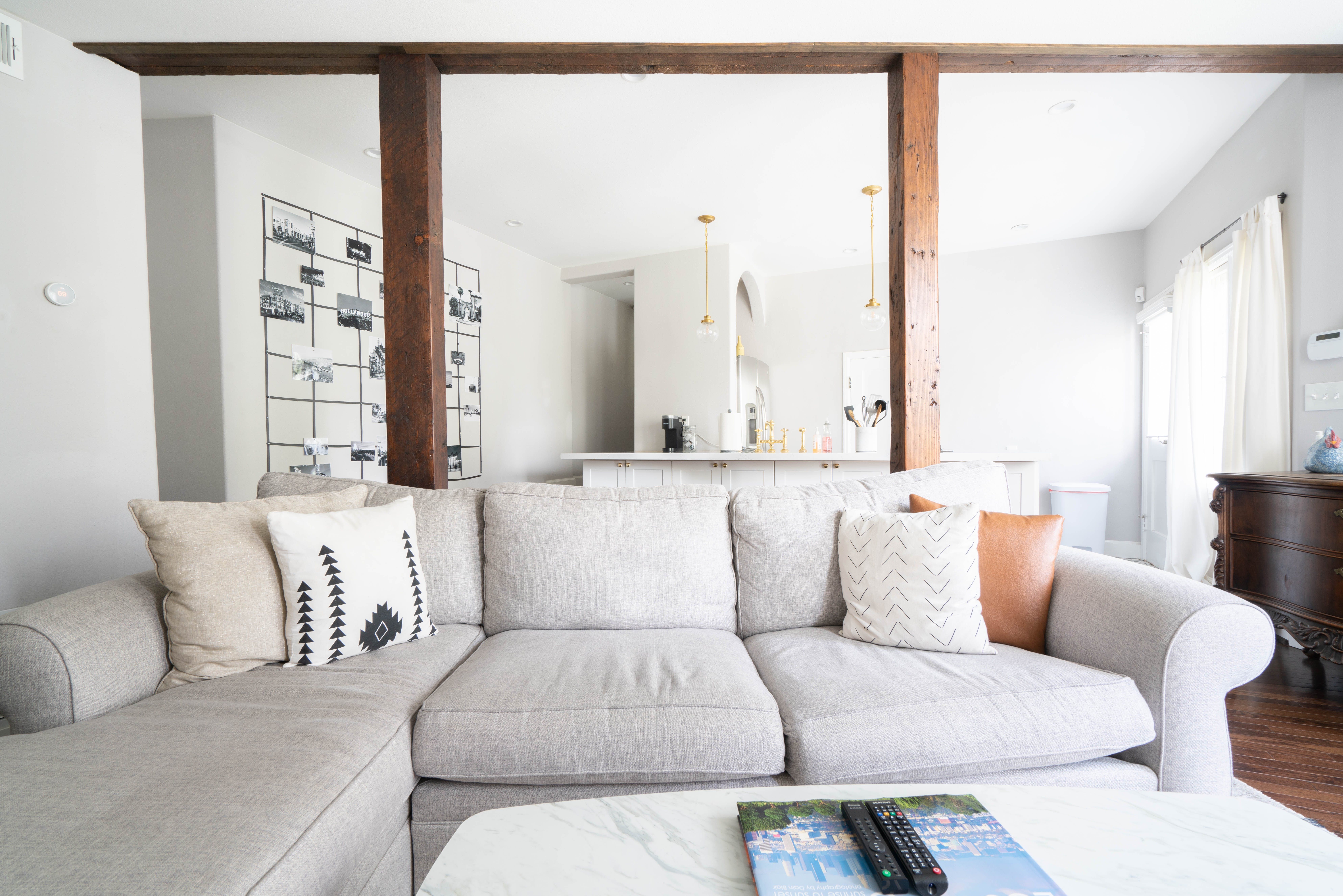 From the exterior of the home, Spanish-style architecture invites guests into a Mediterranean-like escape, all while residing just a twenty-minute drive away from downtown LA. Inside, contemporary furnishings, cosy textures and a neutral colour scheme pave the way to a relaxing stay. We particularly love the unique layout of the main living area and open plan kitchen, which invites guests to come together in a sociable setting amongst the day or night's adventures in the city.