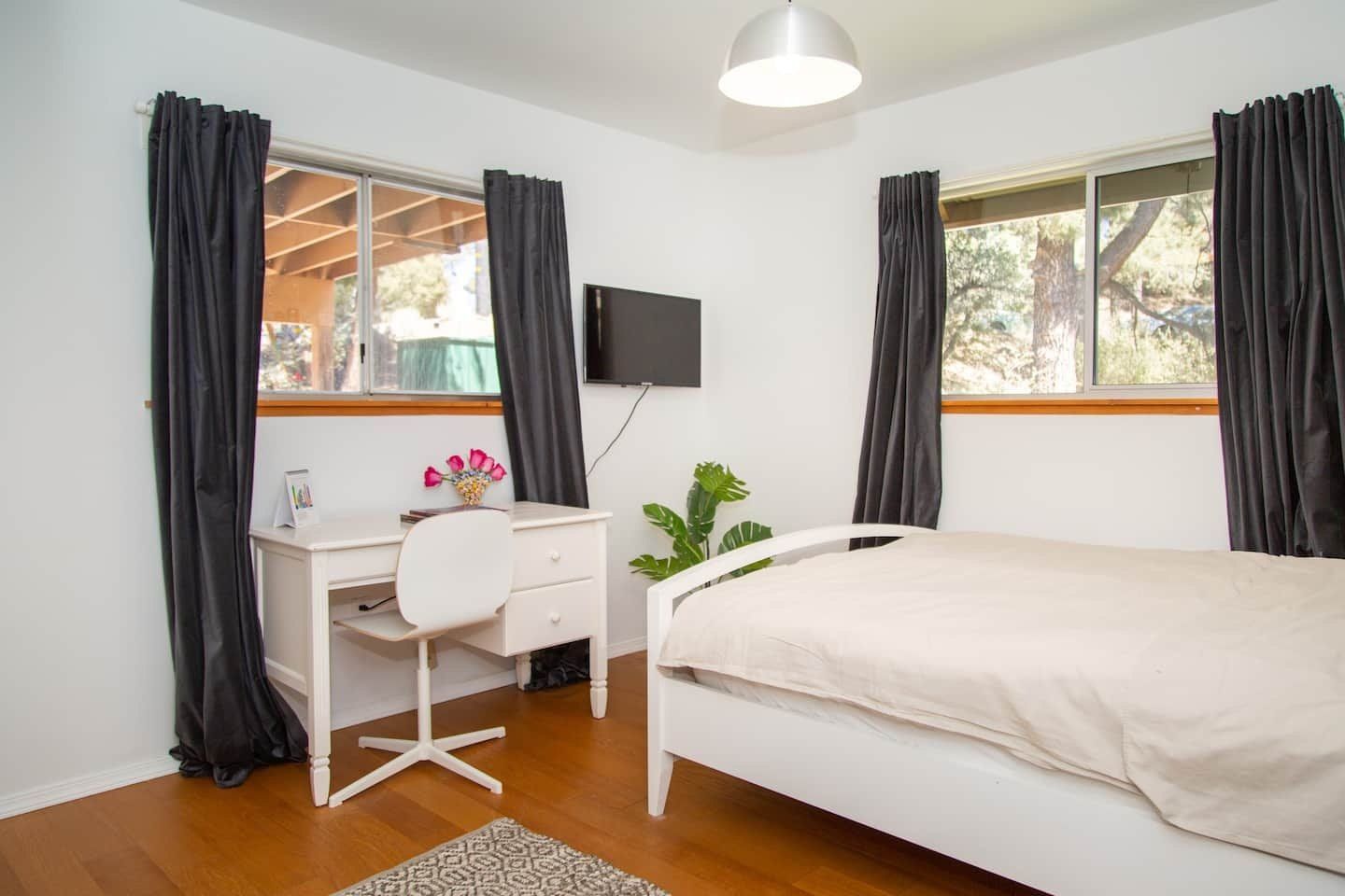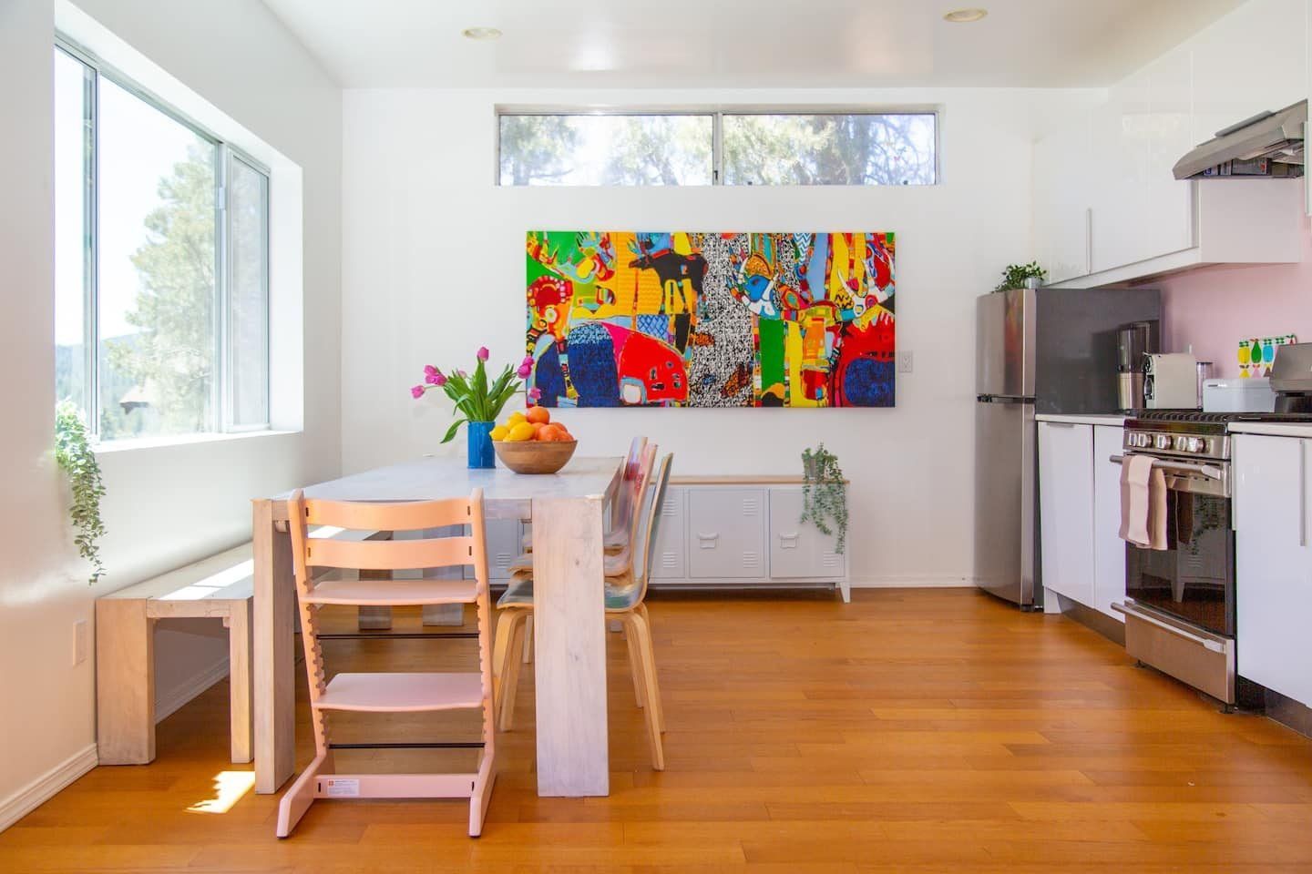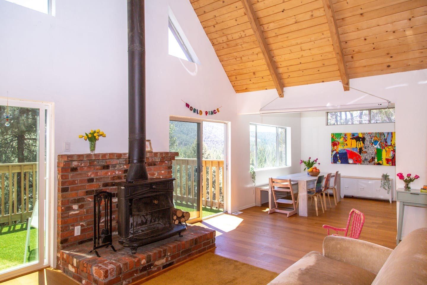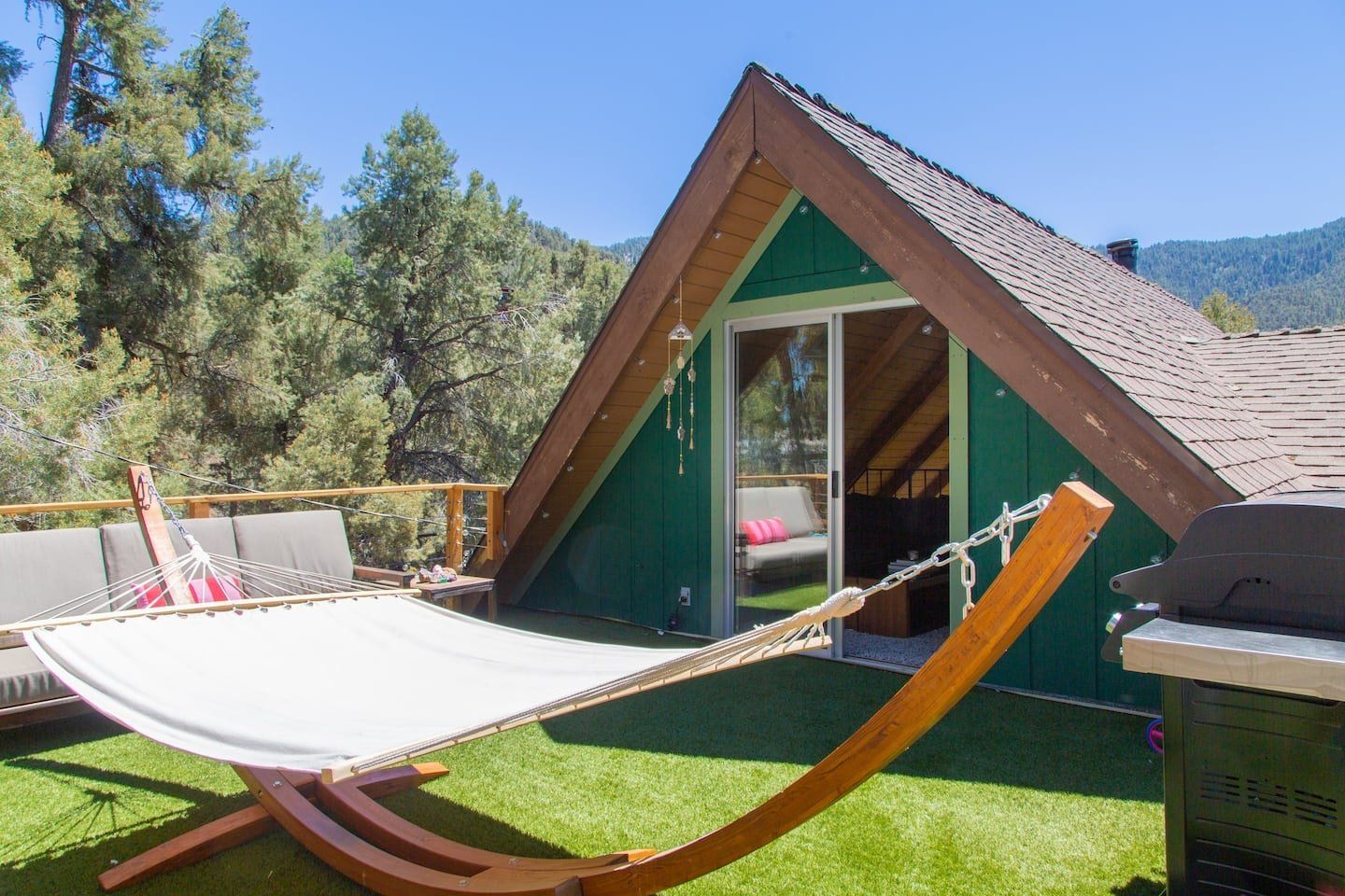 Forest cabins generally have an old-world feel to them but not this modern beauty. Built out on stilts at the top of a hill and set over three floors – each with a deck to make the most of the views – this home looks out across the woods to the mountains. Set on the edge of the Pine Mountain Club community, shared local facilities include an outdoor pool, golf course and tennis courts. Inside the cabin, there's a distinct Skandi look, with white walls, plenty of natural wood and occasional bright pops of colour. A log burner up on a brick-built hearth is the centrepiece of the double-height living space, while large picture windows and sliding doors make sure you see your surroundings from every seat in the house. There's a modern kitchen and an office area if you have to get some work done while you're away, and a children's playroom – making it perfect for families. Choose a spot to sit outside with a cool beer, or head up to the barbecue deck to use the grill. And after a long hike on the trails, steam away your aches and pains in the home's sauna.