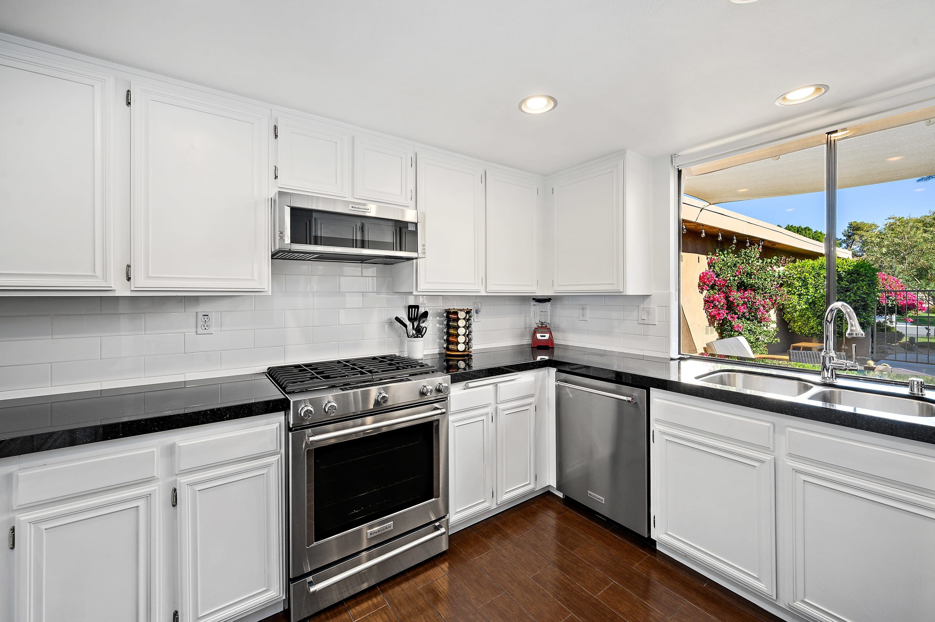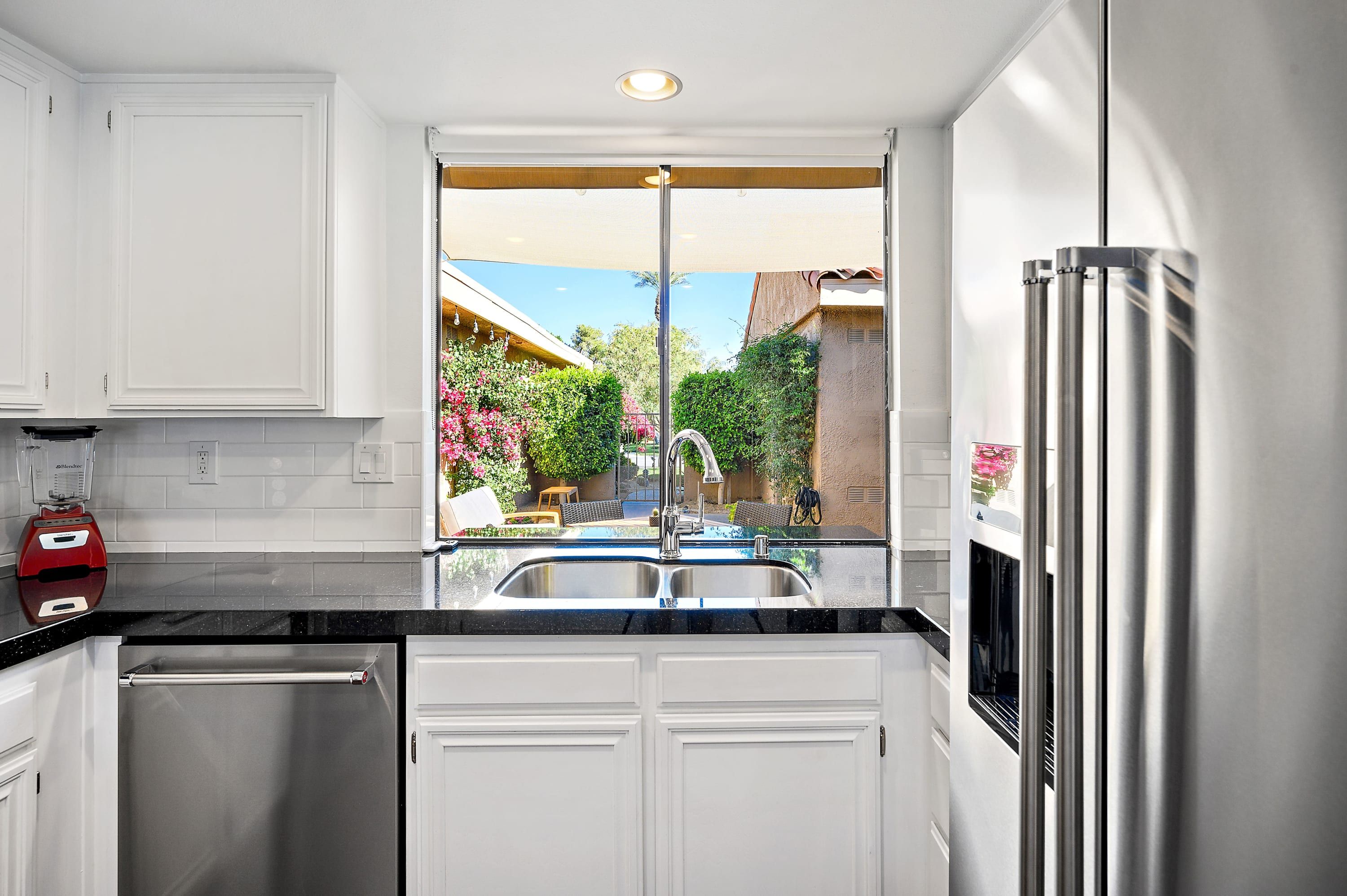 Nestled in the Sunrise Country Club and neighbouring Palm Springs, this condo combines the best of Coachella Valley living. Sleek slate grey interiors create a calming atmosphere inside, while squishy king size beds ensure a perfect night’s sleep. The view out of each window looks like a postcard. Lush green plant life, desert flowers, blue mountains and palm tree studded landscapes will take your breath away at every turn.
