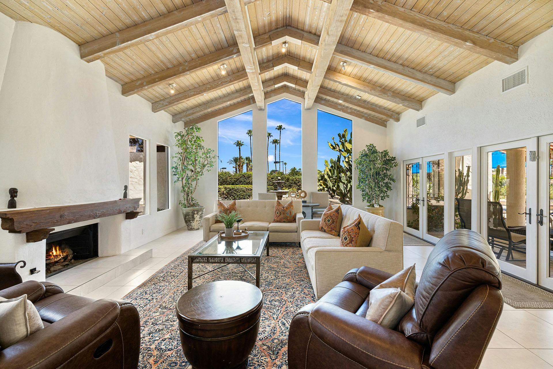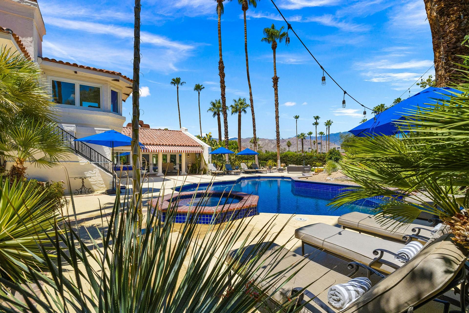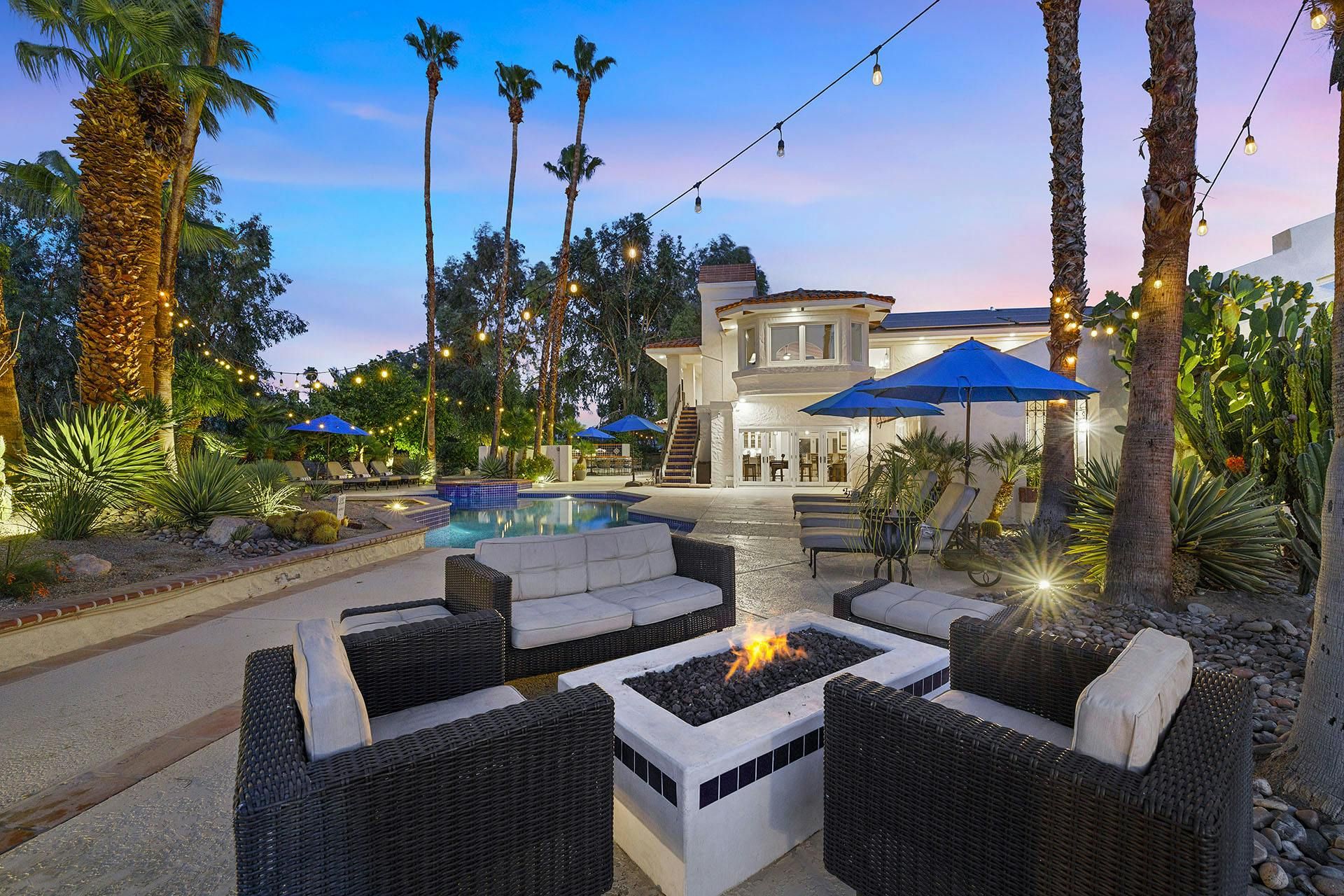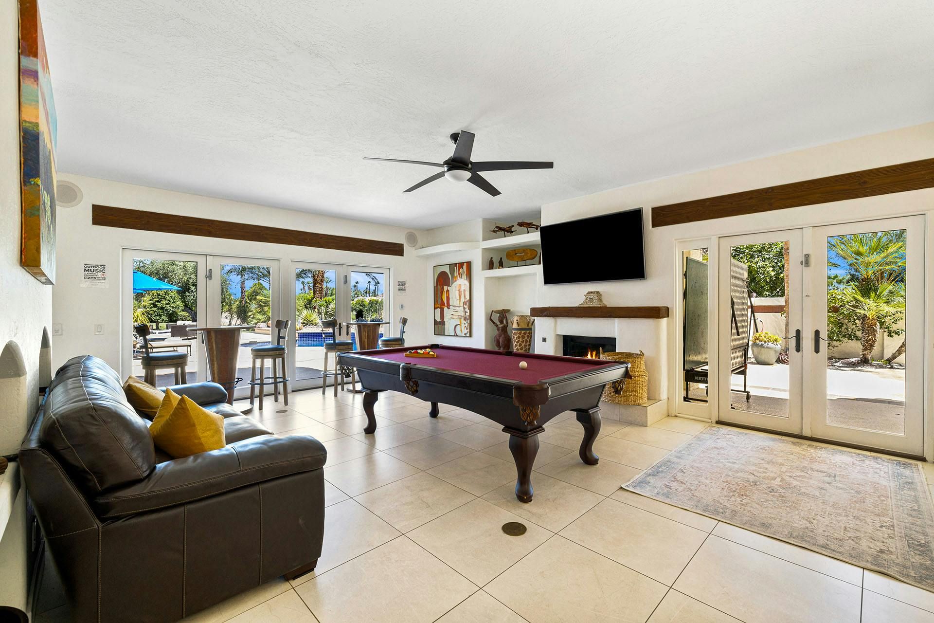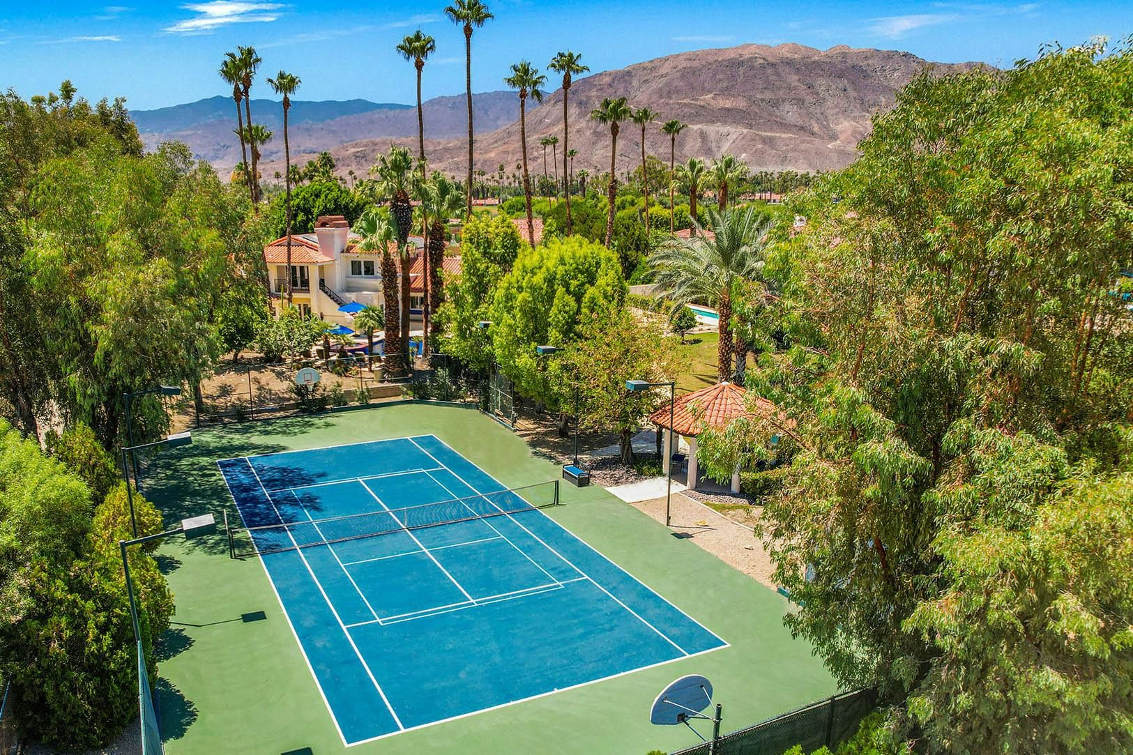 With two swimming pools, a floodlit tennis court, boules court, outdoor kitchen, fire pit lounge, and a children’s playground, this villa feels more like a private resort than a rental home. The vibe is relaxed desert living, with bright, welcoming interiors featuring fireplaces and large windows that frame stunning views of the surrounding mountains. It sits right in the heart of the Coachella Valley, with the shops, restaurants, and boutiques of El Paseo just a five-minute drive away, and Palm Springs only twenty minutes down the road.