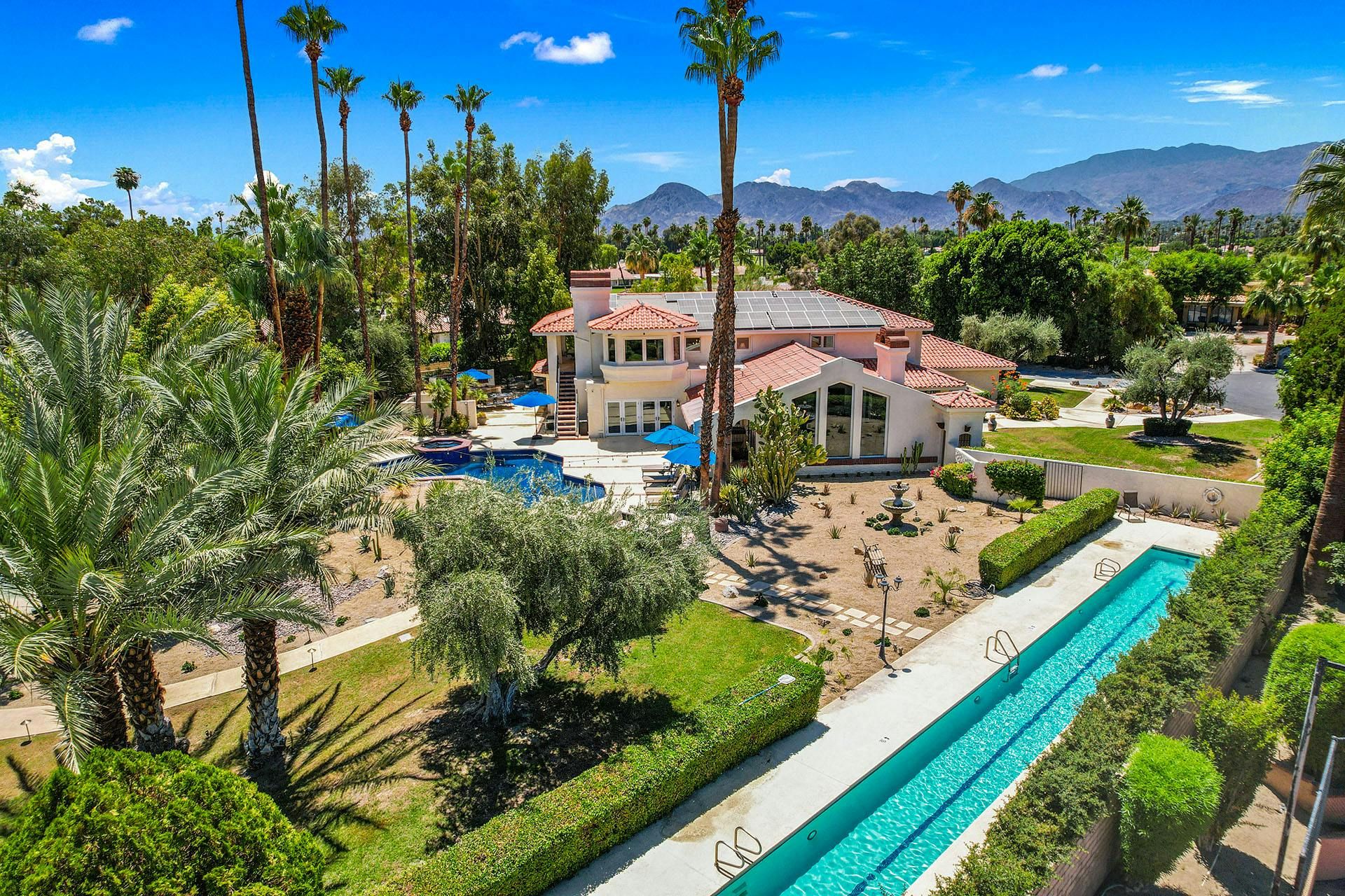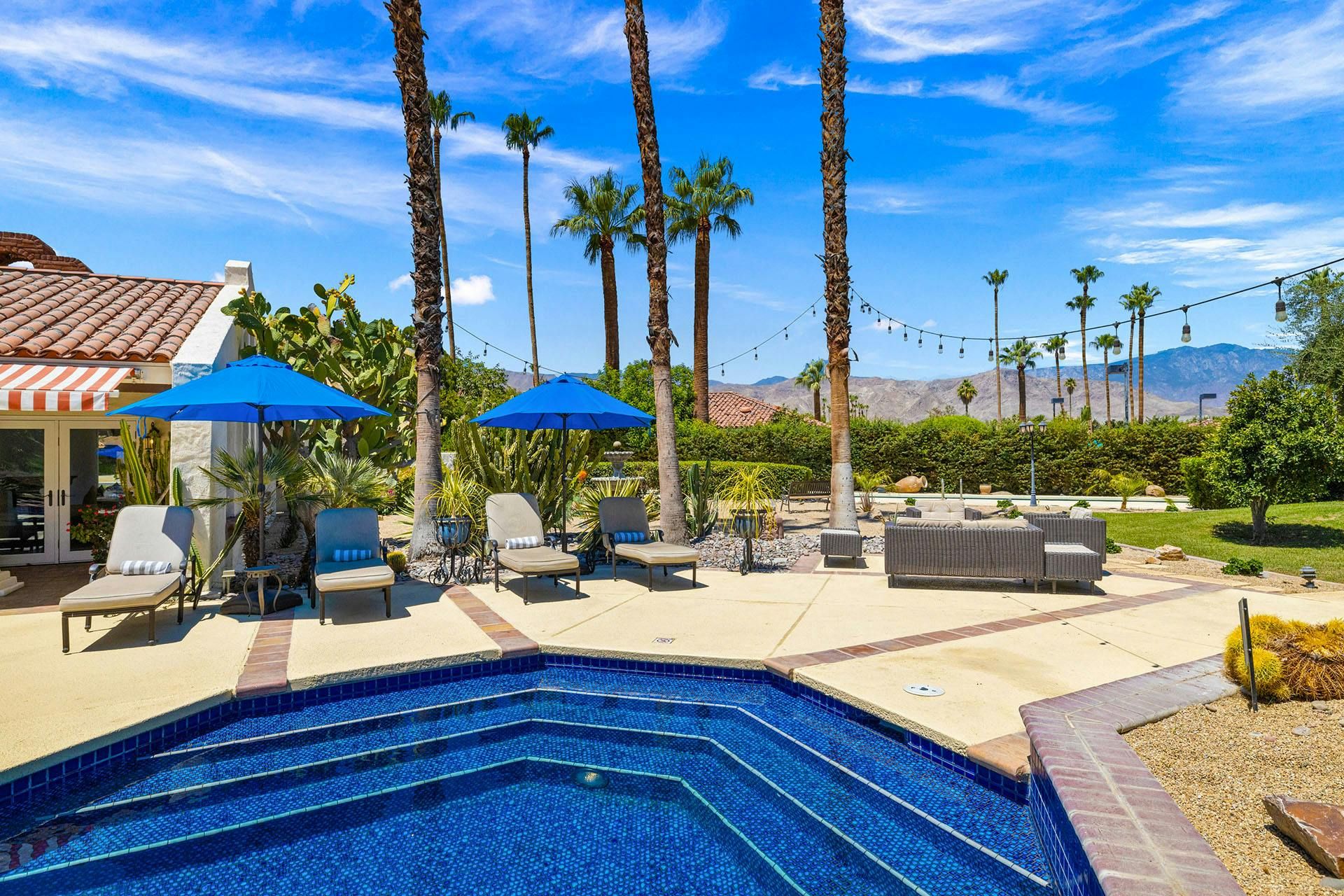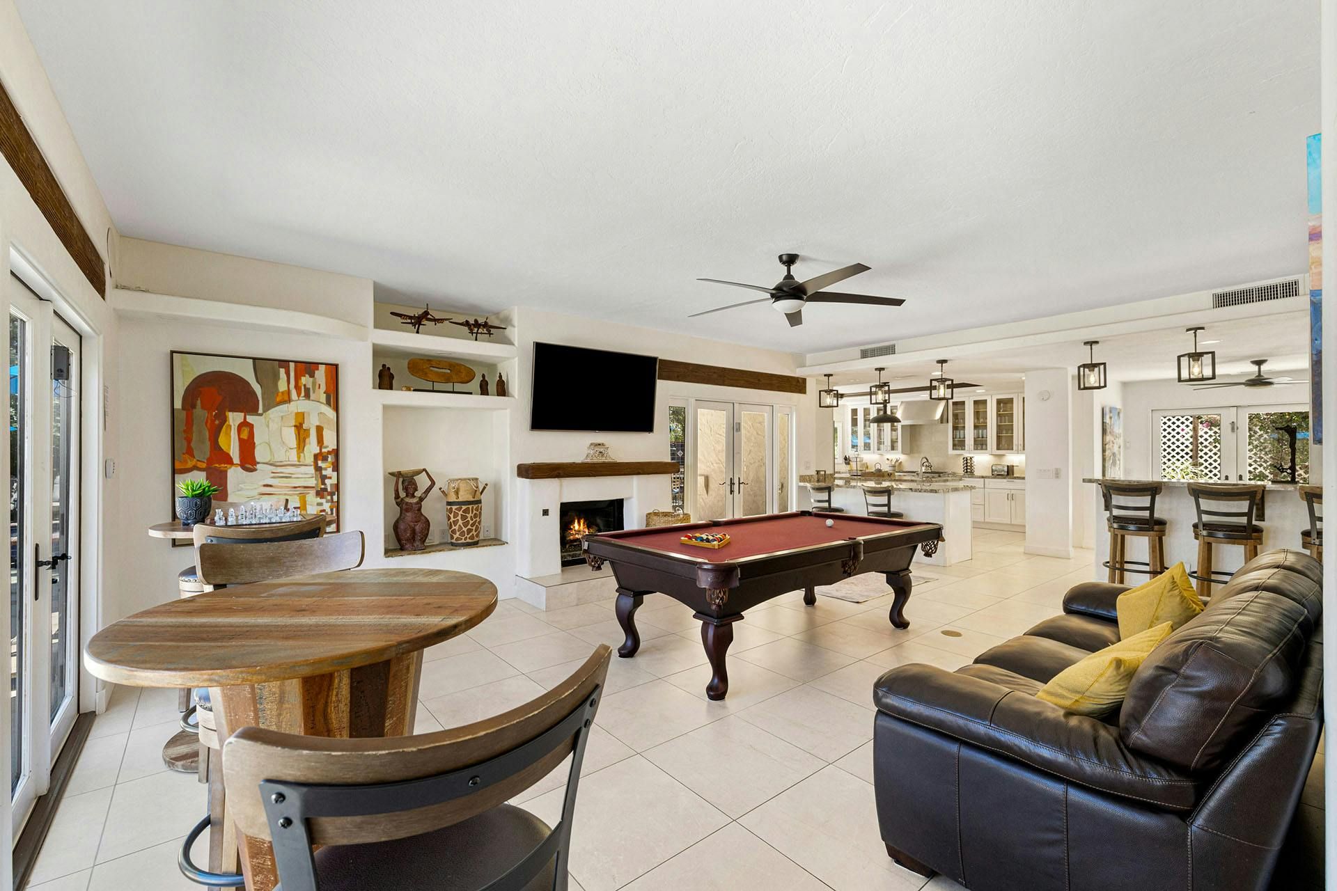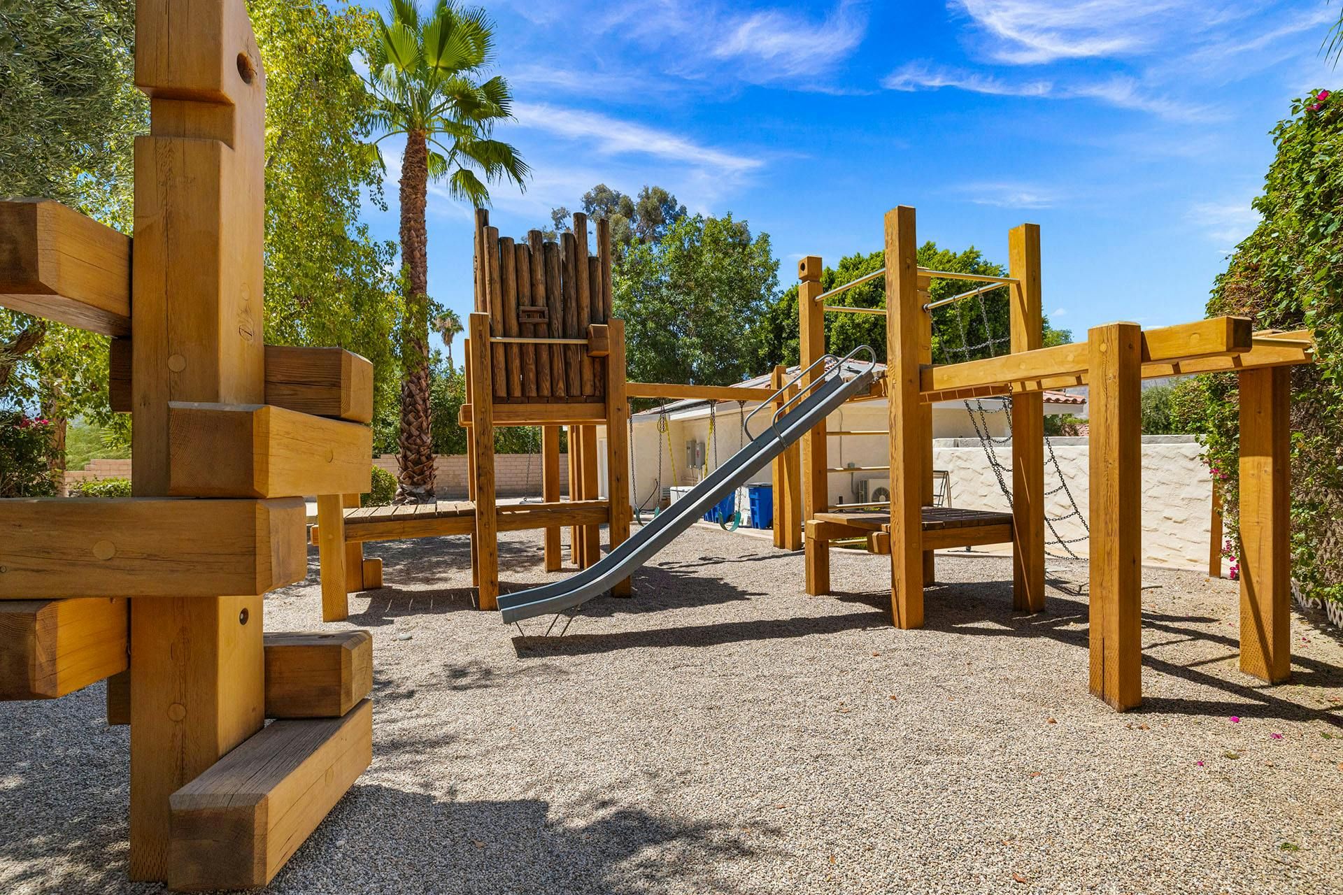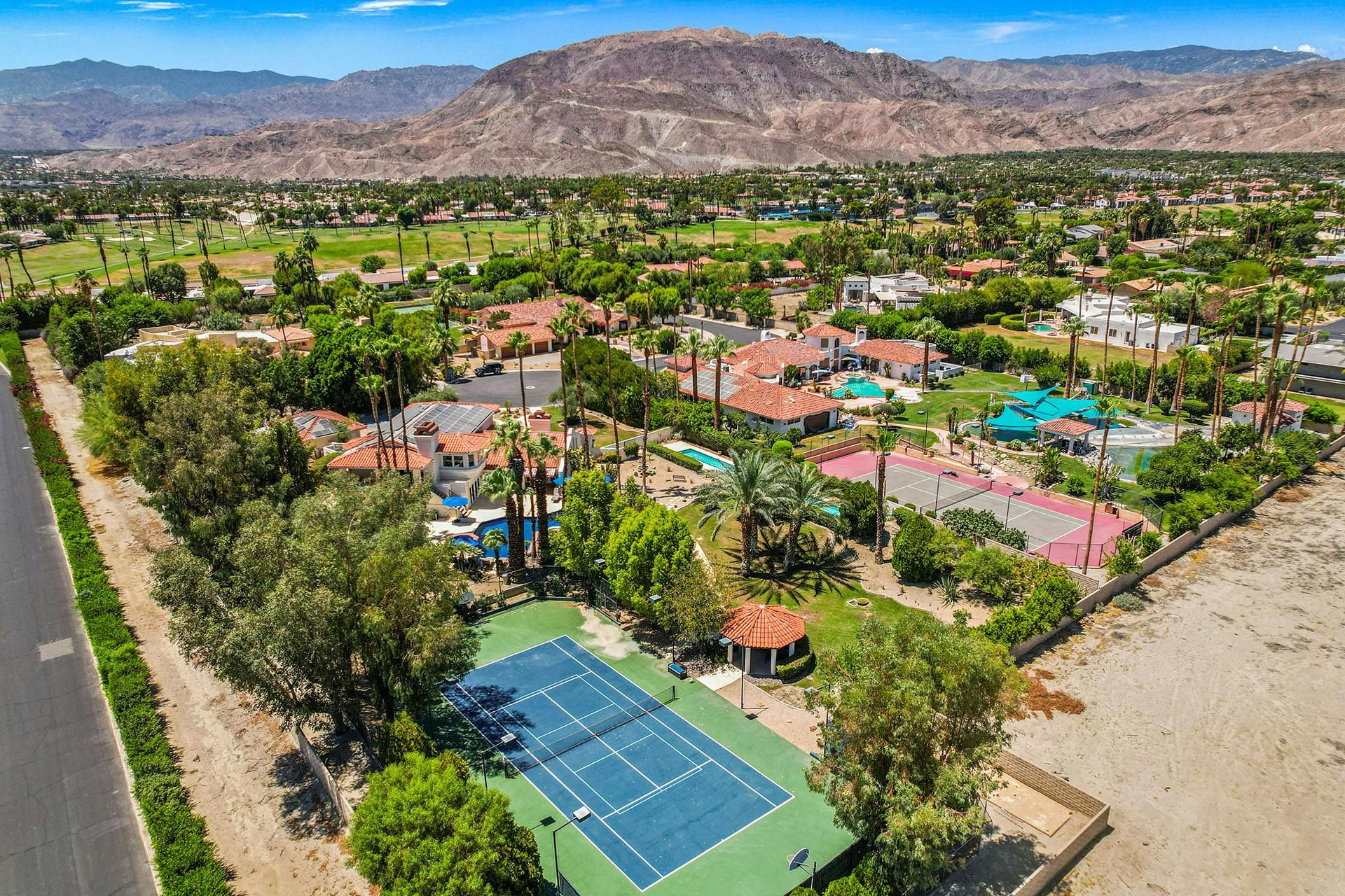 With two swimming pools, a floodlit tennis court, boules court, outdoor kitchen, fire pit lounge, and a children’s playground, this villa feels more like a private resort than a rental home. The vibe is relaxed desert living, with bright, welcoming interiors featuring fireplaces and large windows that frame stunning views of the surrounding mountains. It sits right in the heart of the Coachella Valley, with the shops, restaurants, and boutiques of El Paseo just a five-minute drive away, and Palm Springs only twenty minutes down the road.
