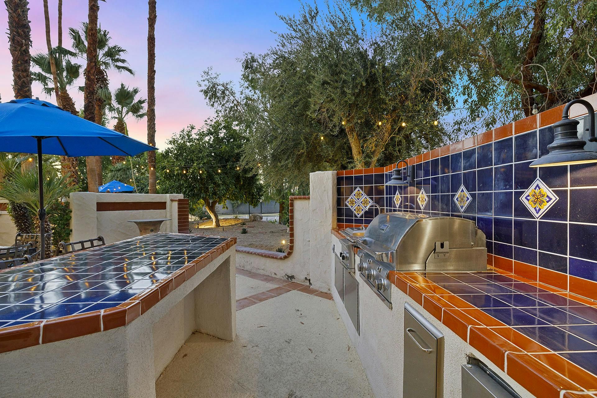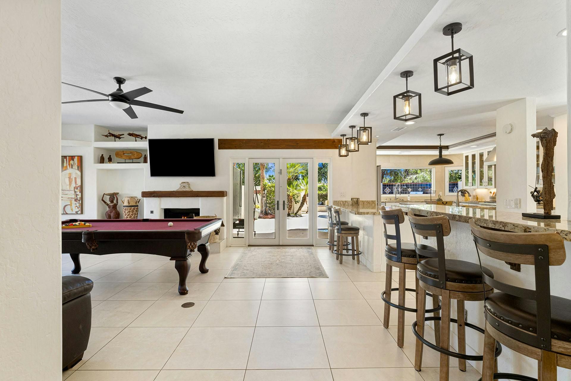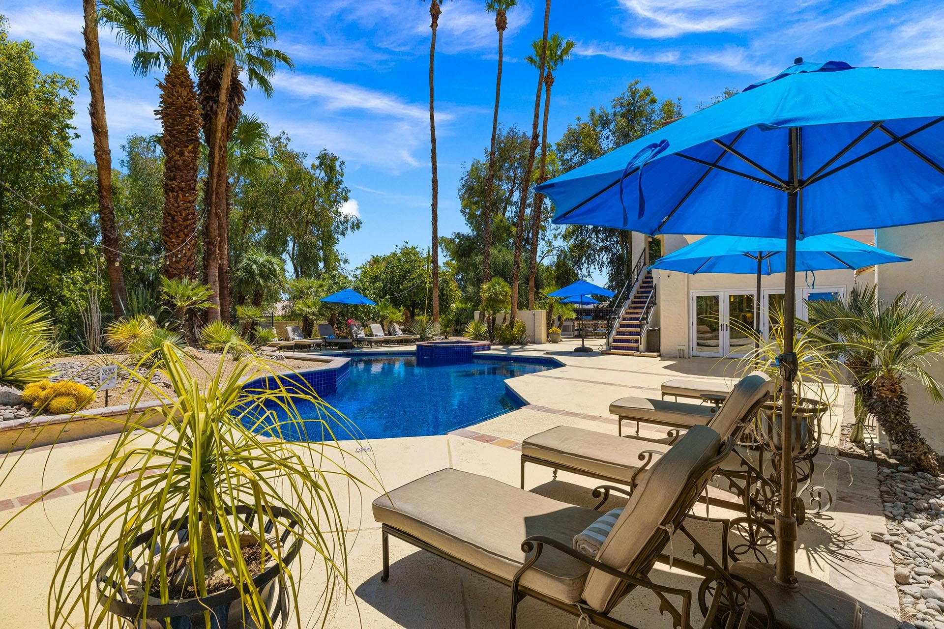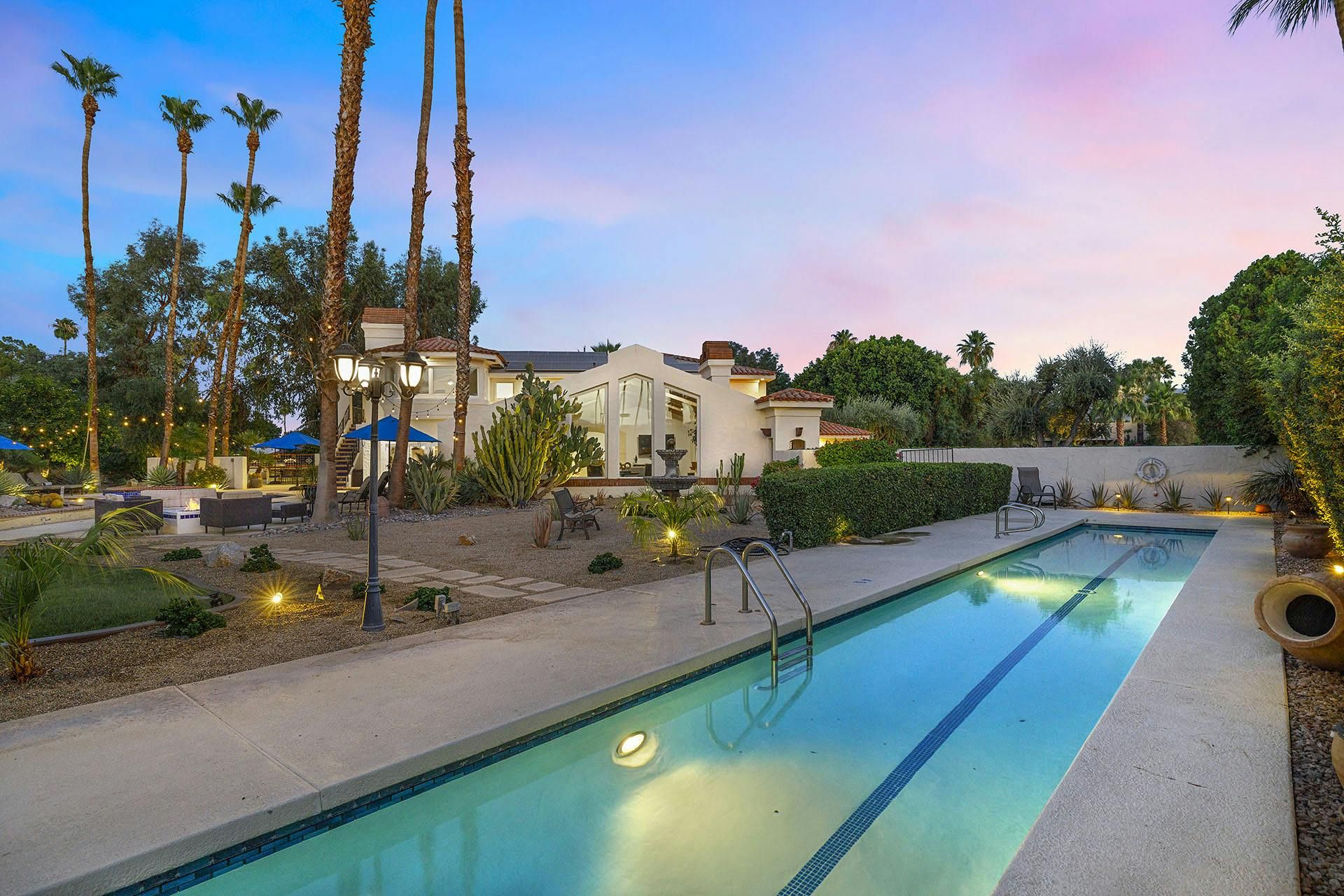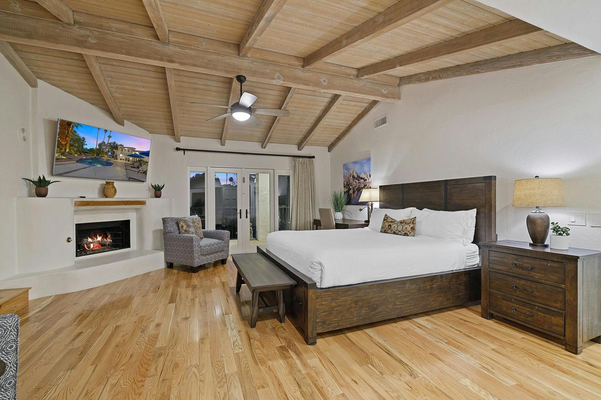 With two swimming pools, a floodlit tennis court, boules court, outdoor kitchen, fire pit lounge, and a children’s playground, this villa feels more like a private resort than a rental home. The vibe is relaxed desert living, with bright, welcoming interiors featuring fireplaces and large windows that frame stunning views of the surrounding mountains. It sits right in the heart of the Coachella Valley, with the shops, restaurants, and boutiques of El Paseo just a five-minute drive away, and Palm Springs only twenty minutes down the road.
