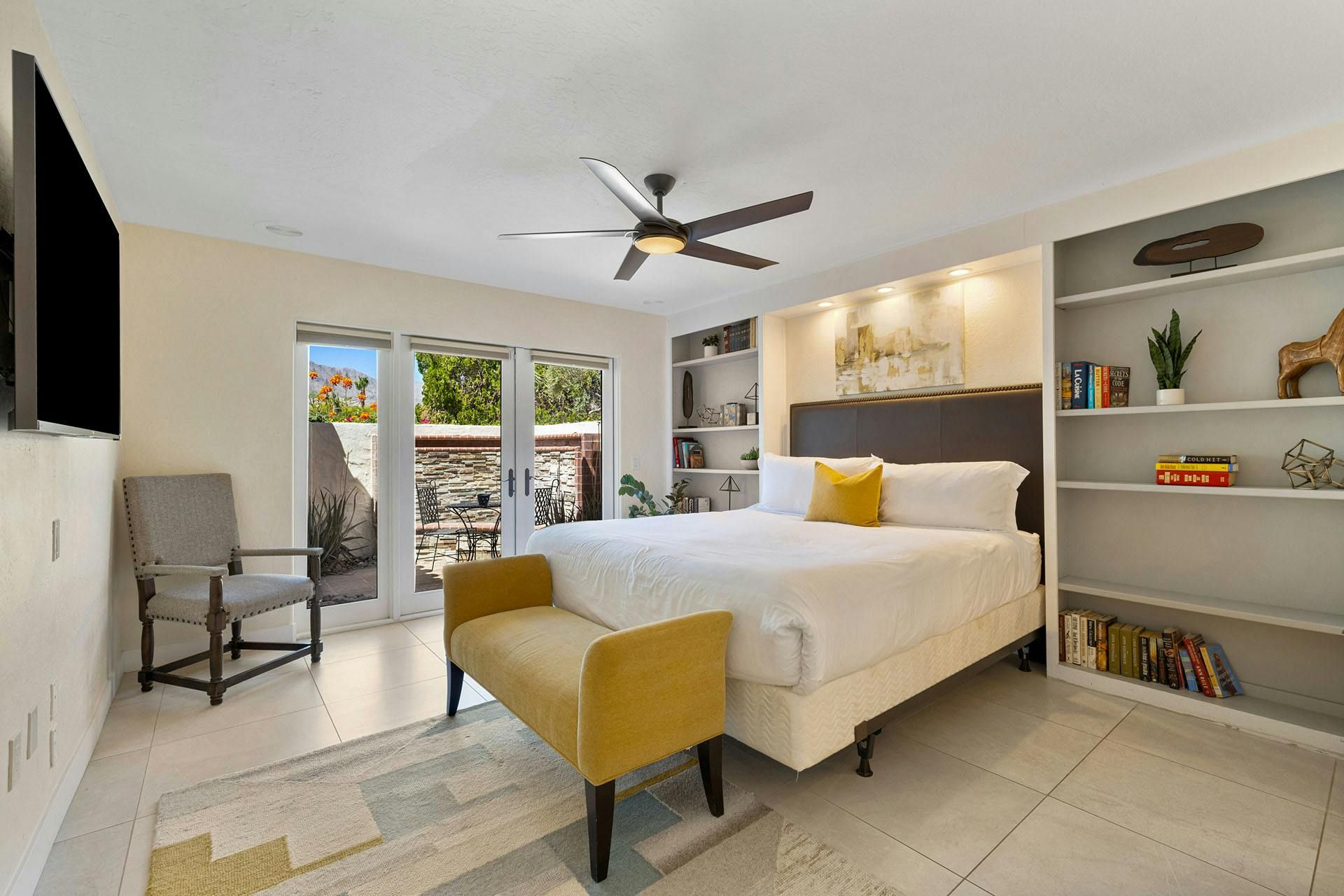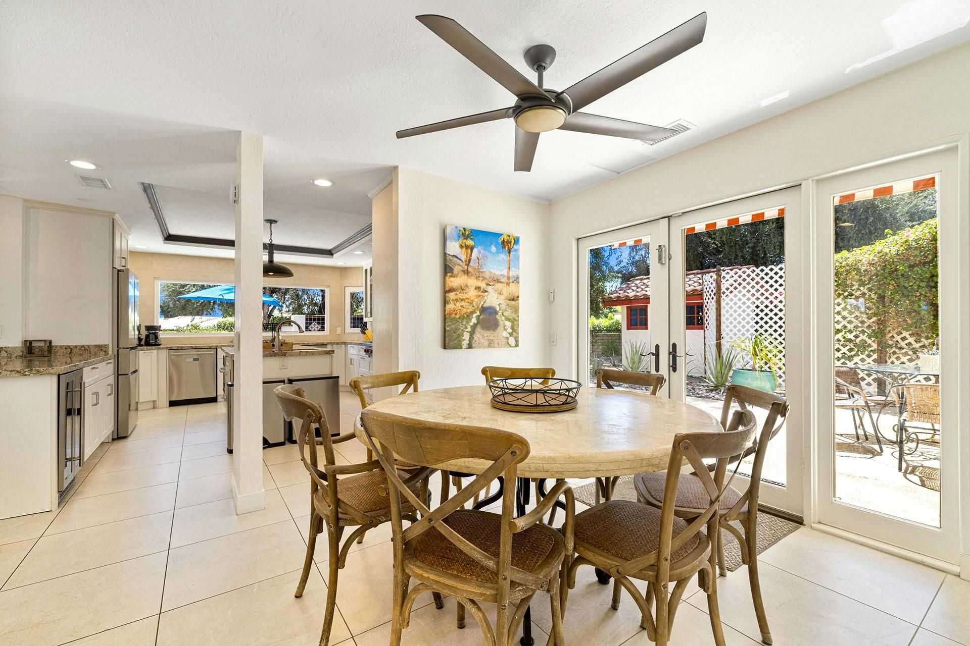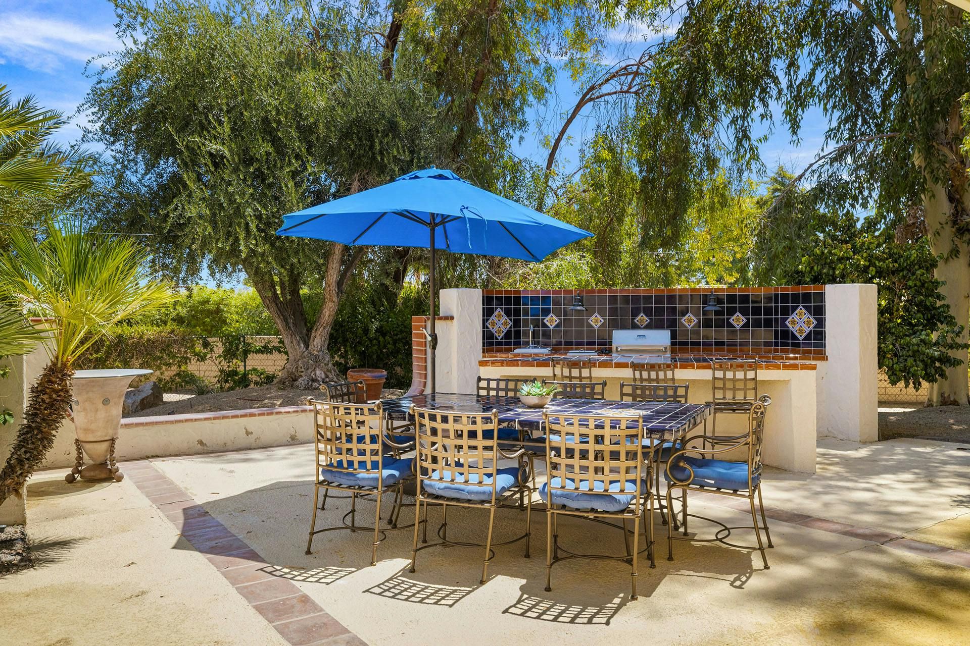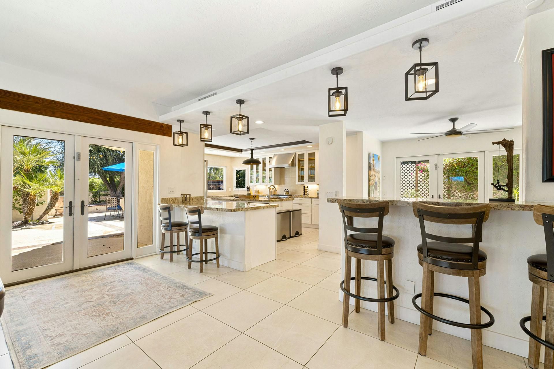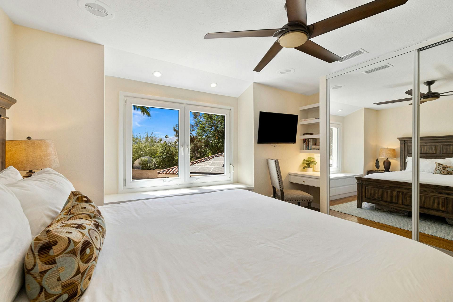 With two swimming pools, a floodlit tennis court, boules court, outdoor kitchen, fire pit lounge, and a children’s playground, this villa feels more like a private resort than a rental home. The vibe is relaxed desert living, with bright, welcoming interiors featuring fireplaces and large windows that frame stunning views of the surrounding mountains. It sits right in the heart of the Coachella Valley, with the shops, restaurants, and boutiques of El Paseo just a five-minute drive away, and Palm Springs only twenty minutes down the road.