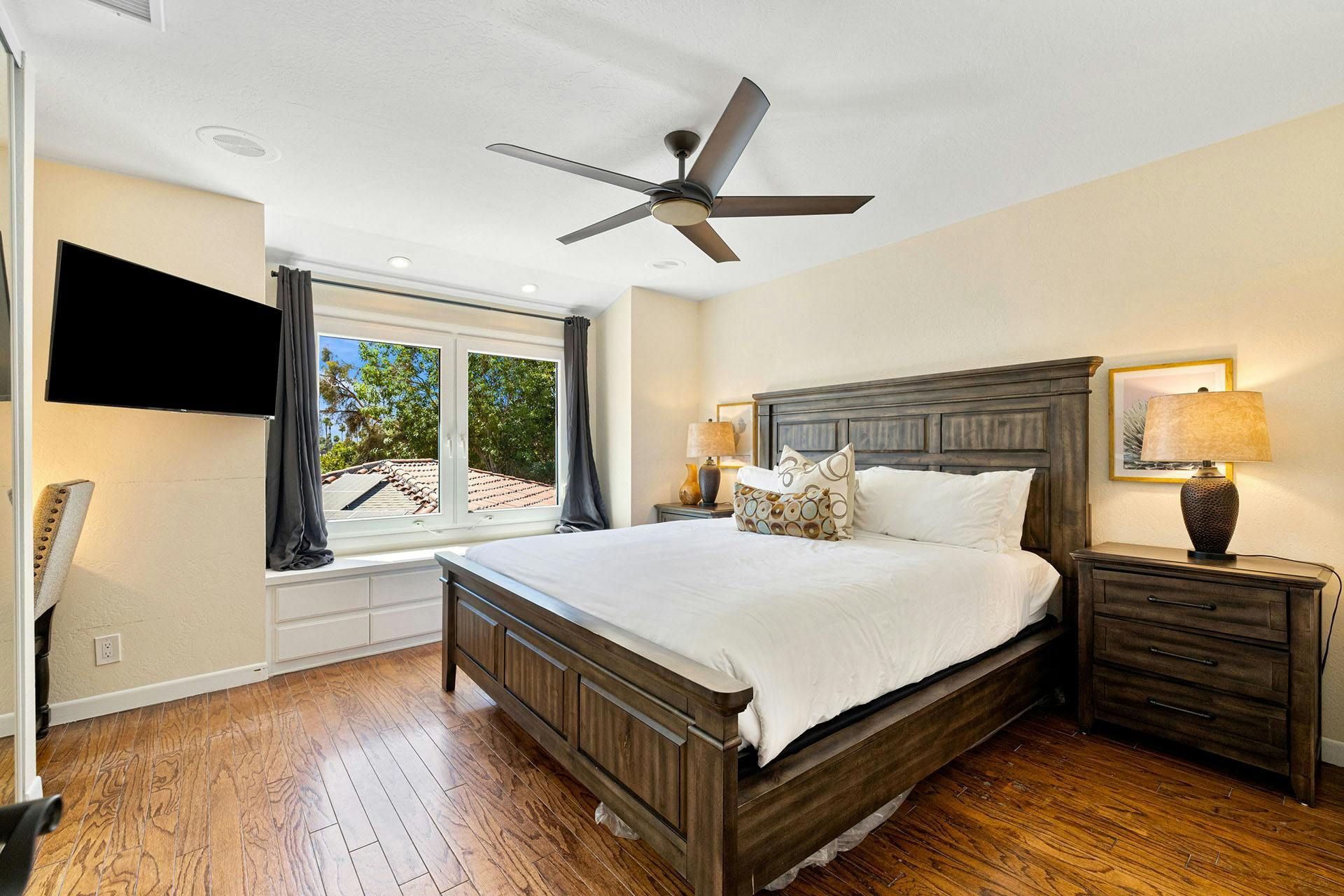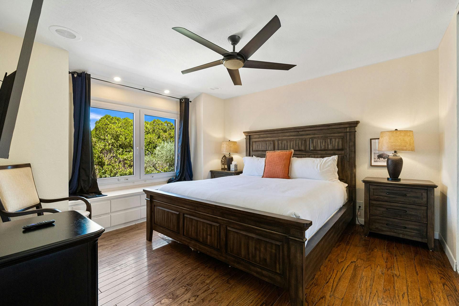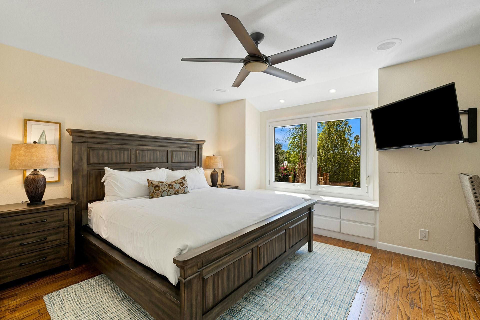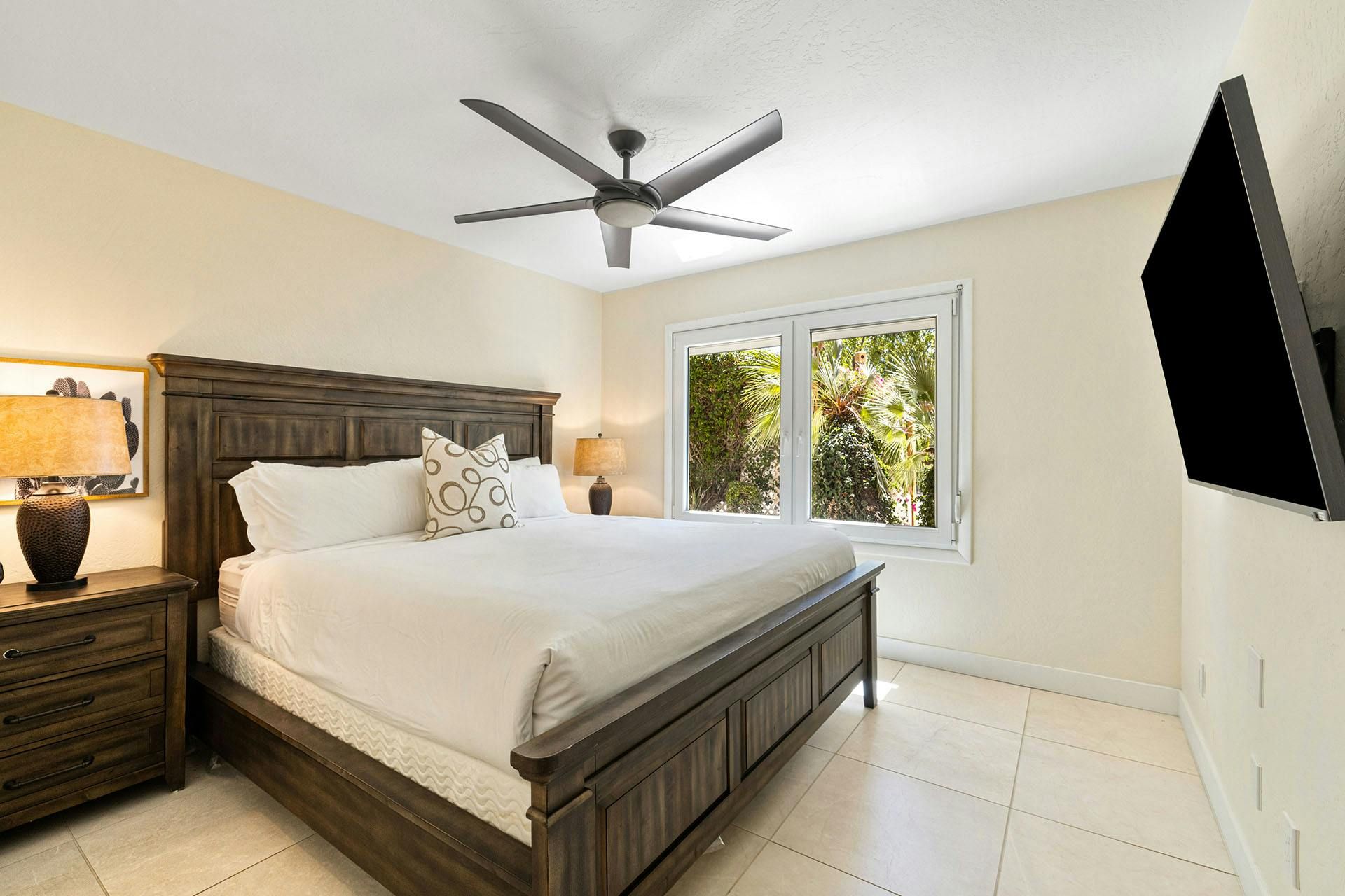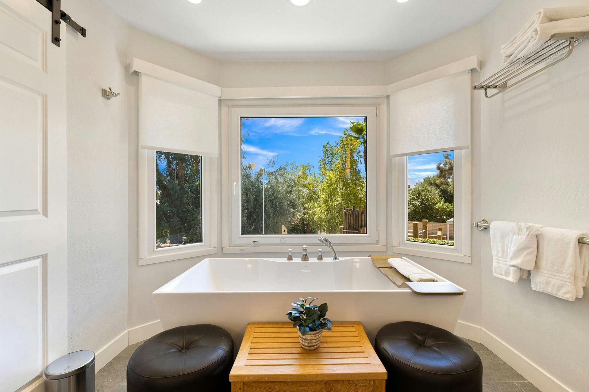 With two swimming pools, a floodlit tennis court, boules court, outdoor kitchen, fire pit lounge, and a children’s playground, this villa feels more like a private resort than a rental home. The vibe is relaxed desert living, with bright, welcoming interiors featuring fireplaces and large windows that frame stunning views of the surrounding mountains. It sits right in the heart of the Coachella Valley, with the shops, restaurants, and boutiques of El Paseo just a five-minute drive away, and Palm Springs only twenty minutes down the road.