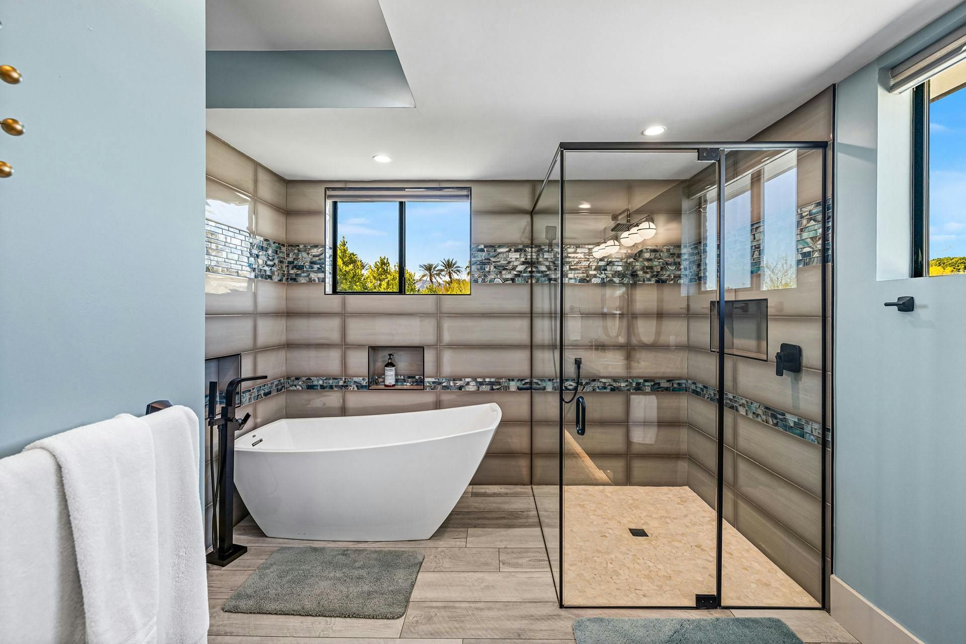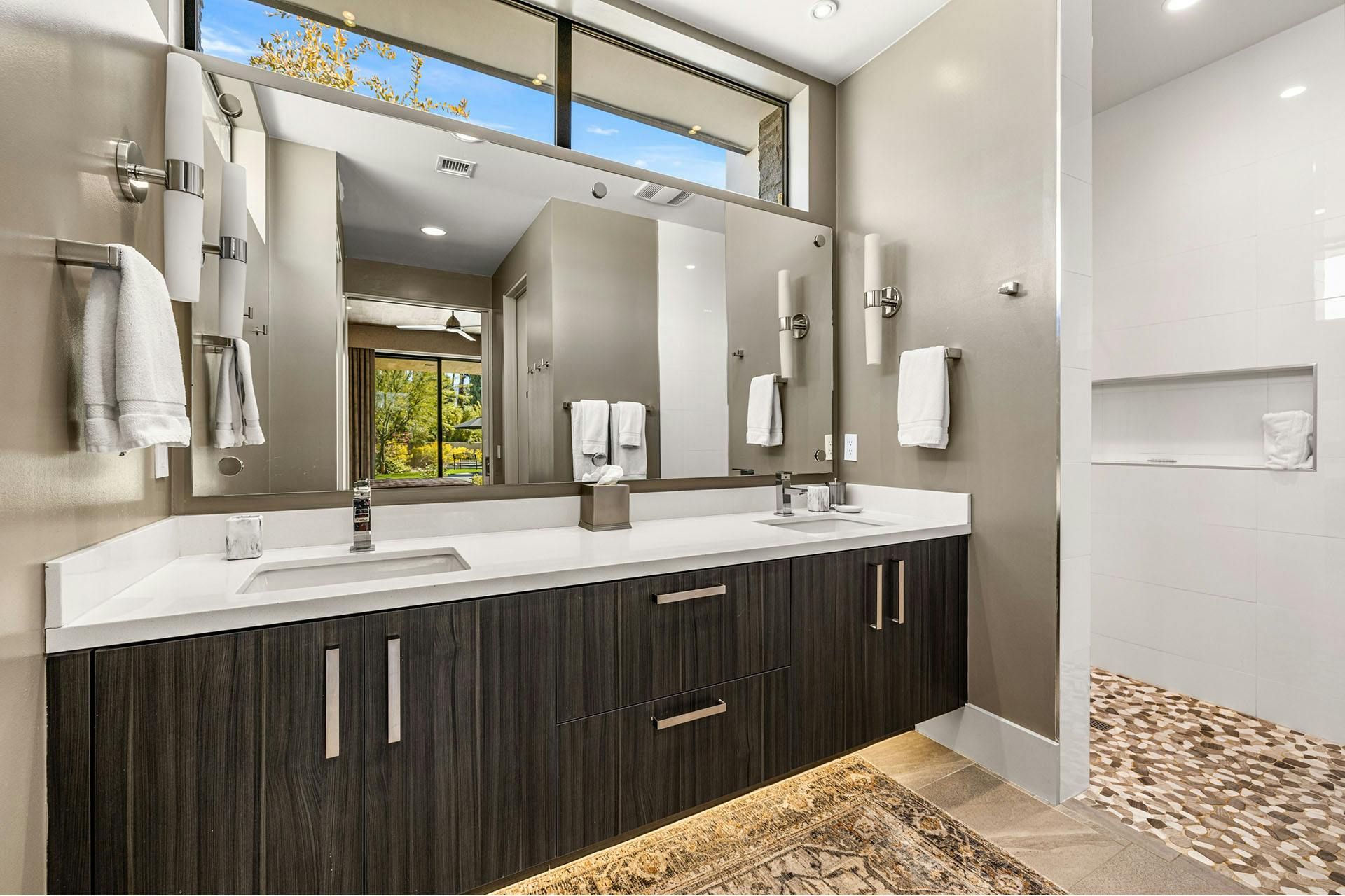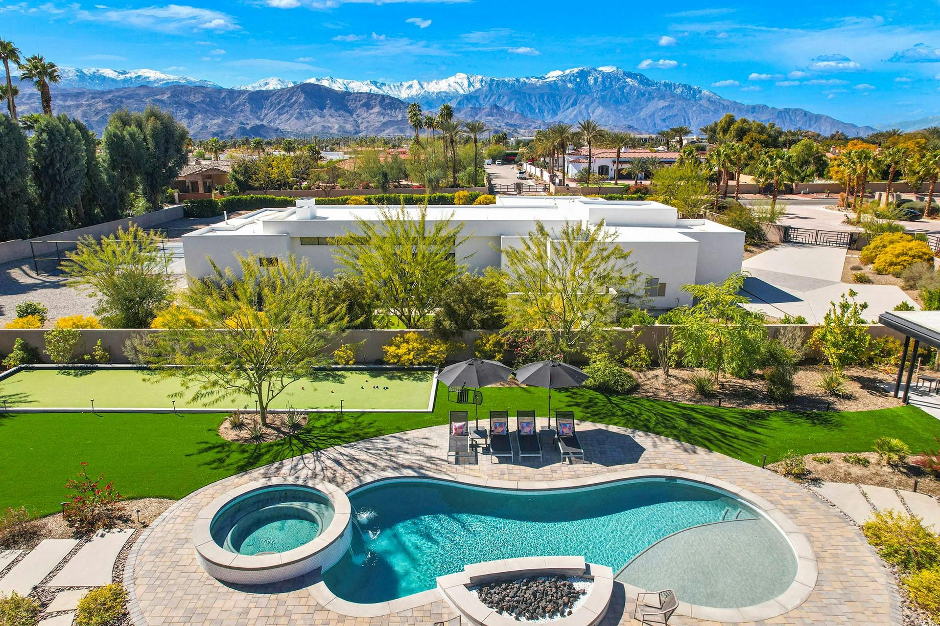 You’ll never be short of something to do at this expansive home, which offers resort-style amenities in an exclusive setting. From the swimming pool and pickleball court to the putting green and kids’ playground, there’s plenty to keep the whole family entertained during your trip. And with rooms spread across both the main house and a separate annexe, you’ll have ample space to stretch out and get comfy. It has everything you need for a special stay in Rancho Mirage, whether you spend your days golfing, hiking, or relaxing by the pool.