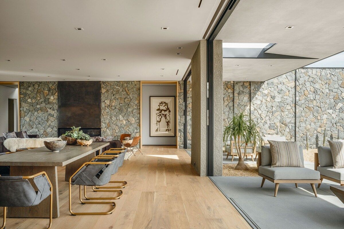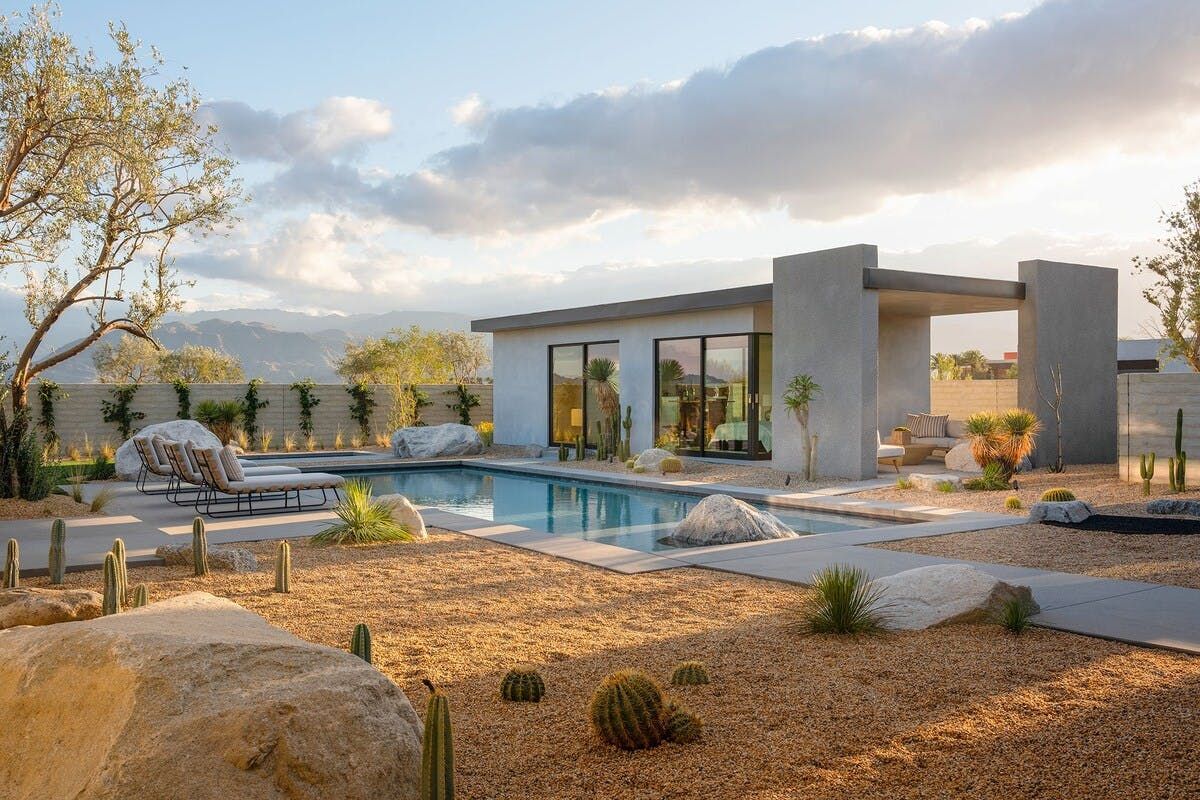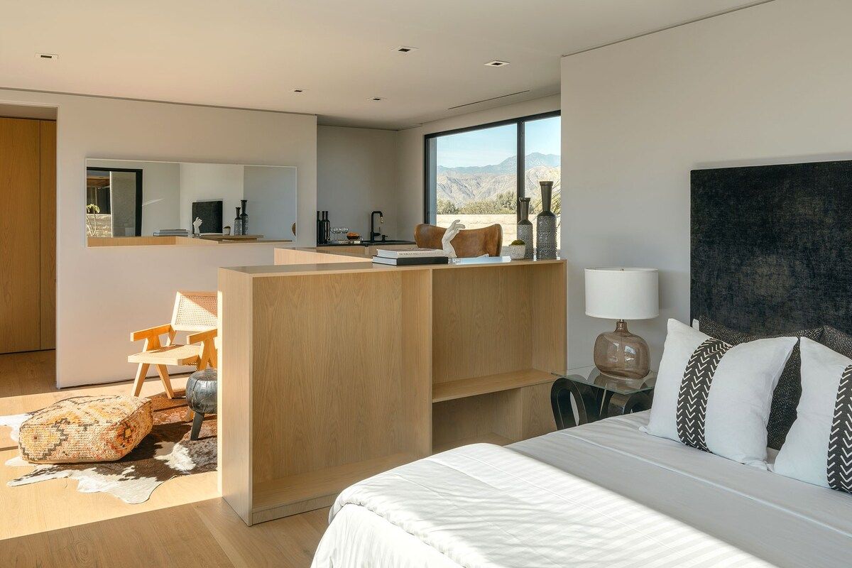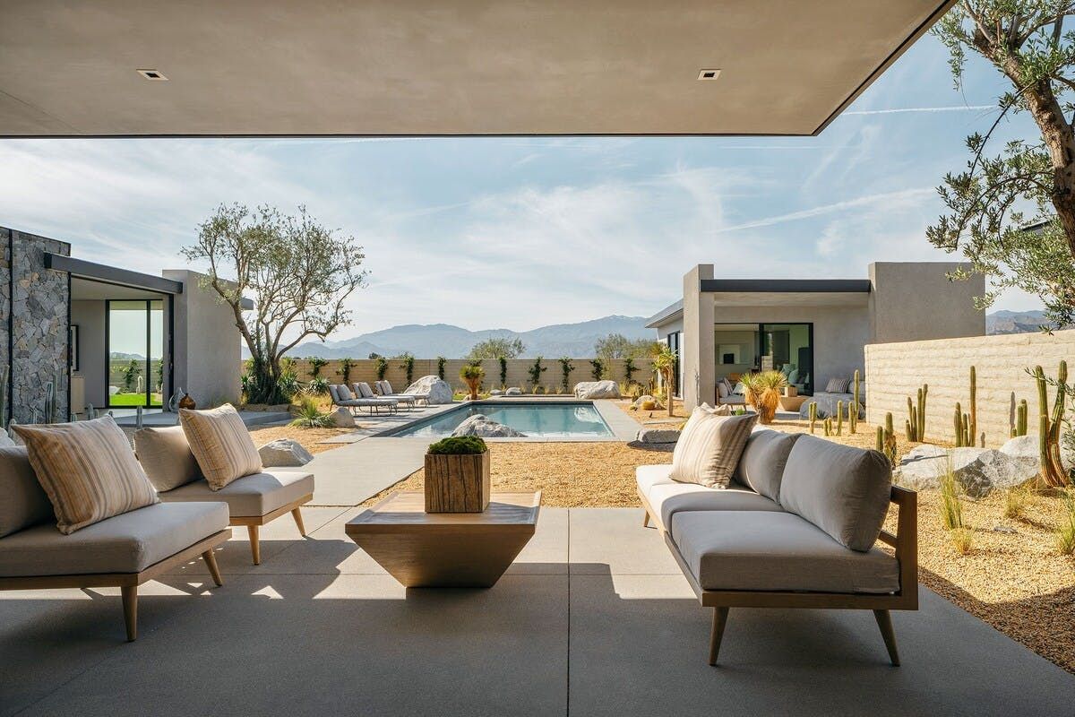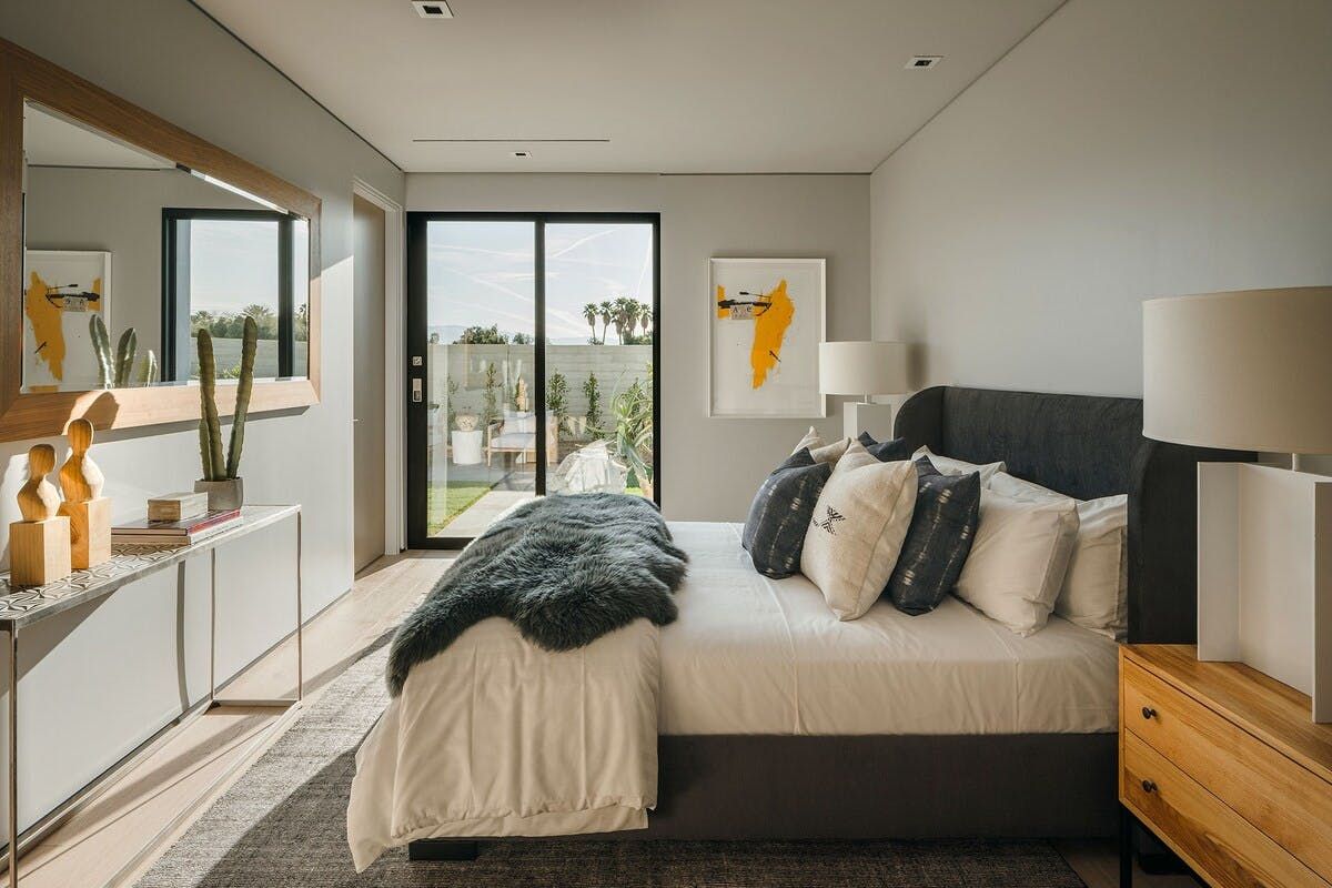 This showstopper is here to attract the architectural fans — so don't tell us you haven't noticed the deconstructed minimalism and the statement furniture to go with it. Smoking Pixels is a treat for the eyes, filling every corner of the home, as well as its considerable exterior with something beautiful. If you choose this home, you'll be greeted by the sun as soon as you wake up. Make yourself a cup of coffee and sit in the perfectly manicured garden, then go for a swim in the saltwater pool and admire the symmetry of your holiday home. Keep relaxing or try out take the car out to Palm Springs or Indio. When you're back, get the fire pit going and wait for the stars to show, then retreat to the majestic lounge and watch a movie together with your loved ones.