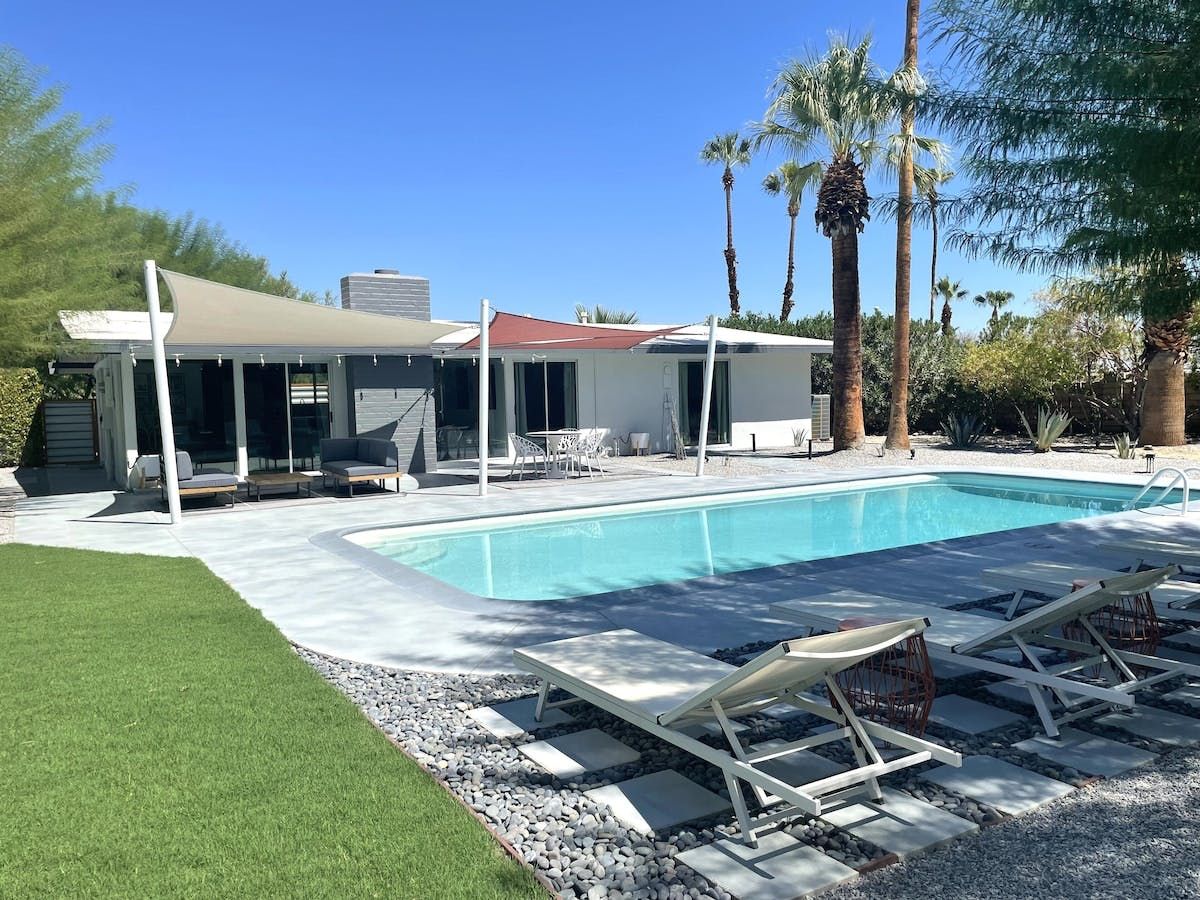 With a breezy and bright living area, a sunny garden and bedrooms as comfortable as they are stylish, this mid-century home comes with everything you need to sit back, relax and soak up the desert sunshine.