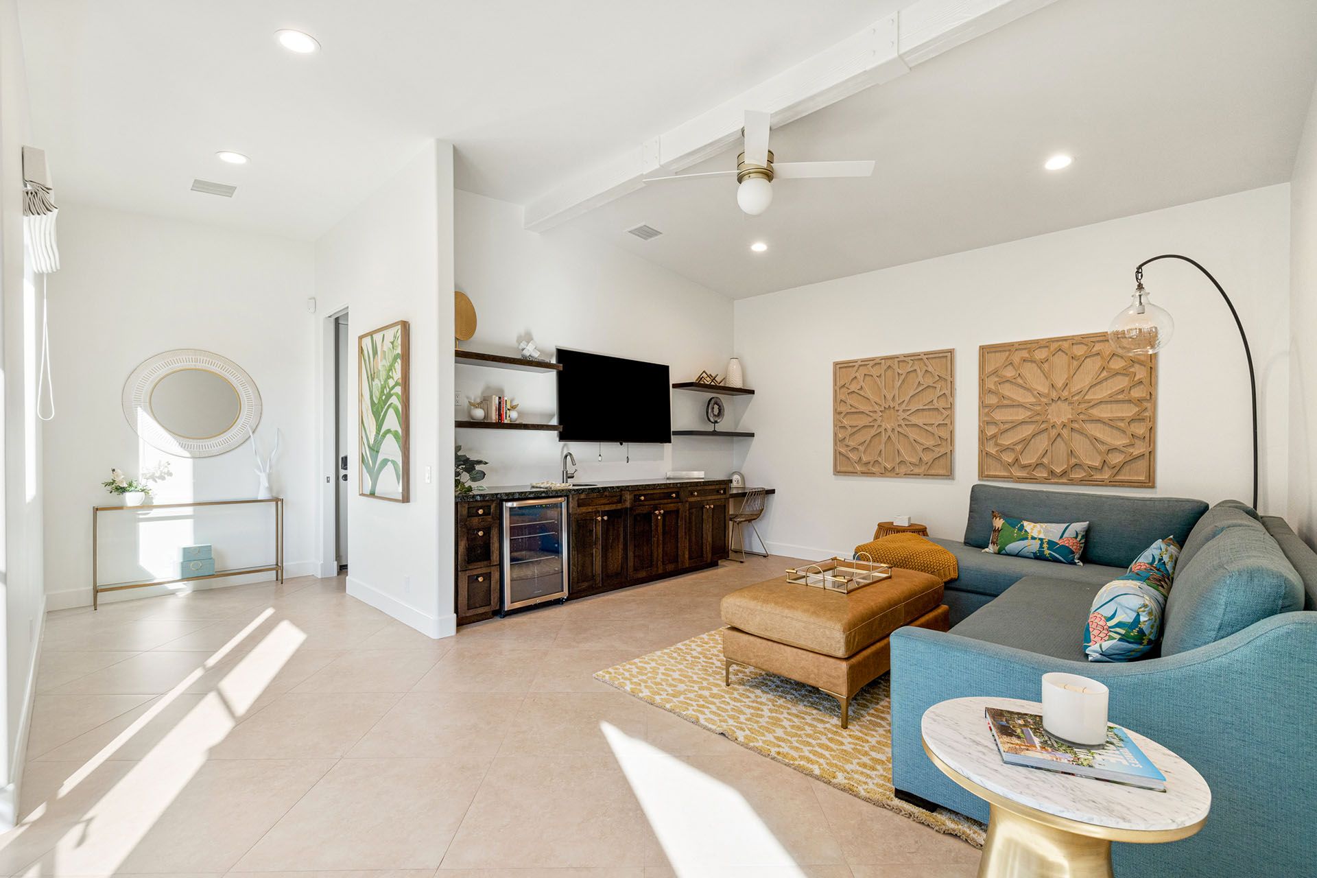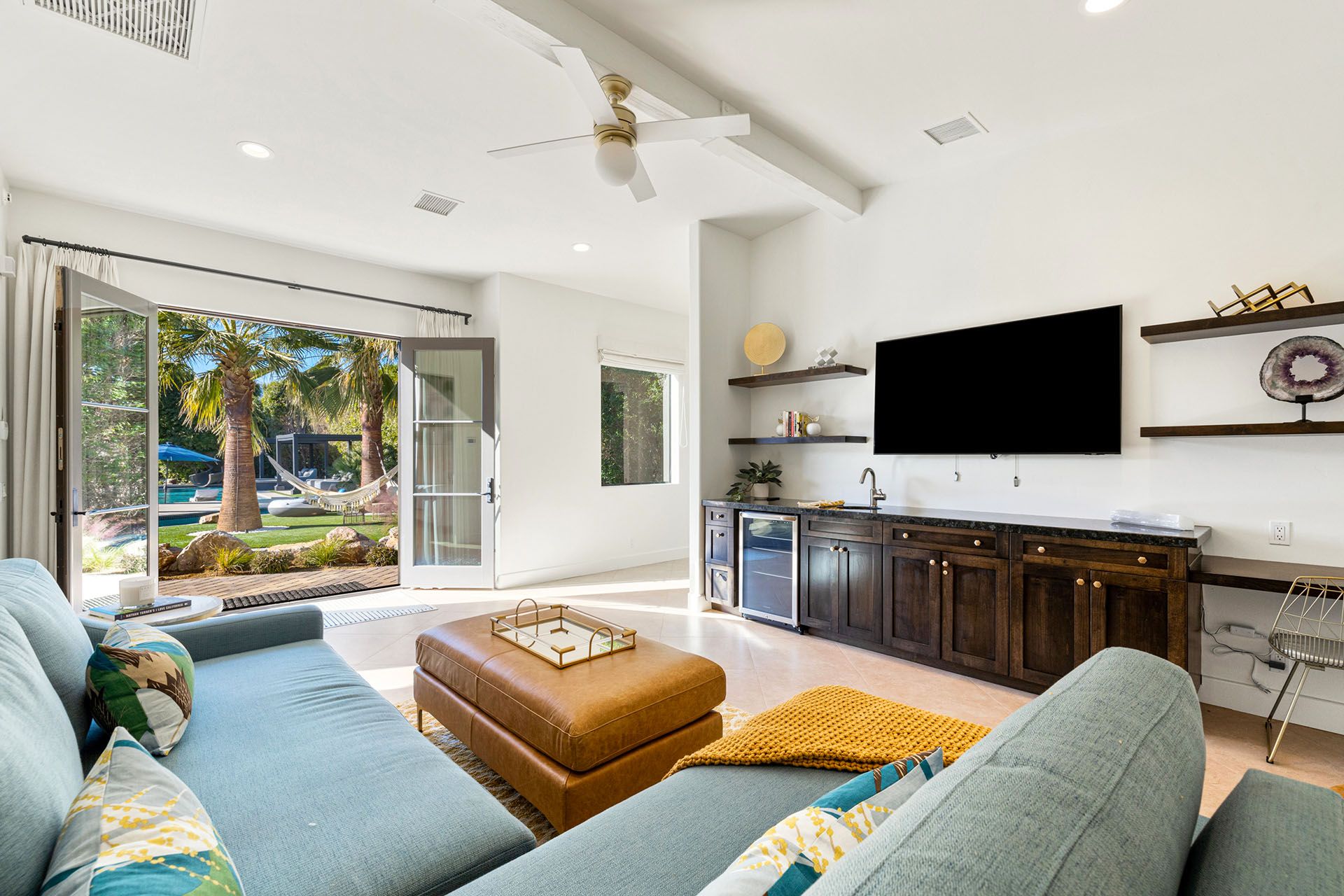 With the only private river in the desert, this home opens its doors to a unique stay in Rancho Mirage. Outside, there's a swimming pool, two Jacuzzi’s, waterslides and plenty of games – setting the tone for family fun. There’s also an outdoor bar and a fire-pit for magical drinks under the stars. Inside, the rooms offer luxurious comfort and one of the bedrooms is tucked away in the independent guest house. Beyond here, it's just a short drive to local restaurants, shops, hiking trails and golf courses.