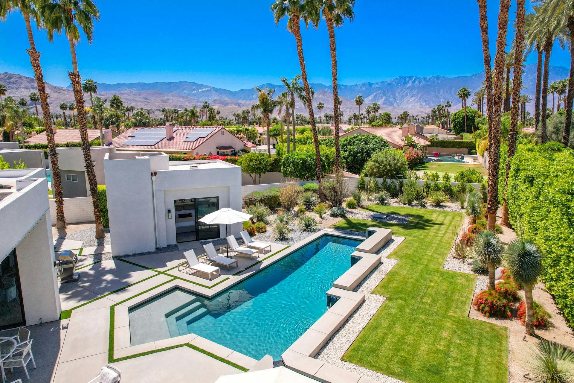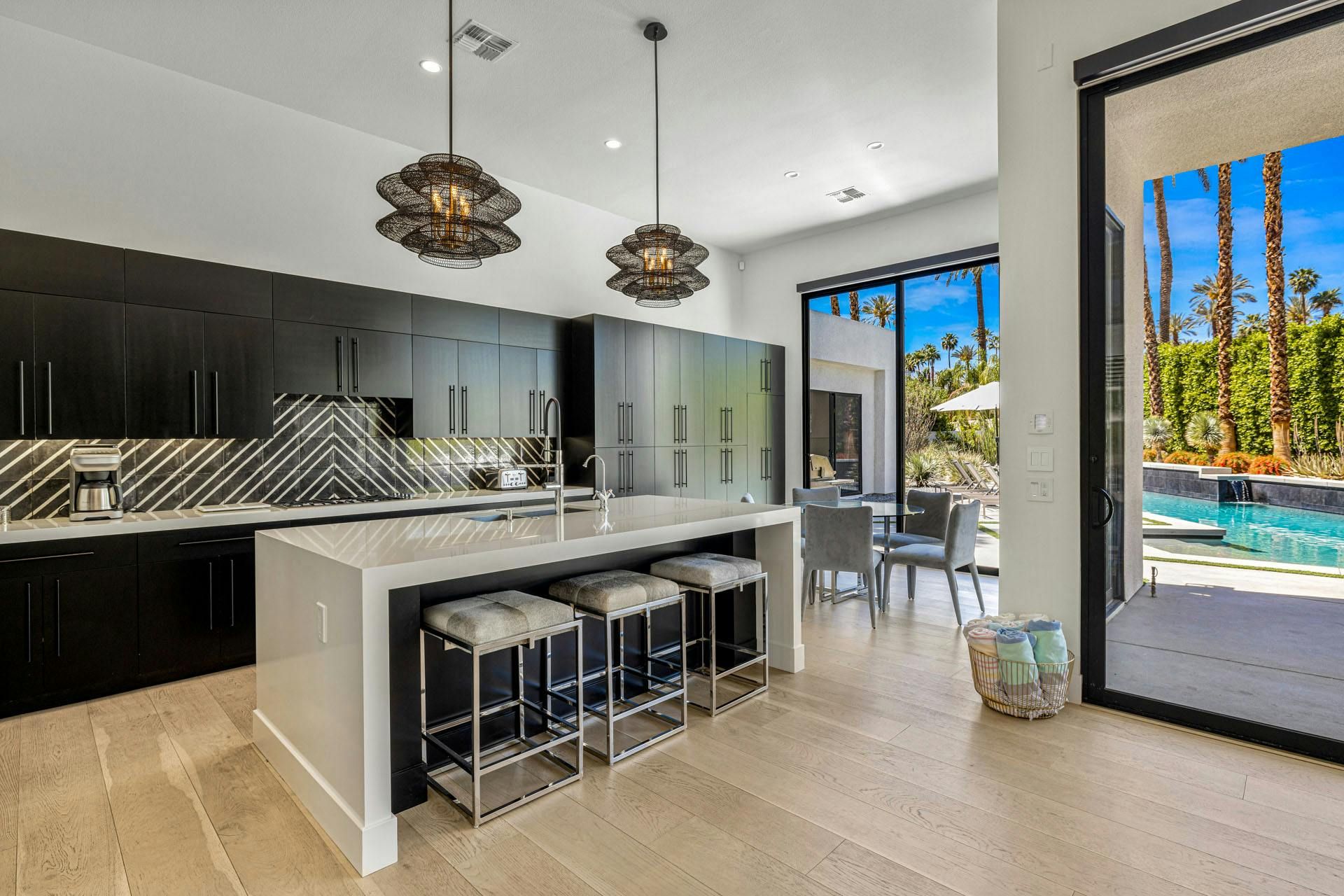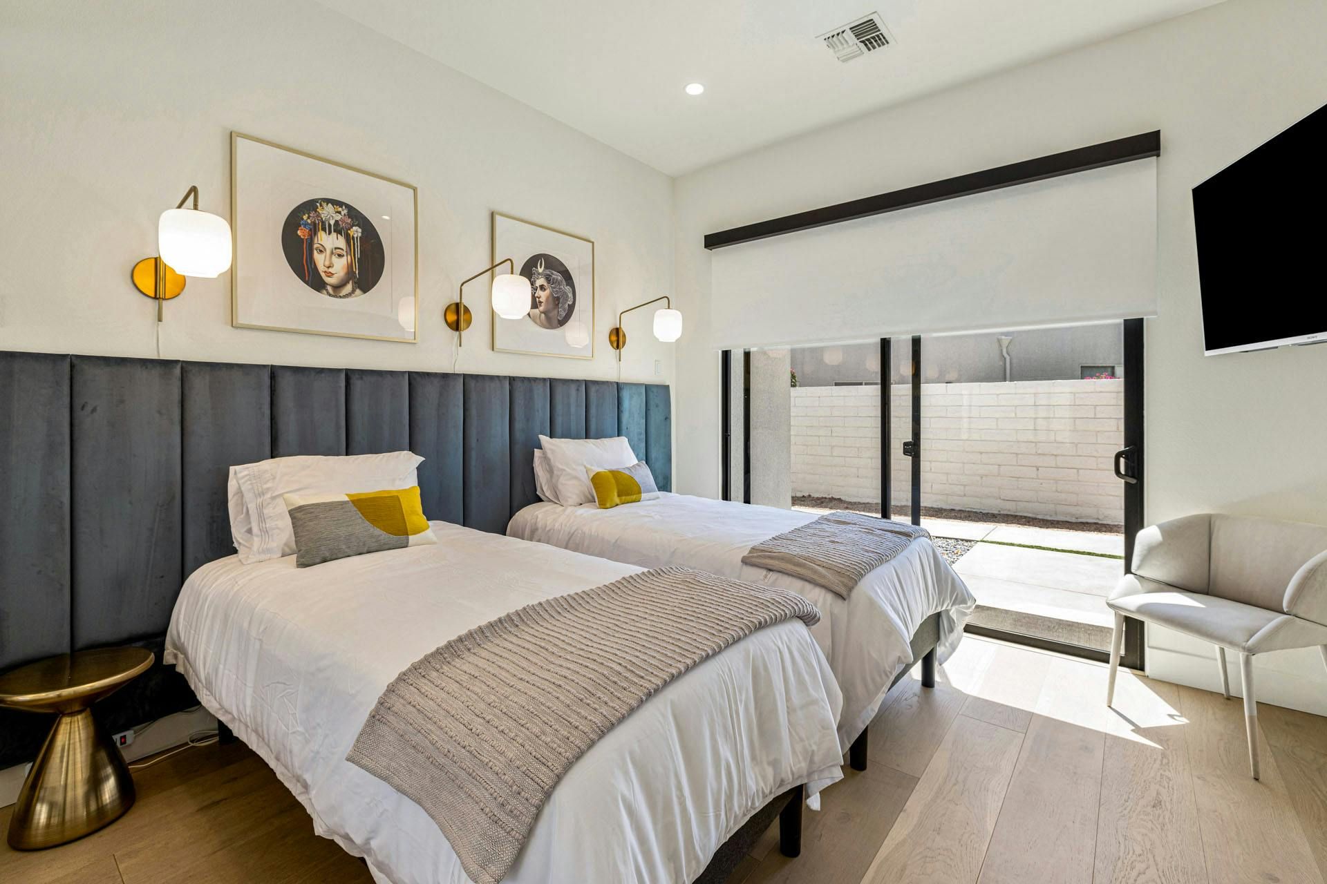 Step into your own desert oasis with a stay in this impressive home. You’ll be treated to stunning mountain views from the yard and there’s a pool with a Jacuzzi for long soaks. The outdoor lounge with a fire-pit is perfect for magical evenings under the stars and there’s a grill for dining alfresco. Inside, the rooms are just as inviting with luxurious amenities, a home office for remote workers and a small gym to keep your energy high. One of the bedrooms is located in the independent casita – ideal for those seeking a little extra privacy. And when it comes to location, it’s just a short drive to restaurants, shops and the iconic Palm Canyon Drive.