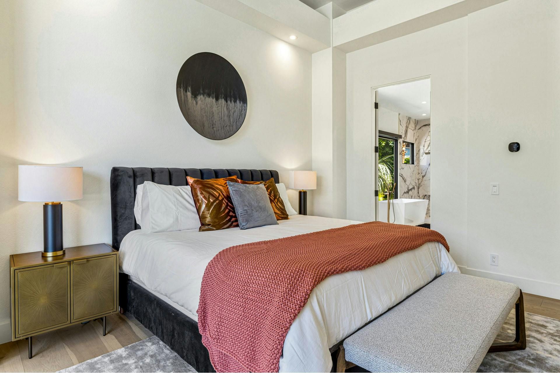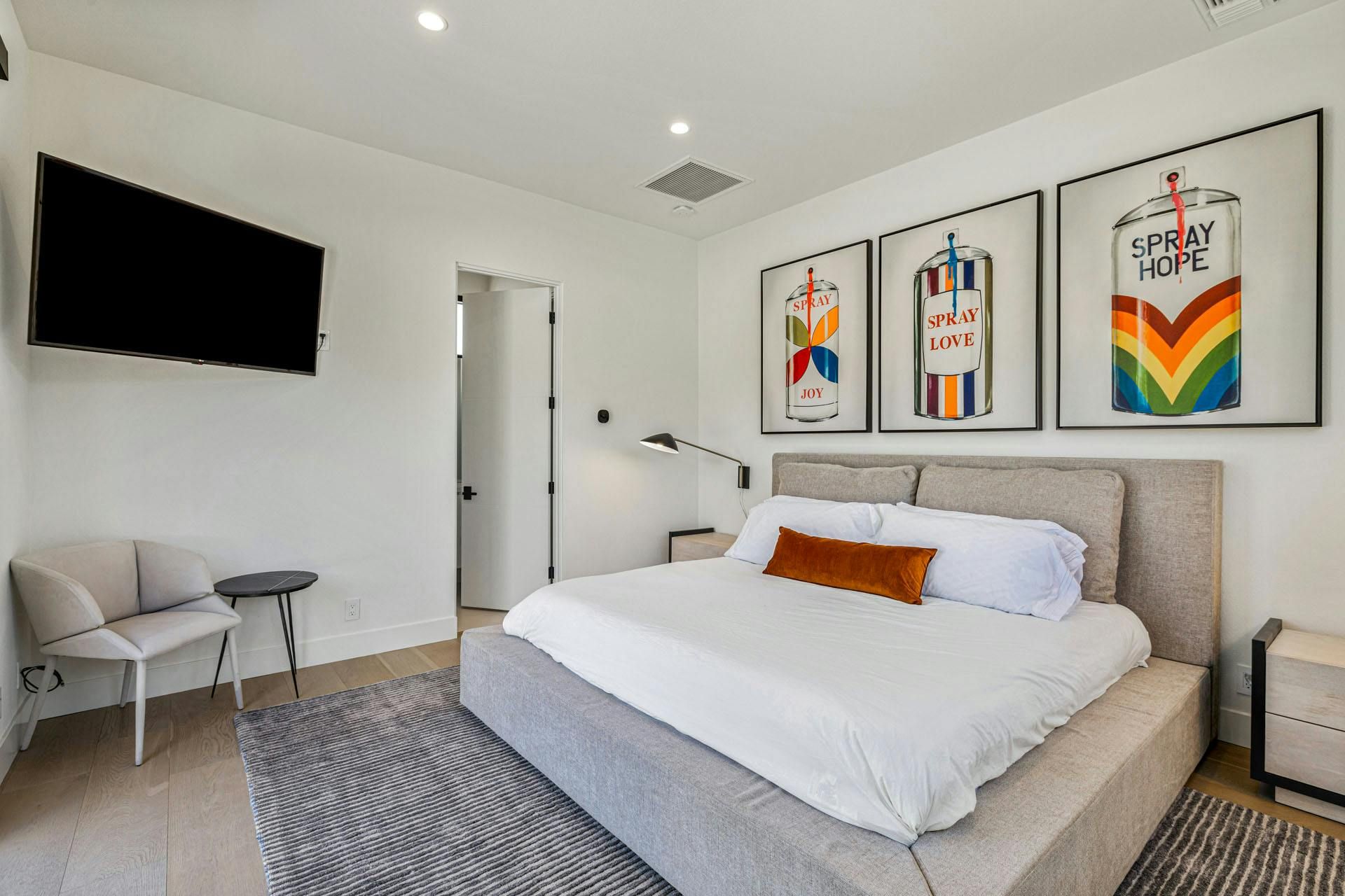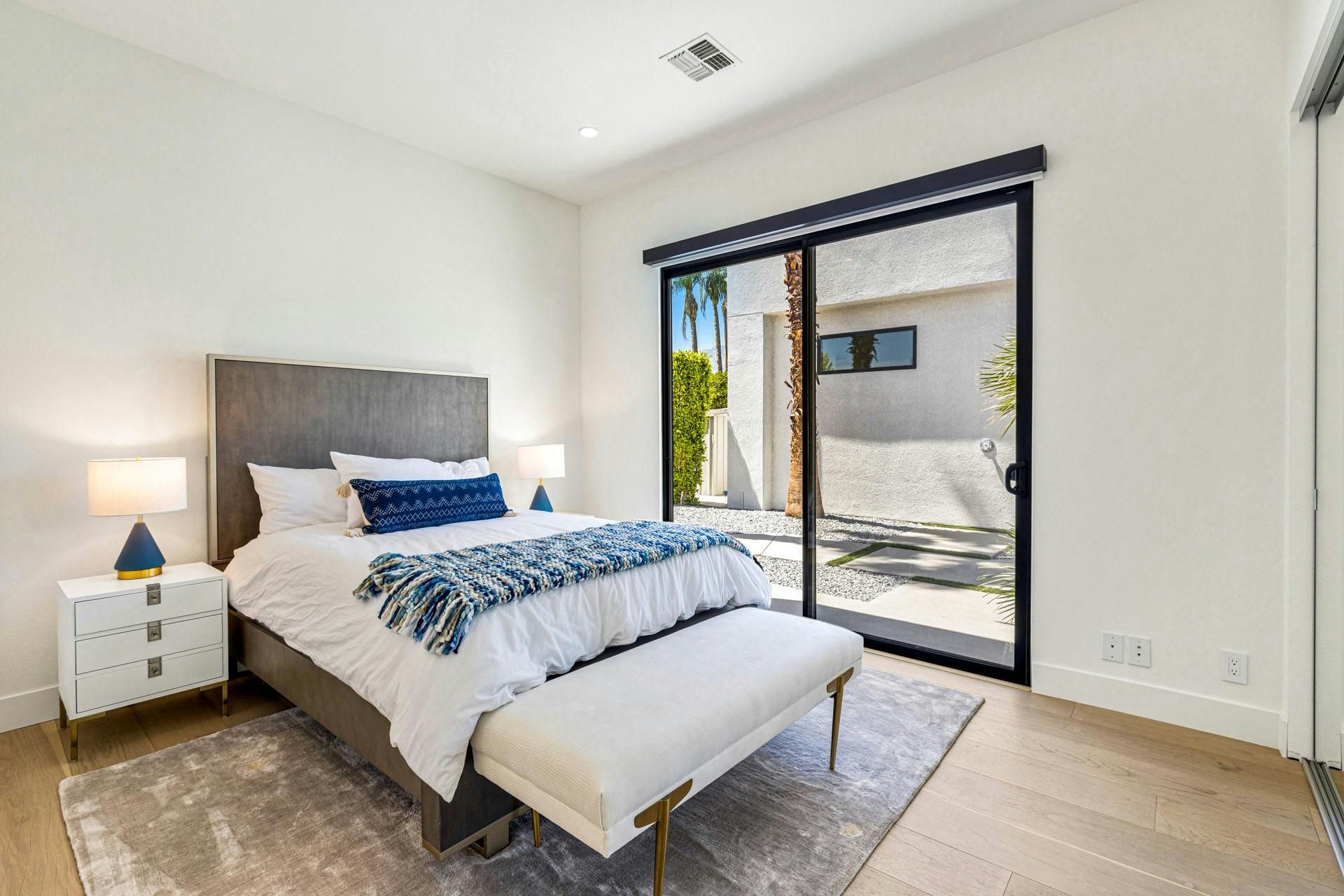 Step into your own desert oasis with a stay in this impressive home. You’ll be treated to stunning mountain views from the yard and there’s a pool with a Jacuzzi for long soaks. The outdoor lounge with a fire-pit is perfect for magical evenings under the stars and there’s a grill for dining alfresco. Inside, the rooms are just as inviting with luxurious amenities, a home office for remote workers and a small gym to keep your energy high. One of the bedrooms is located in the independent casita – ideal for those seeking a little extra privacy. And when it comes to location, it’s just a short drive to restaurants, shops and the iconic Palm Canyon Drive.