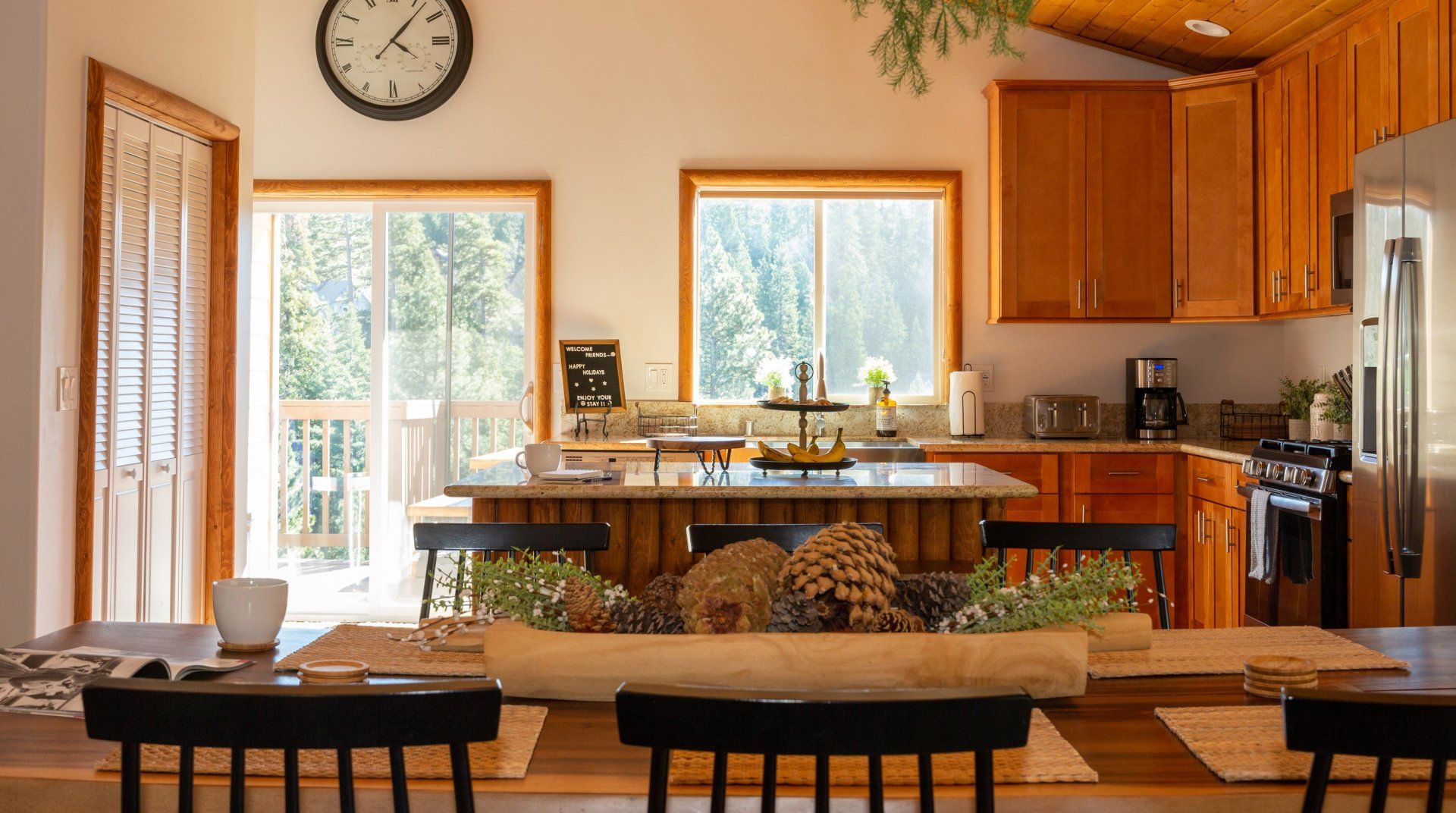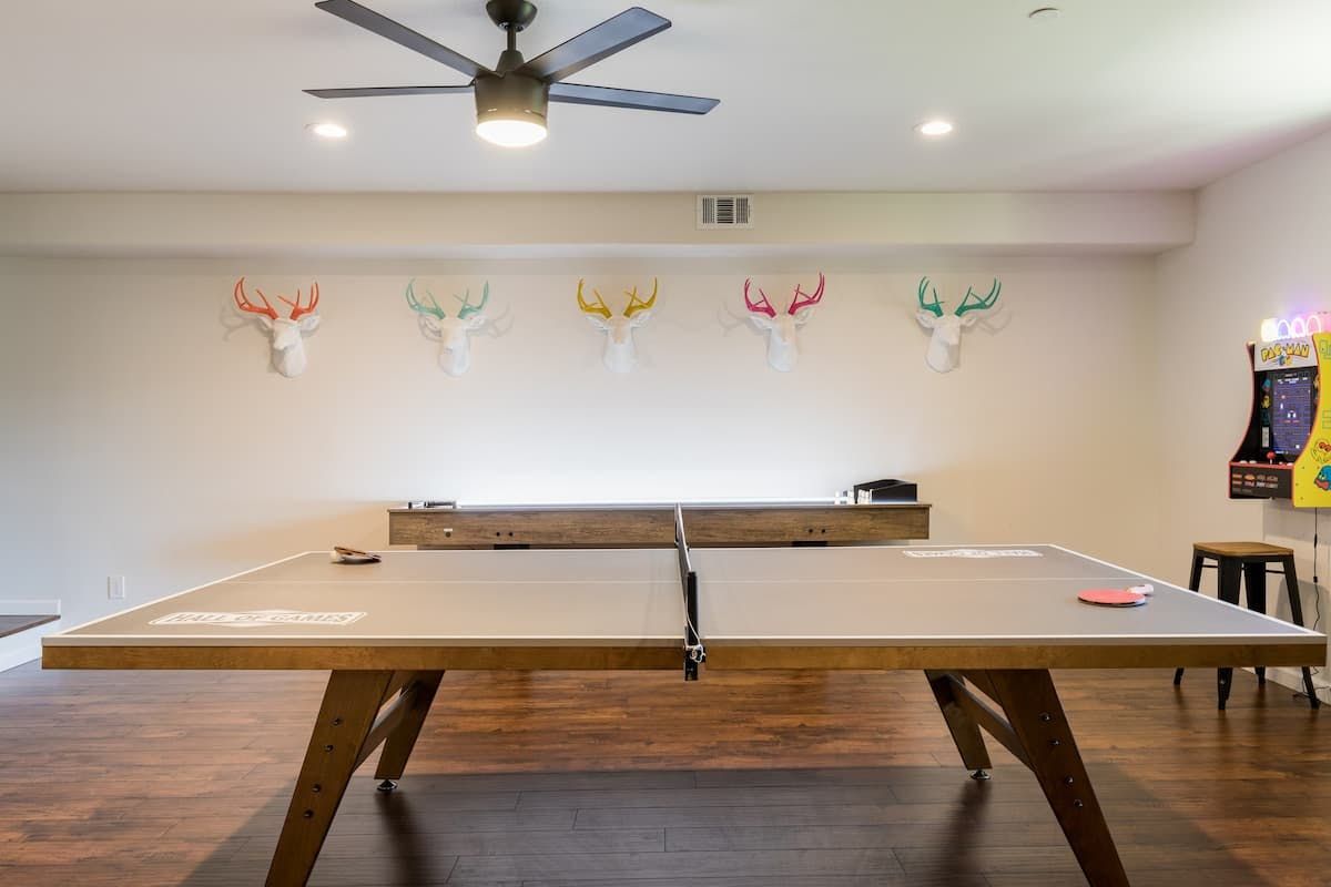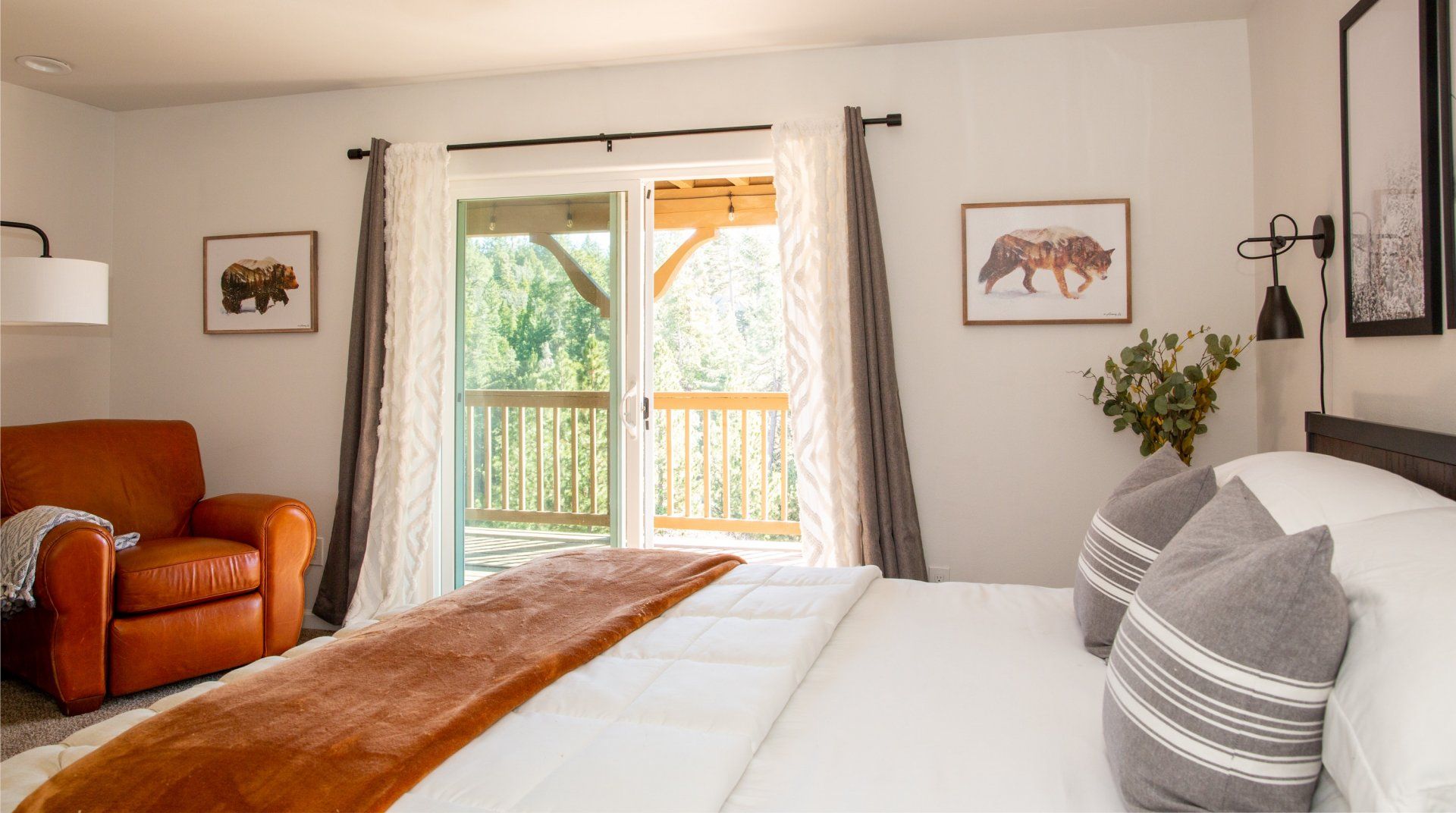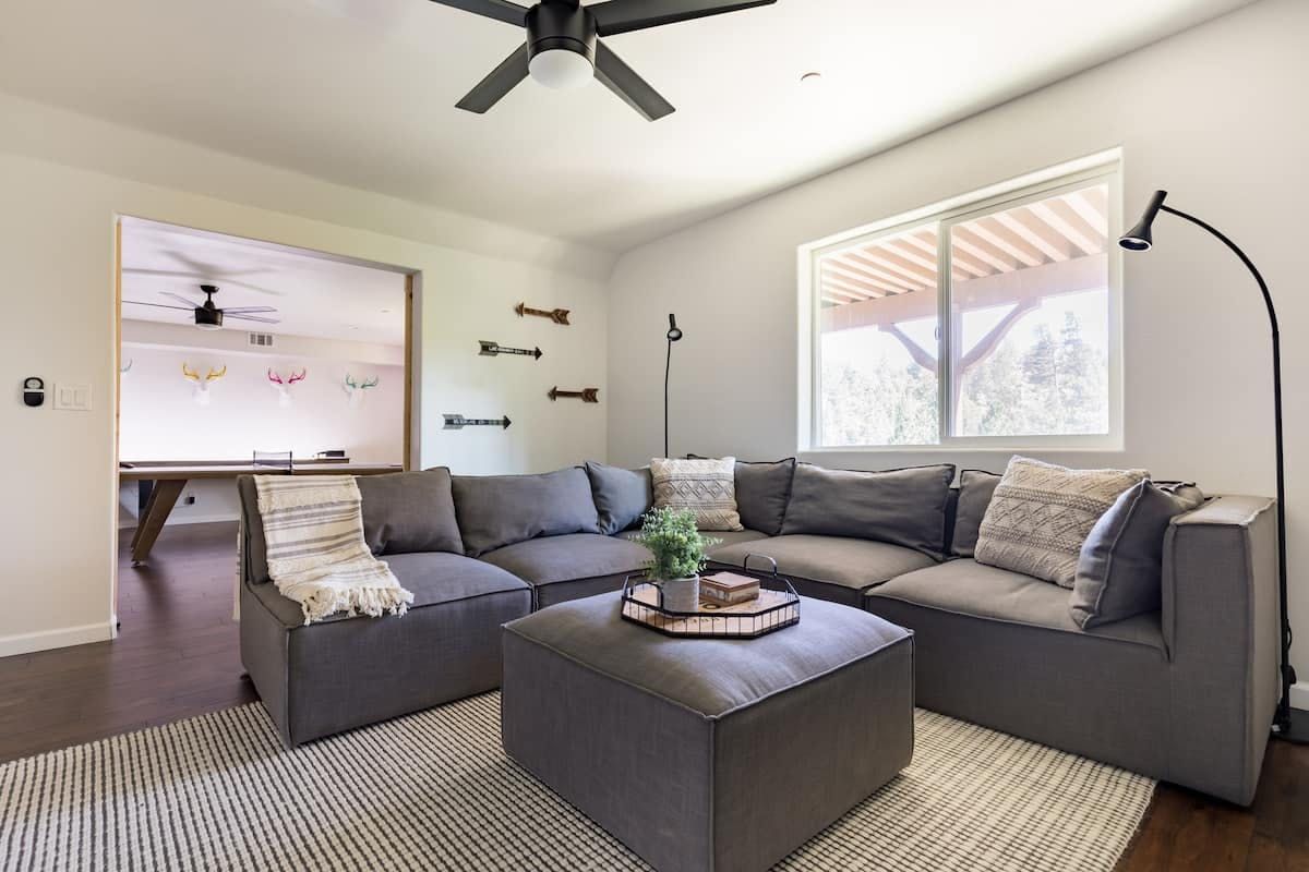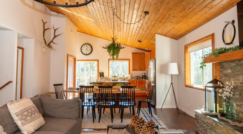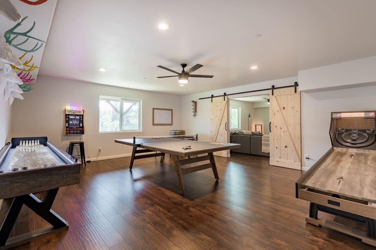 Combining comforting mountain interiors and contemporary design, Black Arrow is a charming cabin with a little extra luxury and style. Spread across three floors, the five-bedroom home can accommodate up to ten guests, with the option of sleeping two further guests on a sofa bed in the living room. Featuring an open-plan living area, there’s an open and social feel to the space that makes it perfect for a group of friends or a family to spend quality time together, whether that’s getting cosy in front the fire, preparing delicious meals or enjoying the brand new games room featuring skeeball, arcade games, table tennis and a shuffleboard. Out on your private deck, you’ll be blown away by uninterrupted views of the landscape, the outdoor fire pit and an alfresco dining setup. When you’re ready to venture out, you’re just a ten-minute drive from Lake Arrowhead Village and all it has to offer.