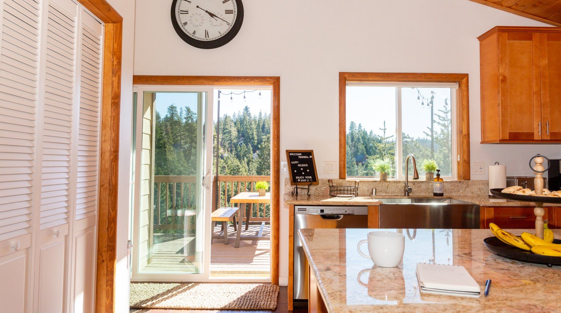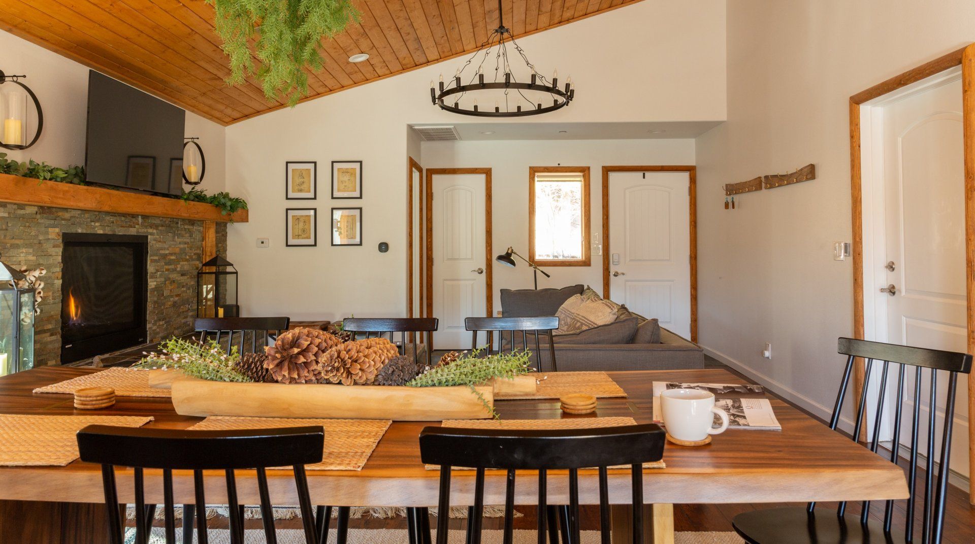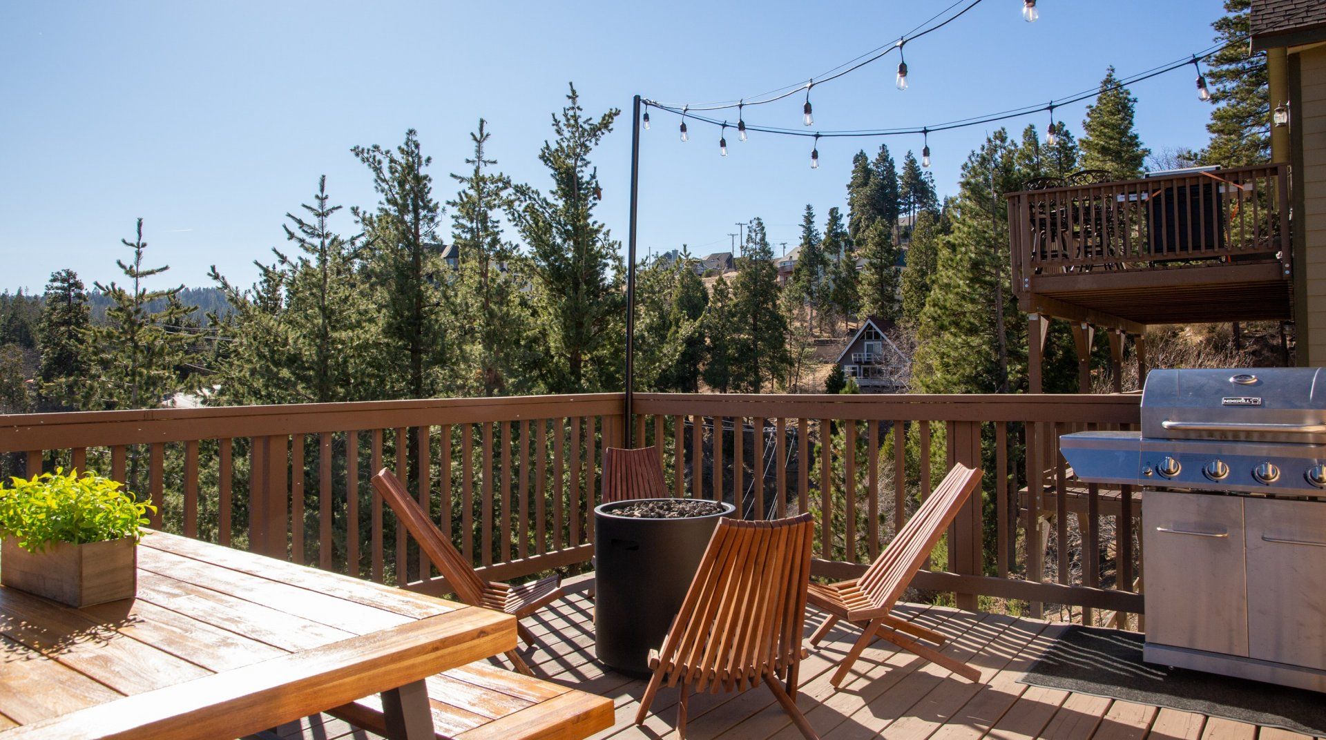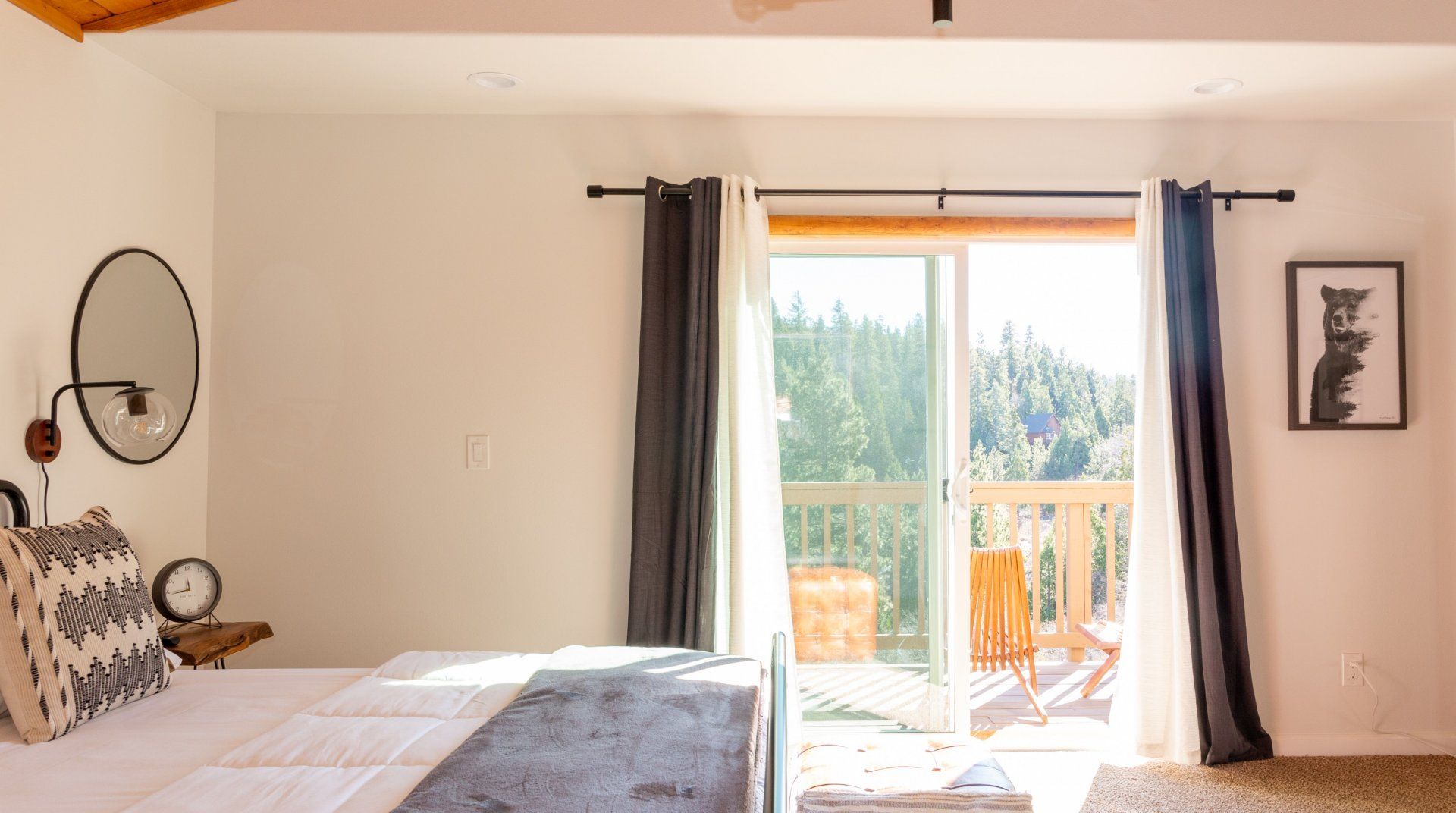 Combining comforting mountain interiors and contemporary design, Black Arrow is a charming cabin with a little extra luxury and style. Spread across three floors, the five-bedroom home can accommodate up to ten guests, with the option of sleeping two further guests on a sofa bed in the living room. Featuring an open-plan living area, there’s an open and social feel to the space that makes it perfect for a group of friends or a family to spend quality time together, whether that’s getting cosy in front the fire, preparing delicious meals or enjoying the brand new games room featuring skeeball, arcade games, table tennis and a shuffleboard. Out on your private deck, you’ll be blown away by uninterrupted views of the landscape, the outdoor fire pit and an alfresco dining setup. When you’re ready to venture out, you’re just a ten-minute drive from Lake Arrowhead Village and all it has to offer.