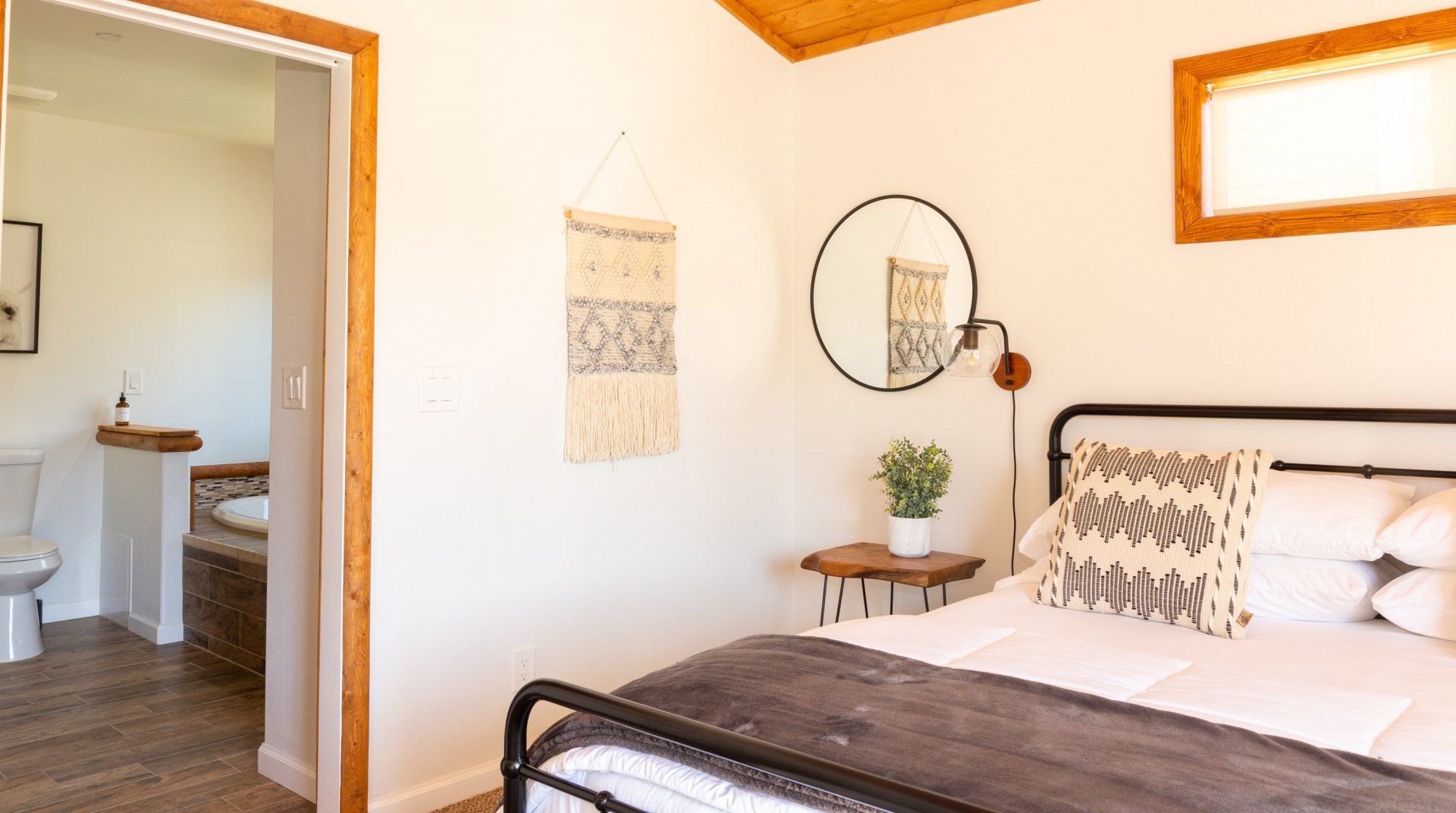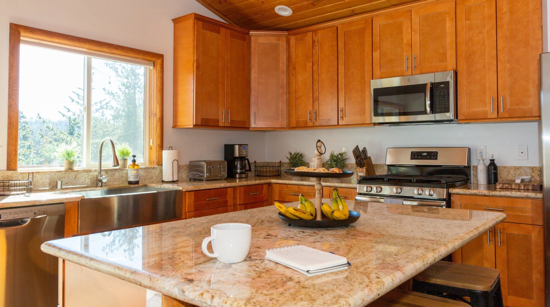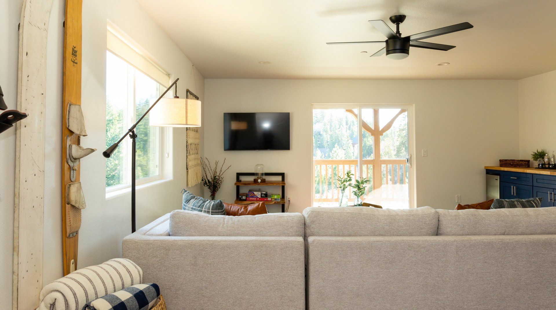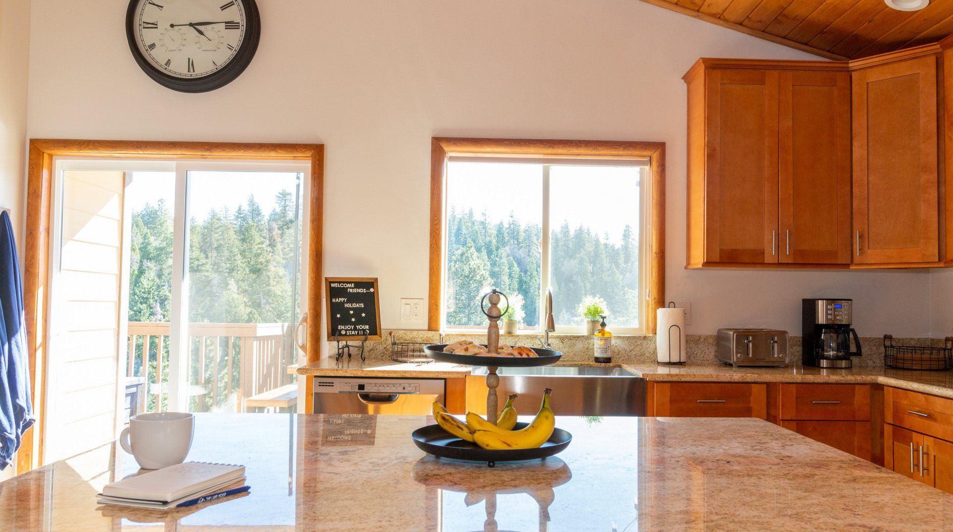 Combining comforting mountain interiors and contemporary design, Black Arrow is a charming cabin with a little extra luxury and style. Spread across three floors, the five-bedroom home can accommodate up to ten guests, with the option of sleeping two further guests on a sofa bed in the living room. Featuring an open-plan living area, there’s an open and social feel to the space that makes it perfect for a group of friends or a family to spend quality time together, whether that’s getting cosy in front the fire, preparing delicious meals or enjoying the brand new games room featuring skeeball, arcade games, table tennis and a shuffleboard. Out on your private deck, you’ll be blown away by uninterrupted views of the landscape, the outdoor fire pit and an alfresco dining setup. When you’re ready to venture out, you’re just a ten-minute drive from Lake Arrowhead Village and all it has to offer.