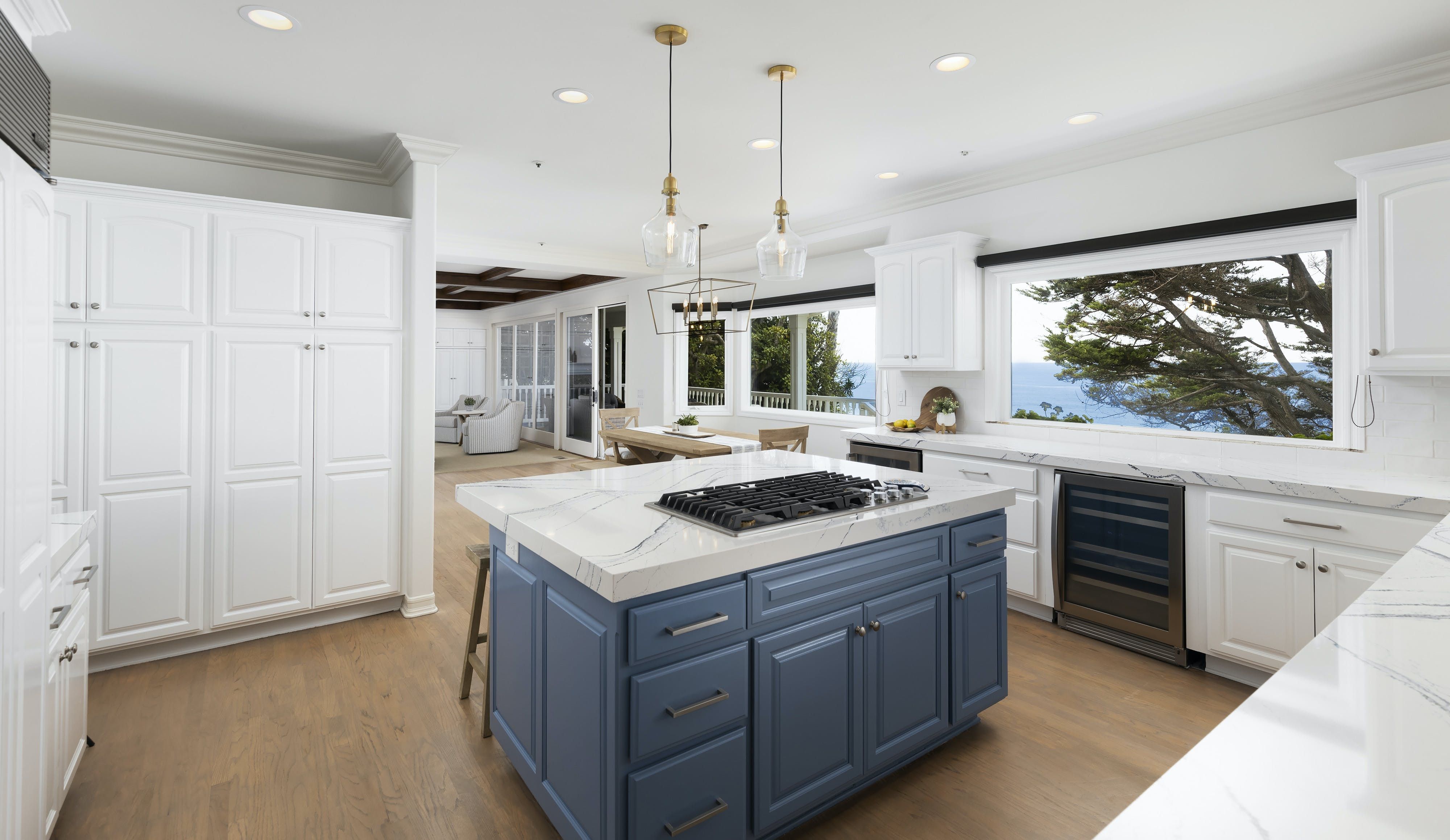 Contemporary coastal cool is the order of the day, with plenty of light wood, fresh blue furnishings and pristine white walls, all accentuated by the sunlight that pours in 342 days a year through large windows and retractable glass doors that look out over the ocean.