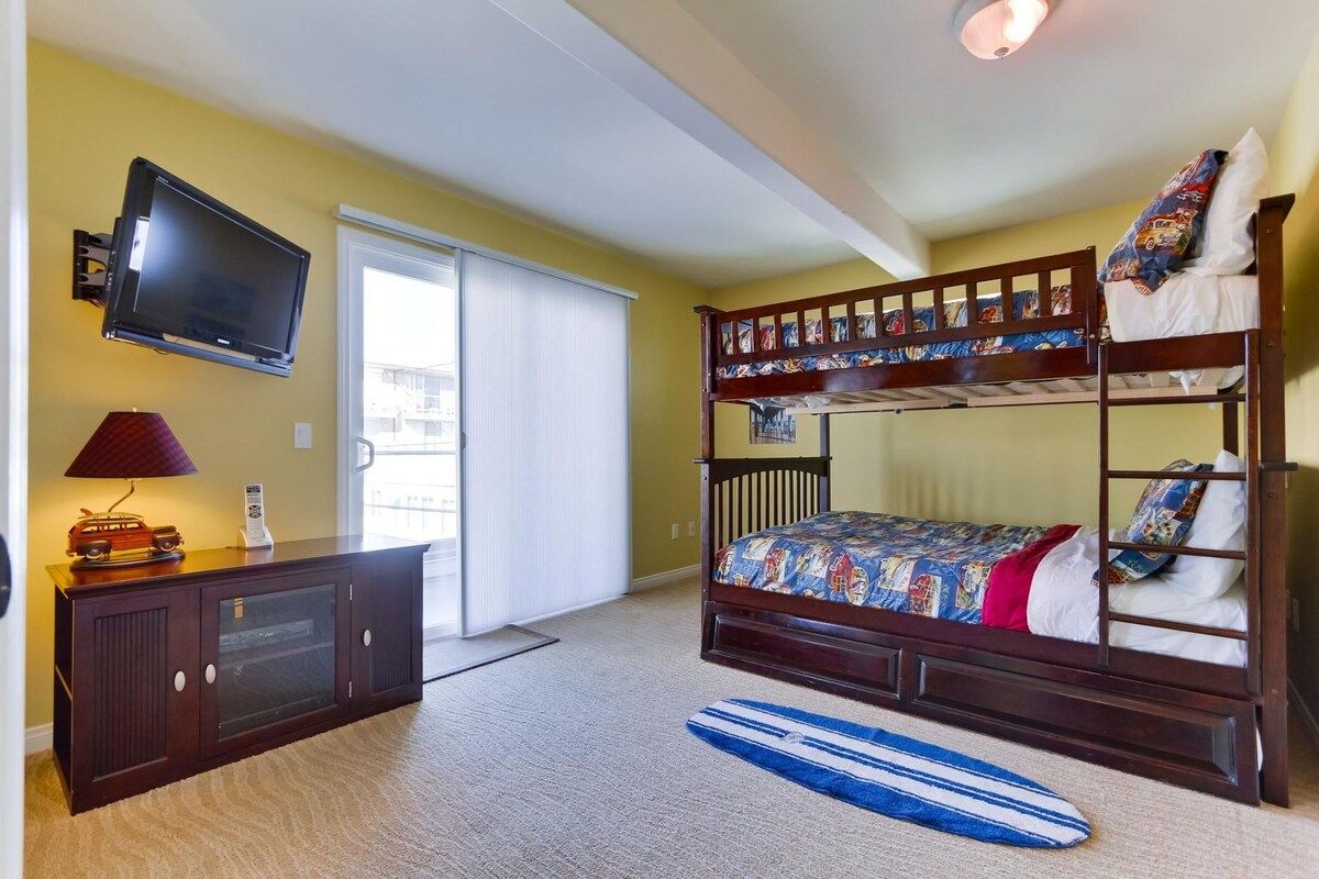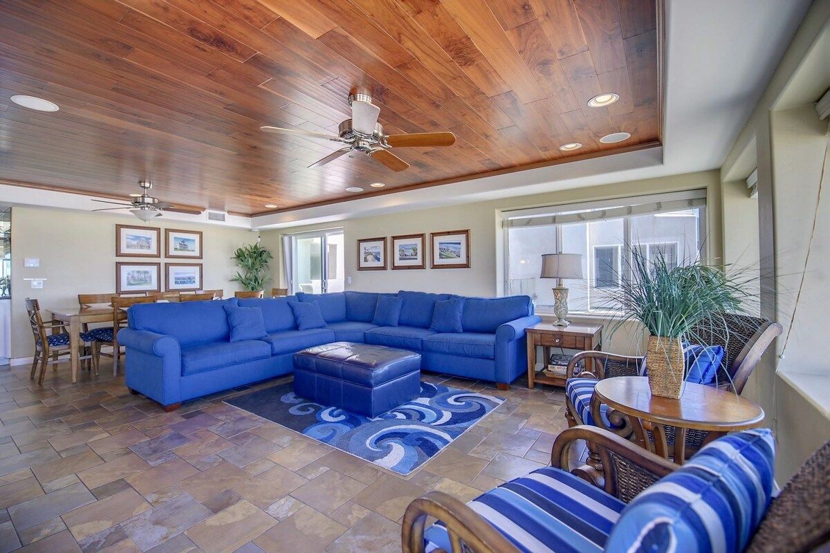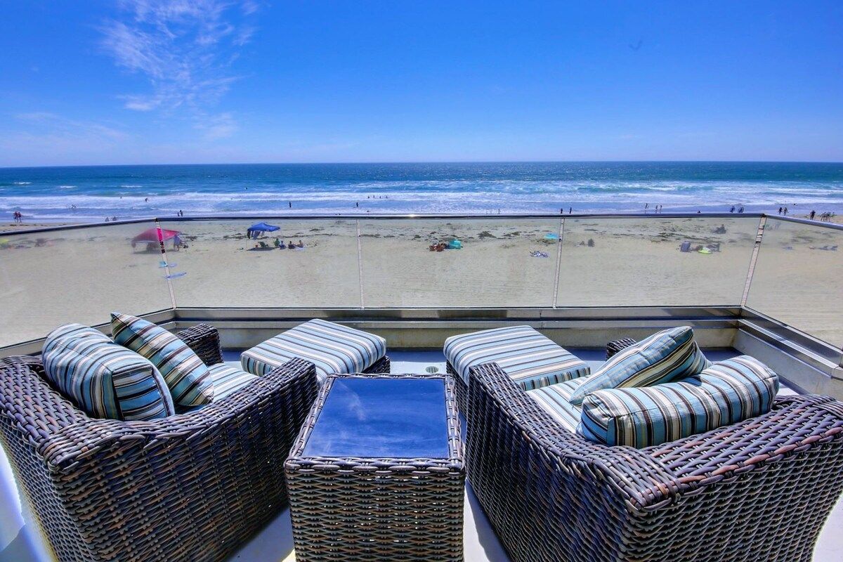 Imagine waking up to the sound of crashing waves as a sea breeze drifts into your bedroom. Luckily, that can quite easily become a reality when staying at this modern home just moments from Mission Beach Park. Fitted with four bedrooms, one of which is best suited for children, this is a great spot for a large family or a group of friends with children to get together and spend a relaxing trip on San Diego's white, sandy beaches.