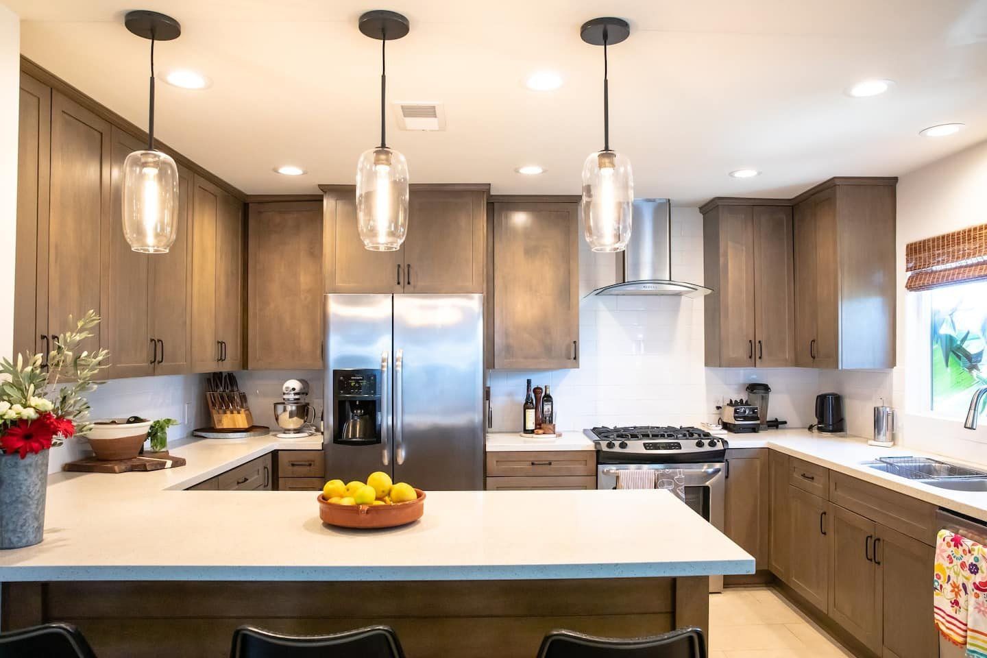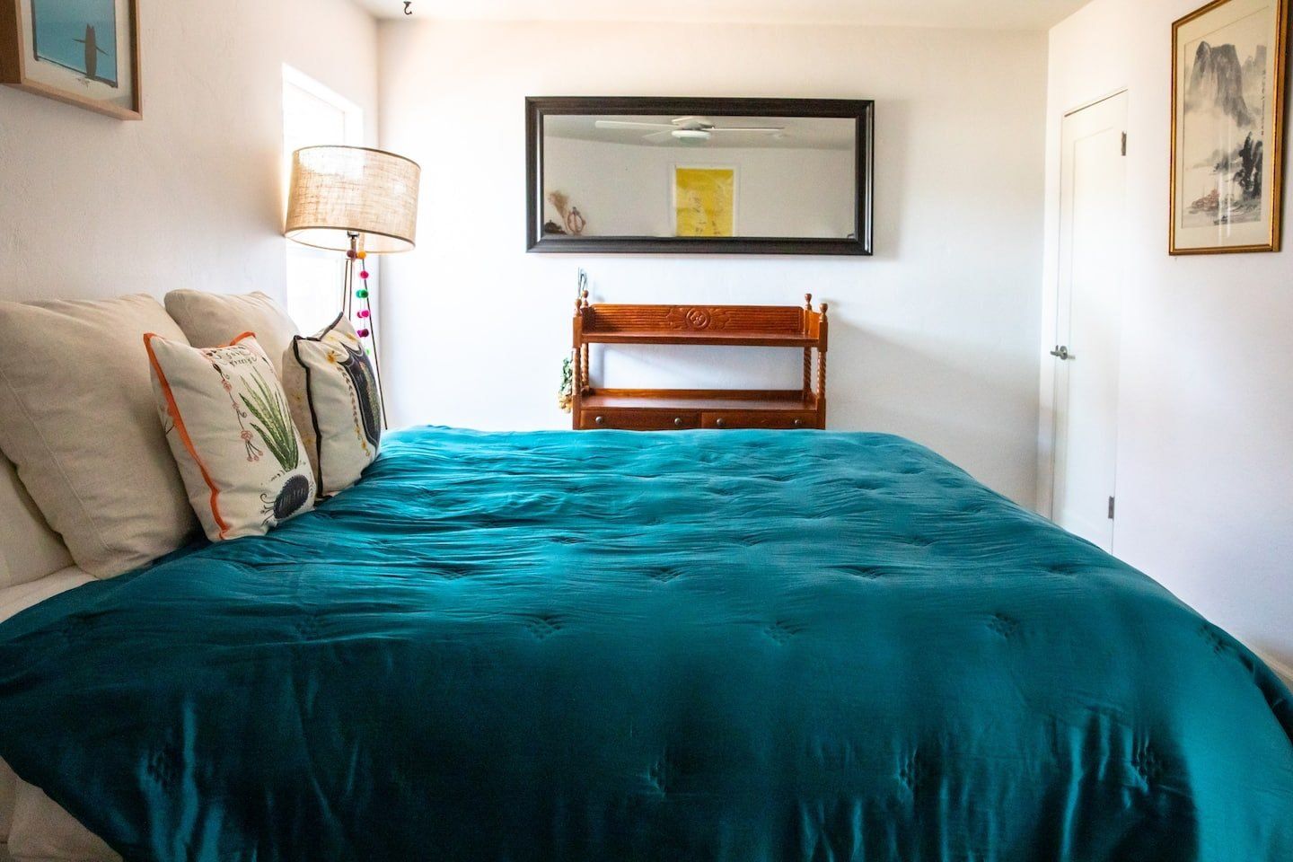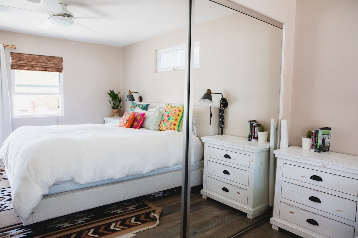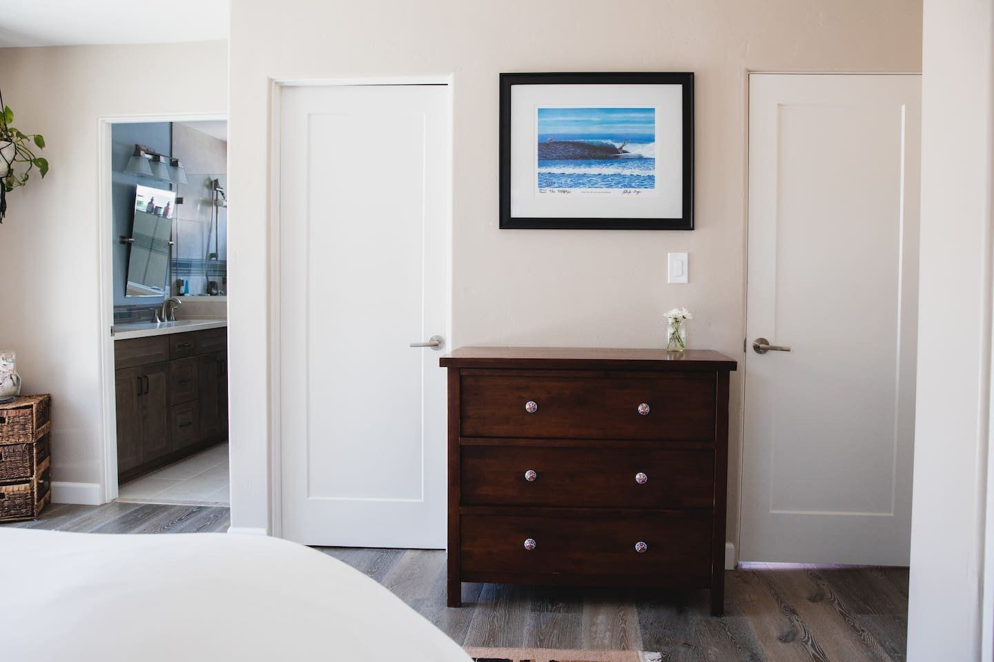In a tranquil San Deigo neighbourhood, this beautiful home is a five-minute drive from the waterside activities of Mission Bay Park and seven minutes from Sea World. A traditional, Spanish-style exterior hides a distinctly boho-luxe vibe inside. The white of the living room is brought to life with a small jungle of house plants, and the dining table made from reclaimed wood is an ideal place to gather for a group meal. Your host is a nutritionist and chef (she provides a fabulous list of restaurant recommendations), so rest assured the kitchen comes fully stocked with everything you need, including a bar trolley with all the necessities for mixing up a cocktail or two. Outside, the back terrace is a real sun trap. A gas grill awaits for long, sunny lunches outside and a big L-shaped sofa catches the afternoon rays. Come evening, a chiminea can be lit to keep the cold at bay.