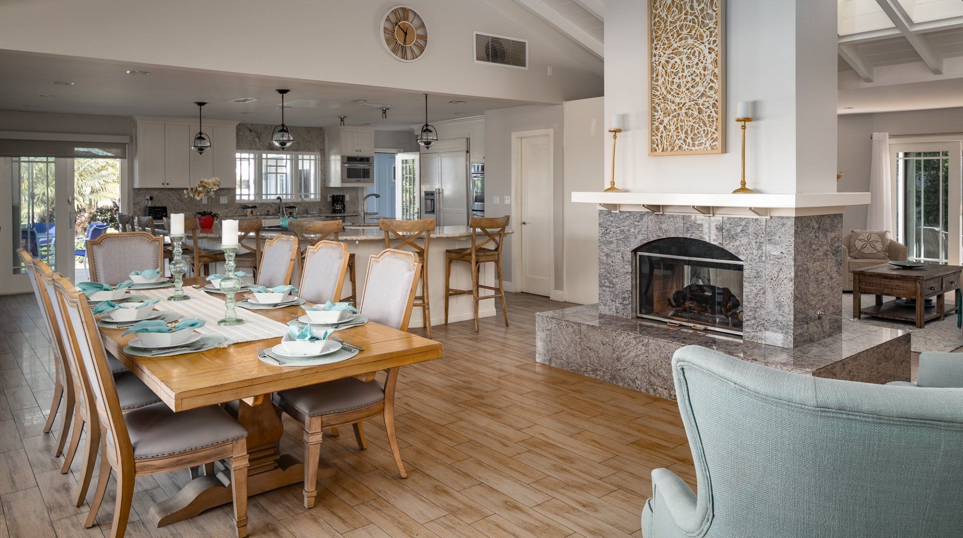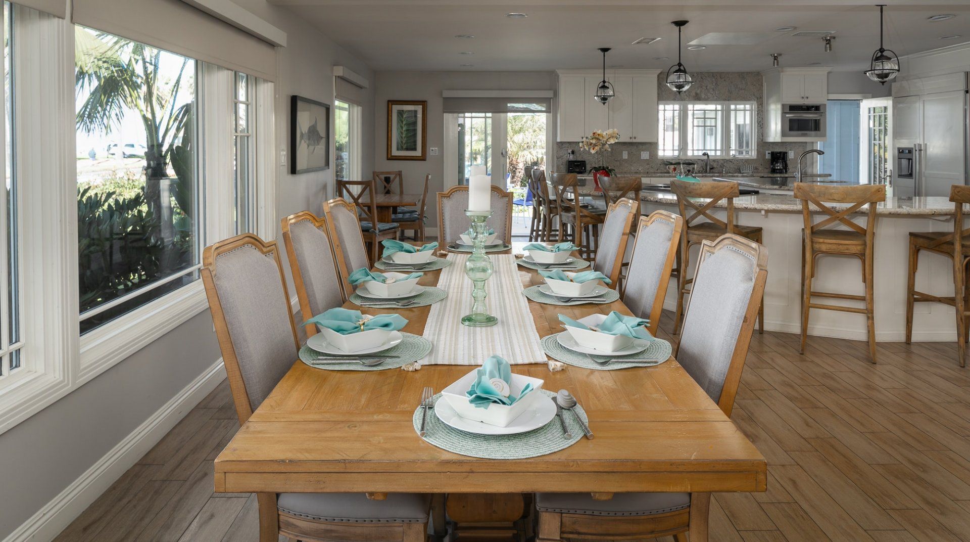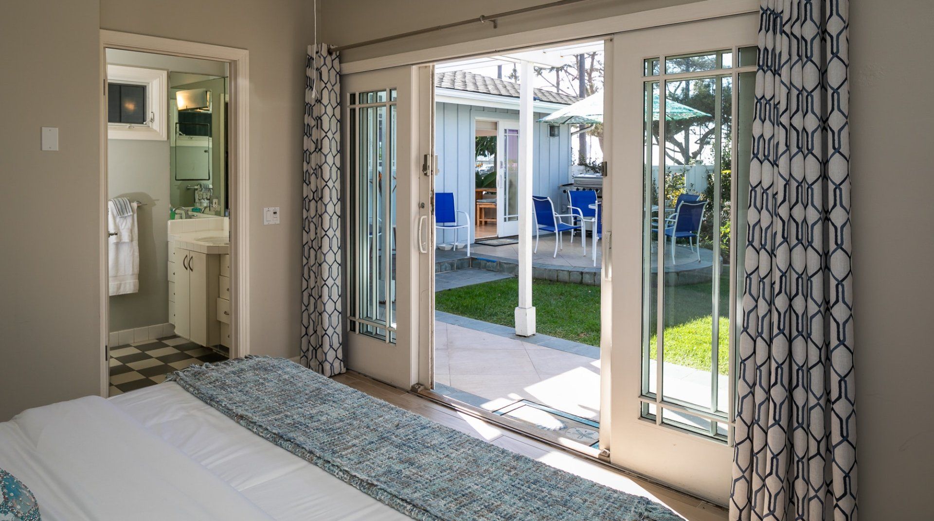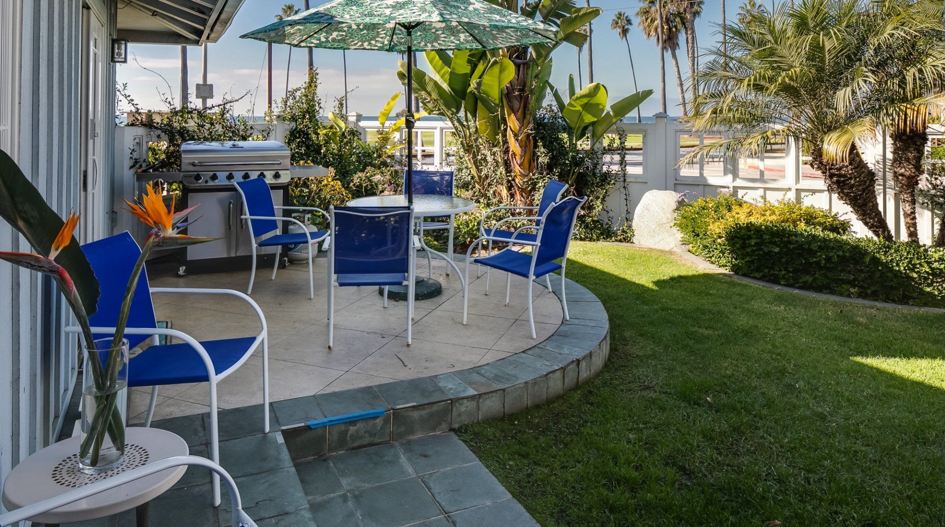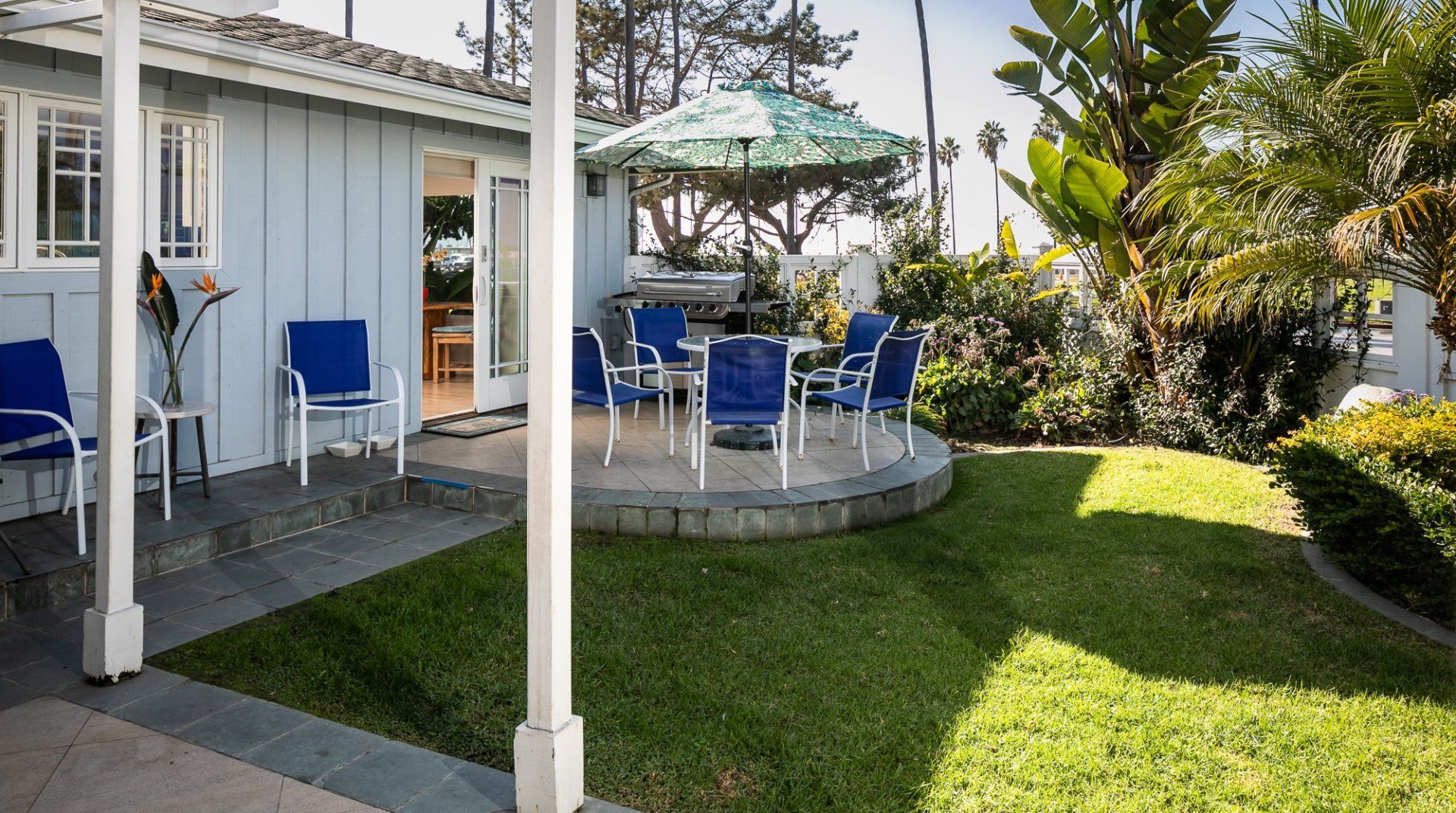 Waking up to ocean vistas is a scene you'll never tire of at this immaculate beachfront home, placed just steps from the golden shores of La Jolla - San Diego's most desirable seafront neighbourhood. Bright, light, and breezy with vaulted ceilings and cool, wooden floors – this is Californian-style living at its finest. The large windows invite you to gaze out over the green parklands and the sea beyond, and if you're lucky, you might just catch a glimpse of dolphins splashing around in the open ocean. A home begging for a large group of friends or family to come together, there's heaps of space to spill out here including two detached king-sized bedrooms for that added bit of privacy. Pad out into the backyard for a relaxing soak in the spa after days at the beach, while little ones can let off some steam playing in the fenced grass yard, or with a game of table tennis. When thoughts turn to food, gather your troops around the eight-foot dining table for memorable evening meals overlooking the ocean – cooking is a joy in the made-for-action, sociable kitchen. Or head to the bustling local restaurants for an evening meal – we hear the local pizzeria and ice cream parlour (both seven minutes on foot) are unmissable. Just be sure to make it back to watch the sunset over the horizon – there's a front-row seat waiting at home.