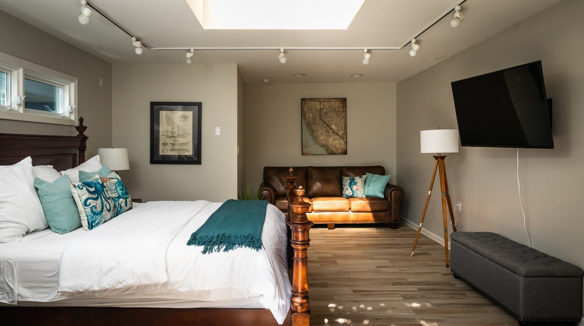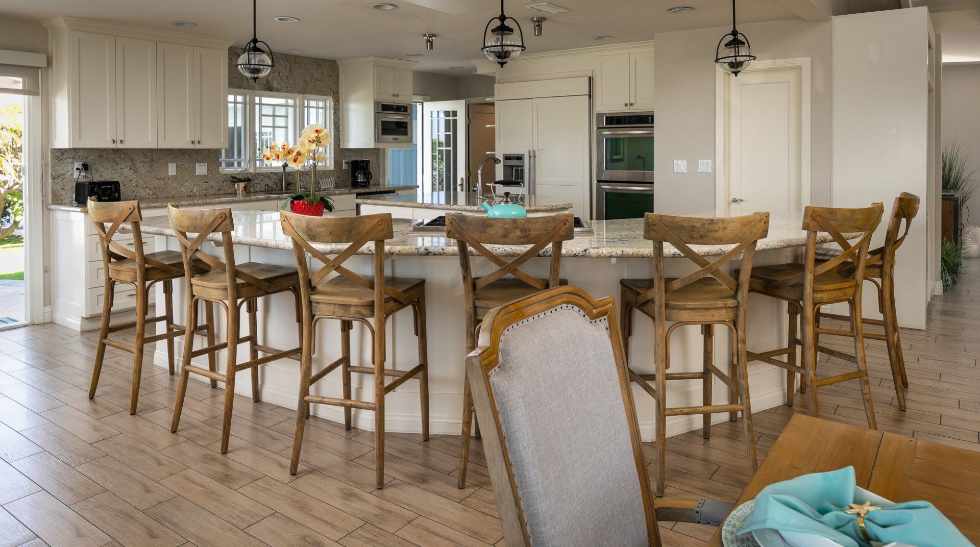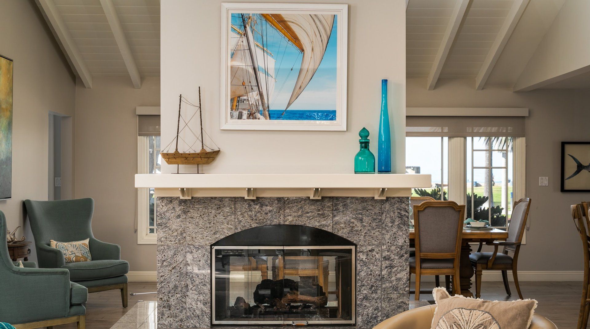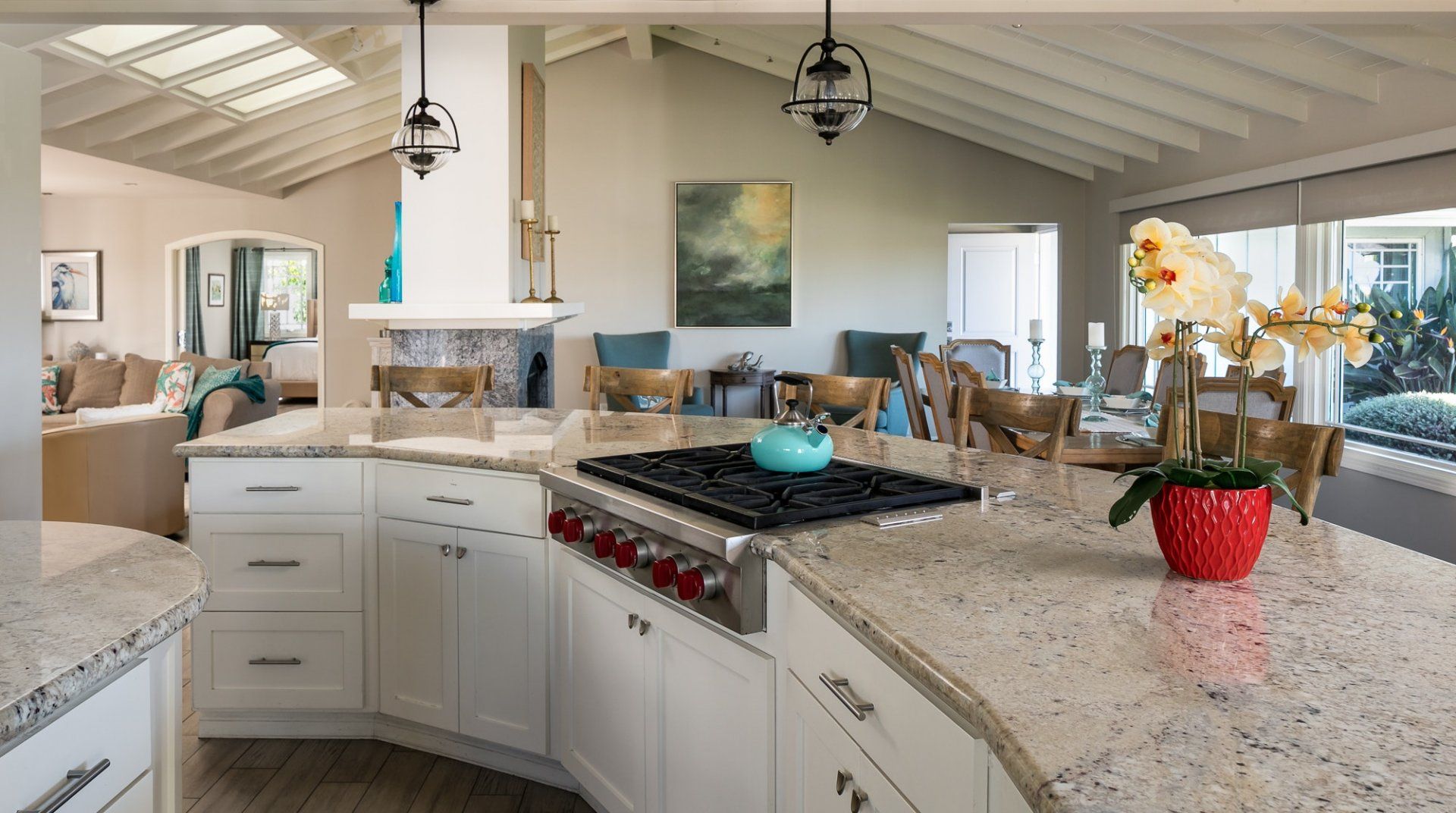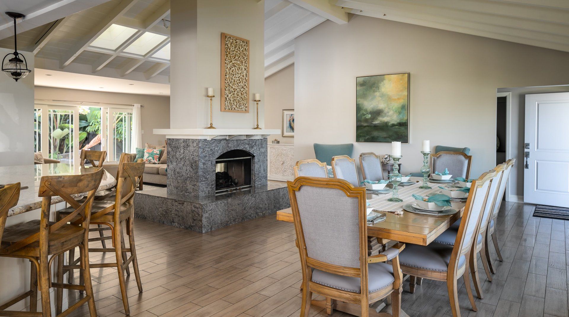 Waking up to ocean vistas is a scene you'll never tire of at this immaculate beachfront home, placed just steps from the golden shores of La Jolla - San Diego's most desirable seafront neighbourhood. Bright, light, and breezy with vaulted ceilings and cool, wooden floors – this is Californian-style living at its finest. The large windows invite you to gaze out over the green parklands and the sea beyond, and if you're lucky, you might just catch a glimpse of dolphins splashing around in the open ocean. A home begging for a large group of friends or family to come together, there's heaps of space to spill out here including two detached king-sized bedrooms for that added bit of privacy. Pad out into the backyard for a relaxing soak in the spa after days at the beach, while little ones can let off some steam playing in the fenced grass yard, or with a game of table tennis. When thoughts turn to food, gather your troops around the eight-foot dining table for memorable evening meals overlooking the ocean – cooking is a joy in the made-for-action, sociable kitchen. Or head to the bustling local restaurants for an evening meal – we hear the local pizzeria and ice cream parlour (both seven minutes on foot) are unmissable. Just be sure to make it back to watch the sunset over the horizon – there's a front-row seat waiting at home.