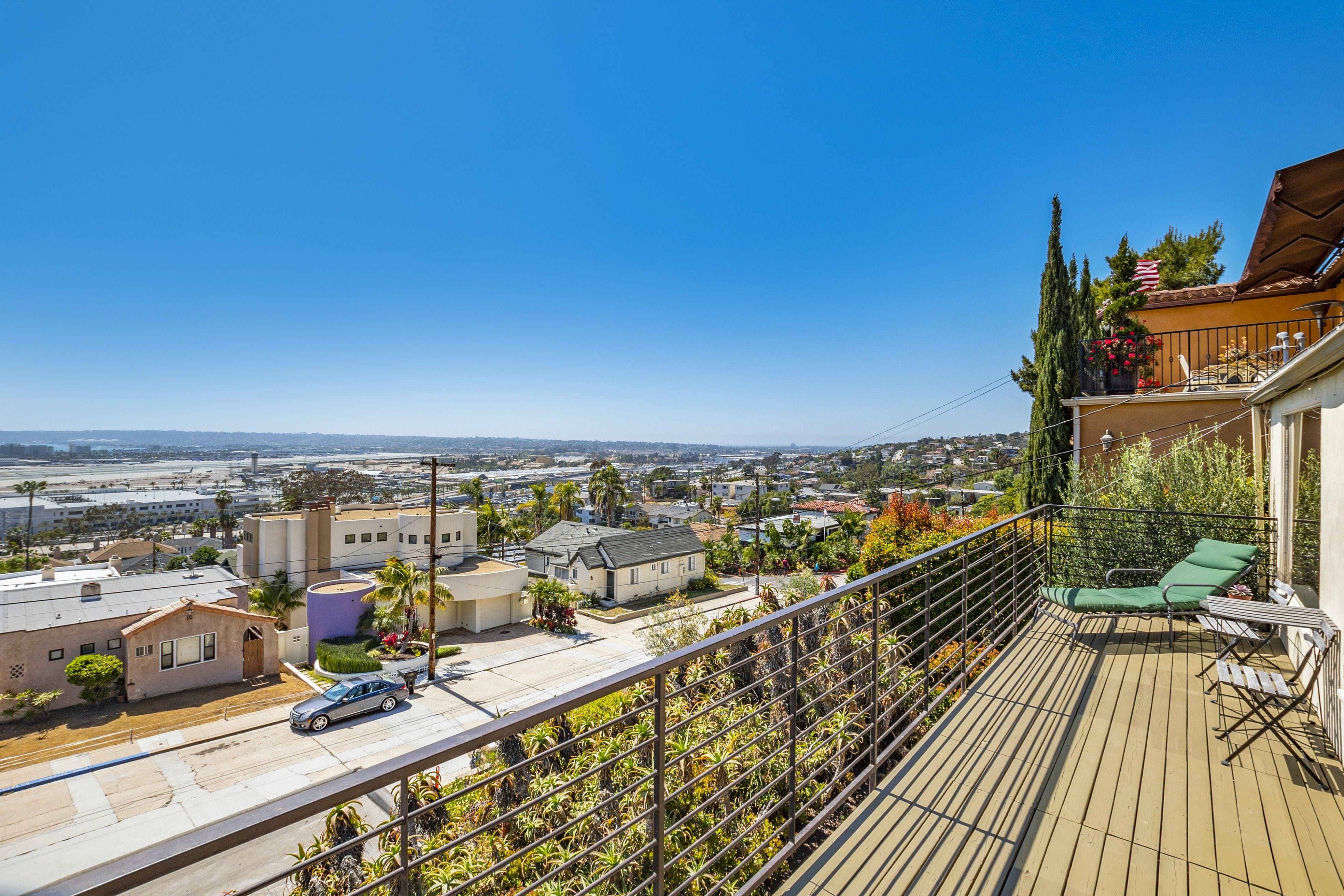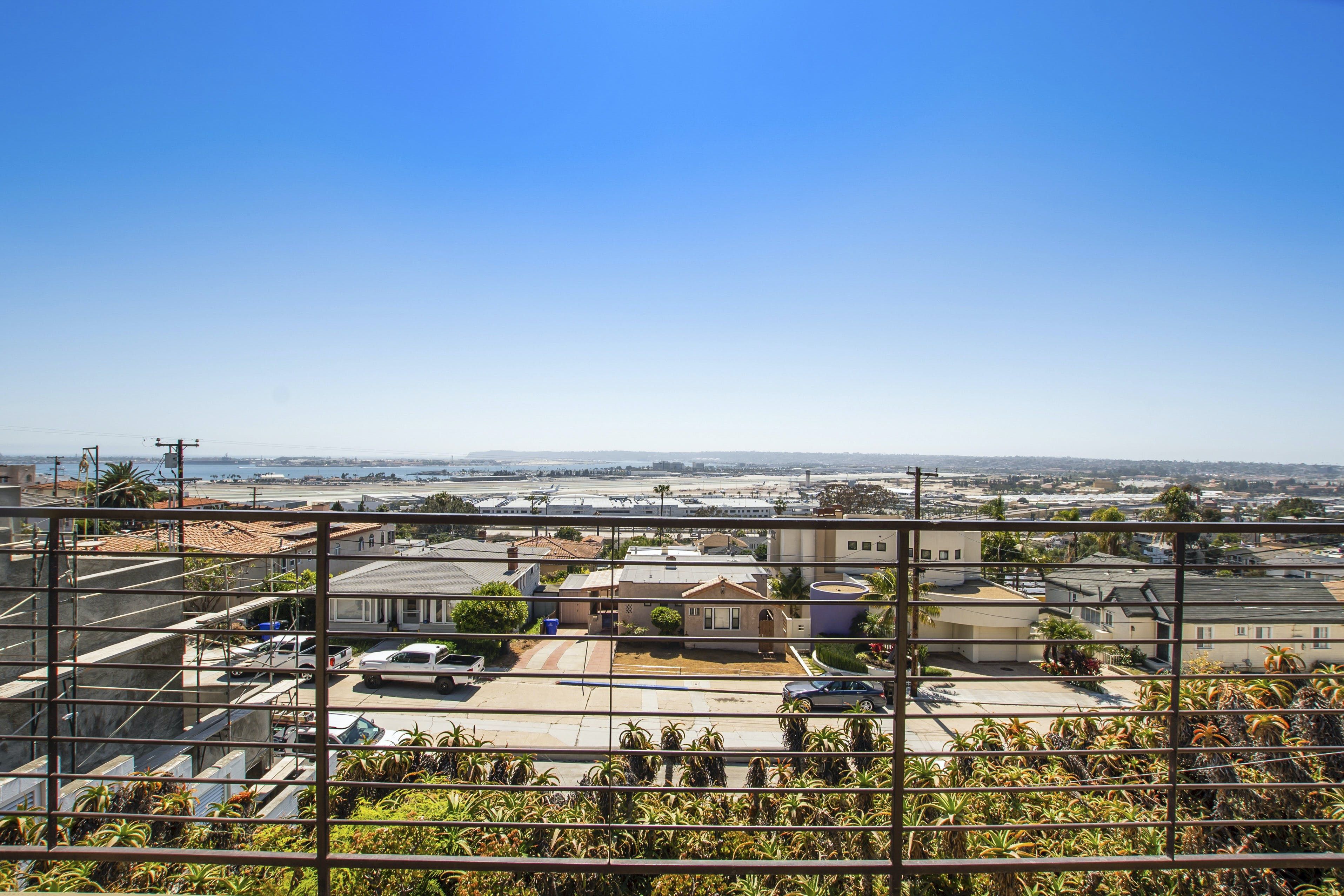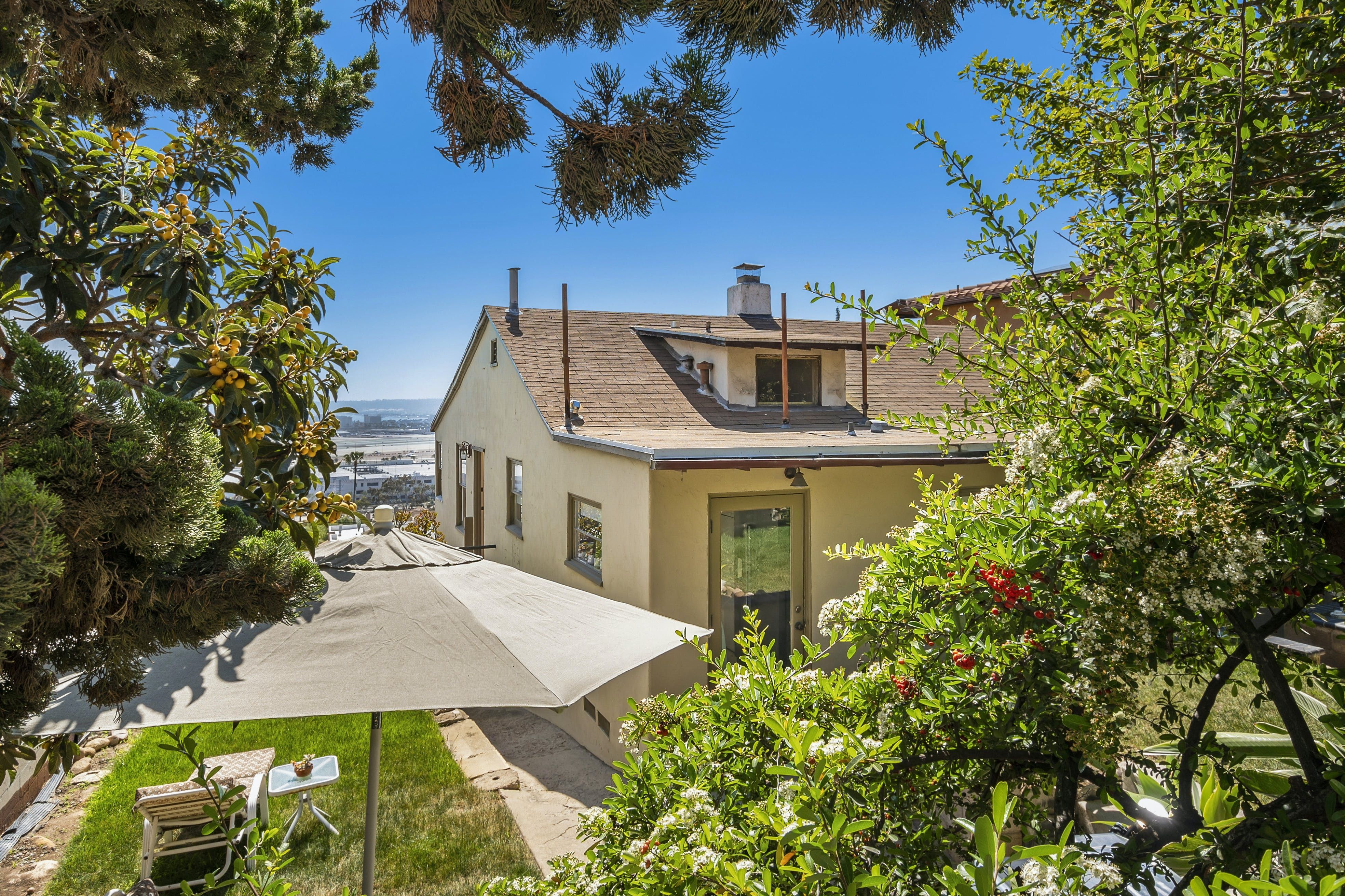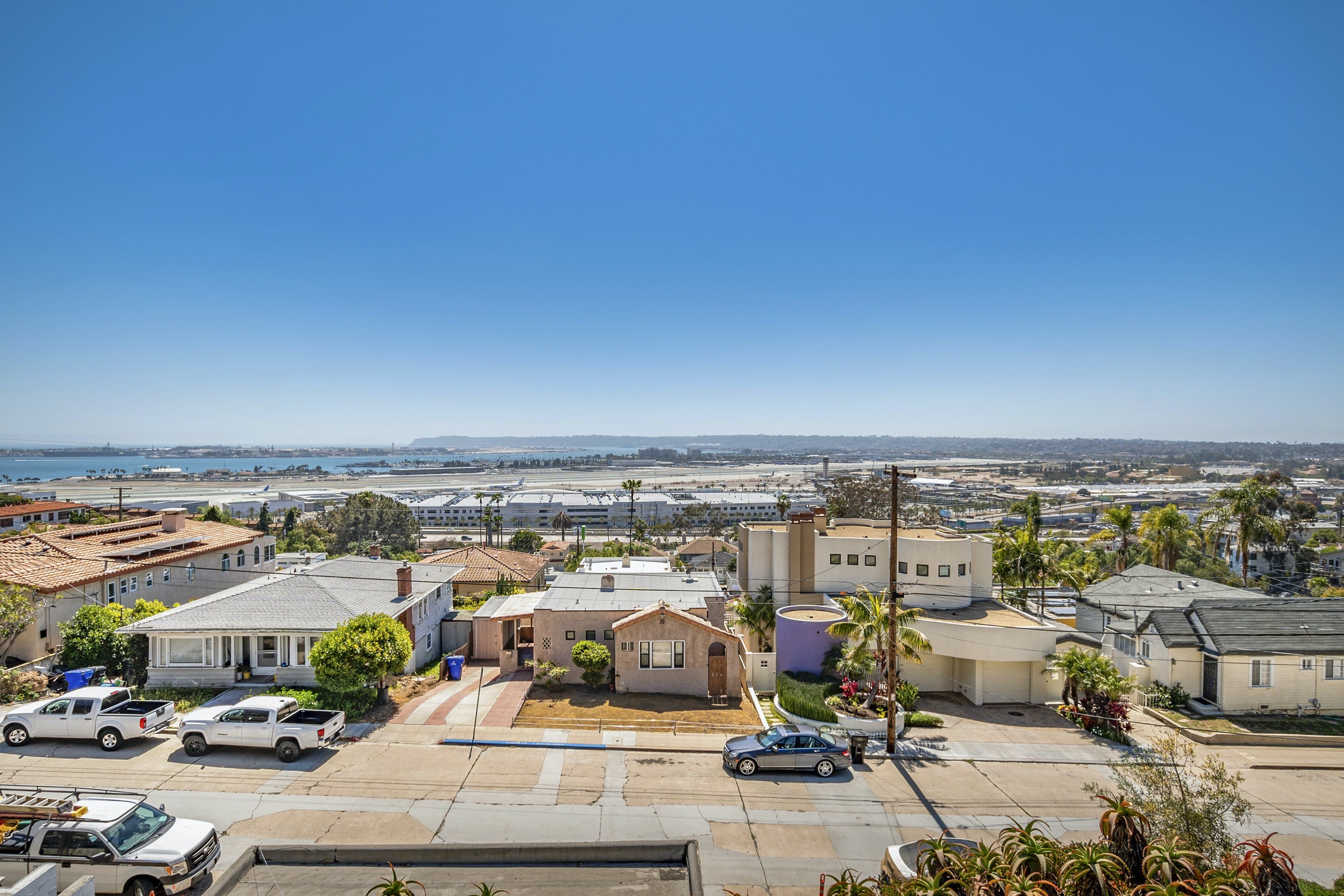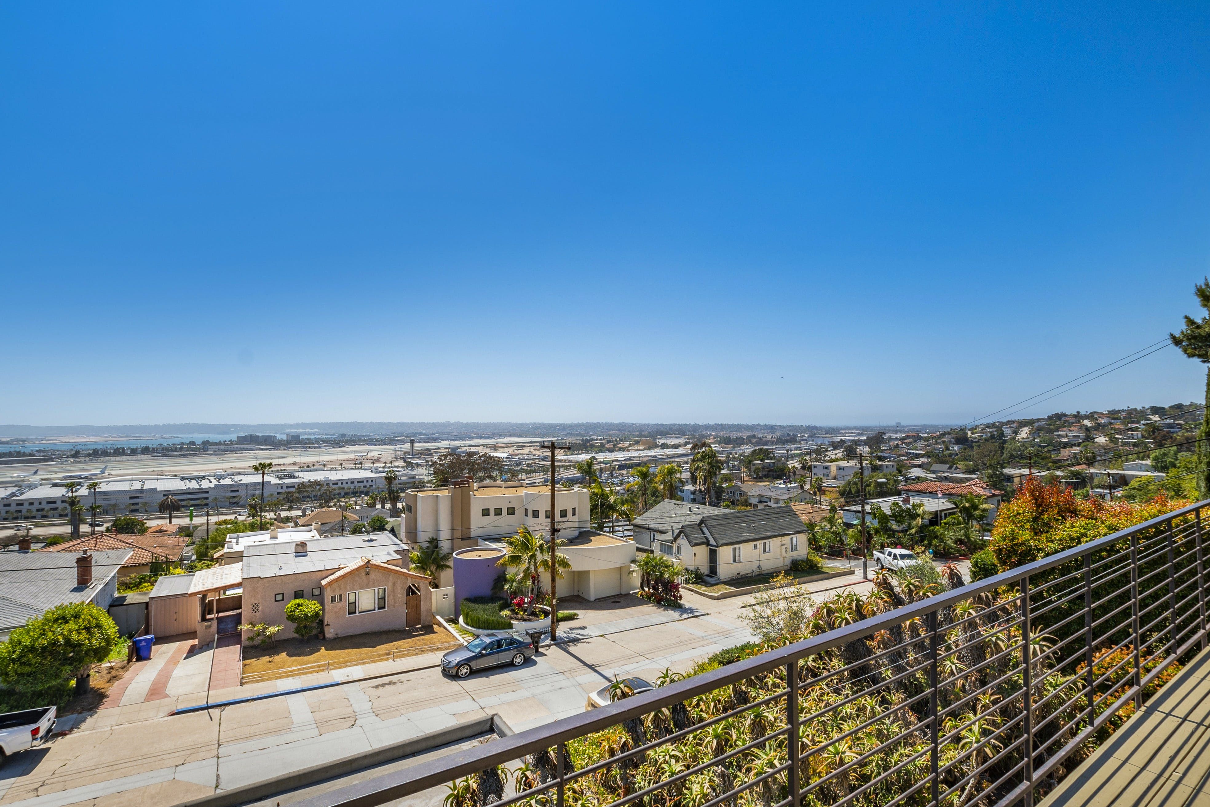 With breathtaking views of Coronado and San Diego harbour, this charming 1920s California-style bungalow sits atop a west-facing hillside in an affluent part of town. Climb the stairs from street level and step into the main open-plan living area and kitchen. Here, you'll find a space blessed with high ceilings and a wall of glass with breathtaking views that leads directly onto a vast twenty-six-foot balcony running the length of the house. Pour yourself a welcome glass of Prosecco from the fridge and relax as you gaze out at the ocean and the planes coming in to land at the airport. Whether you're in town for work or play, location is key, and you couldn't be better placed here – just minutes from San Diego International Airport, Little Italy, Downtown Gaslamp, and the area's beaches. That said, there are plenty of wonderful cafes and historic neighbourhoods within walking distance, so you don't have to rely on four wheels all the time. And even when you're looking to travel further afield, it's a short stroll to the trolley stop, which can whisk you to the Gaslamp Quarter. Alternatively, take the COASTER train north to chic beach towns like Solana Beach, Encinitas and Carlsbad. At the end of a packed day, head through to the soothing bedrooms, which are decorated in neutral tones that contrast nicely with the dark wooden furnishings, while the comfortable beds make getting up in the morning a struggle.