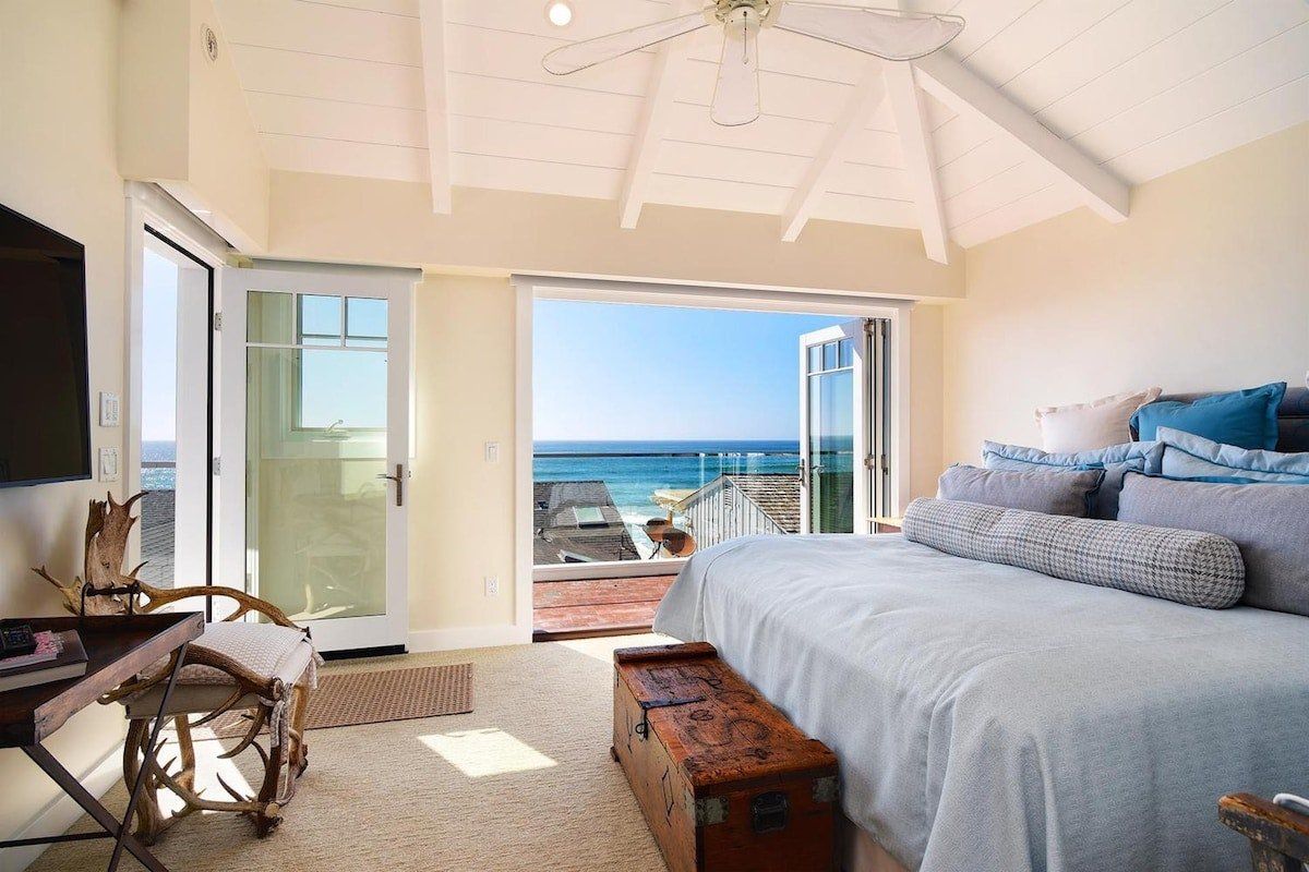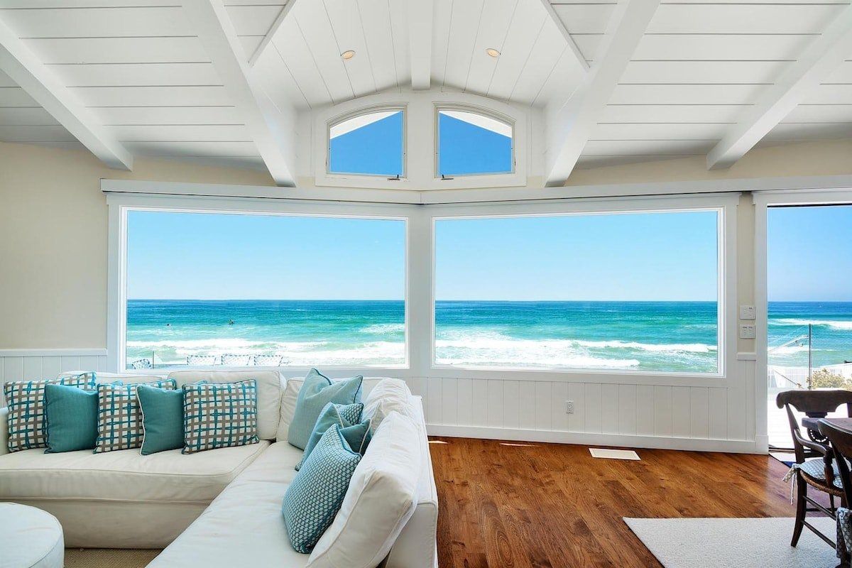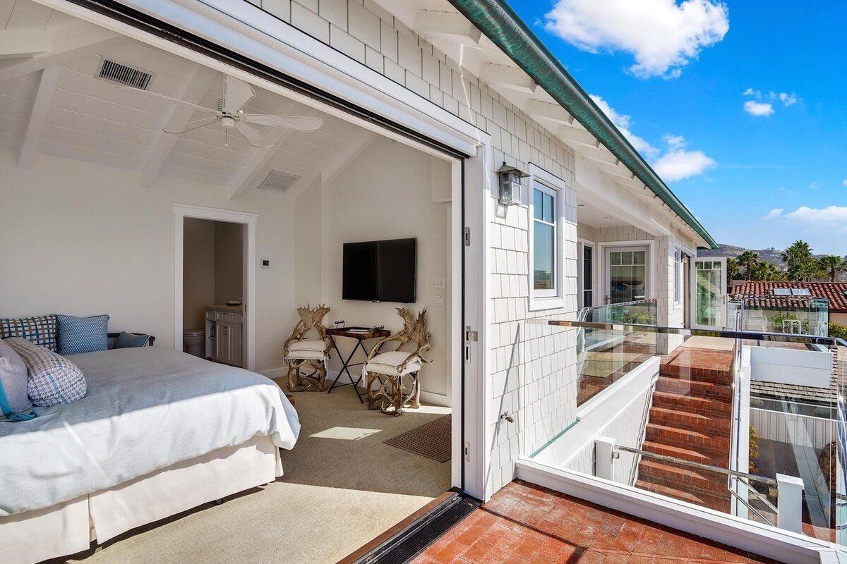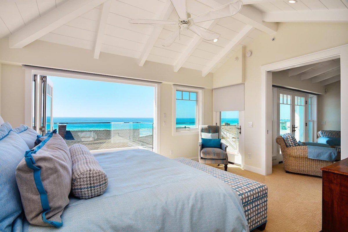 Taking inspiration from the Pacific Ocean right on your doorstep, this beachfront home is a calming oasis of whites and blues. With walls of glass and multiple balconies, you won’t miss a second of the boundless vistas. Fall asleep to the sound of waves and wake up to a fresh open breeze—roll straight out of bed and onto your deck and fill your lungs with that revitalising sea air. Days can be spent bronzing on the raised terrace; carving through the swells on surfboards or simply ambling the length of the palm-fringed beach. Head home, sandy-toed to the shady nooks of the sprawling patio for freshly grilled fish hot off the barbecue and refreshing cocktails in the hot tub. A small casita next to the central courtyard is perfect for family games nights and movies on the large TV, or just for when you need a quiet moment alone with your book. And what’s more, you're also only a five-minute walk from La Jolla Shores Park, perfect for peaceful sunset strolls.