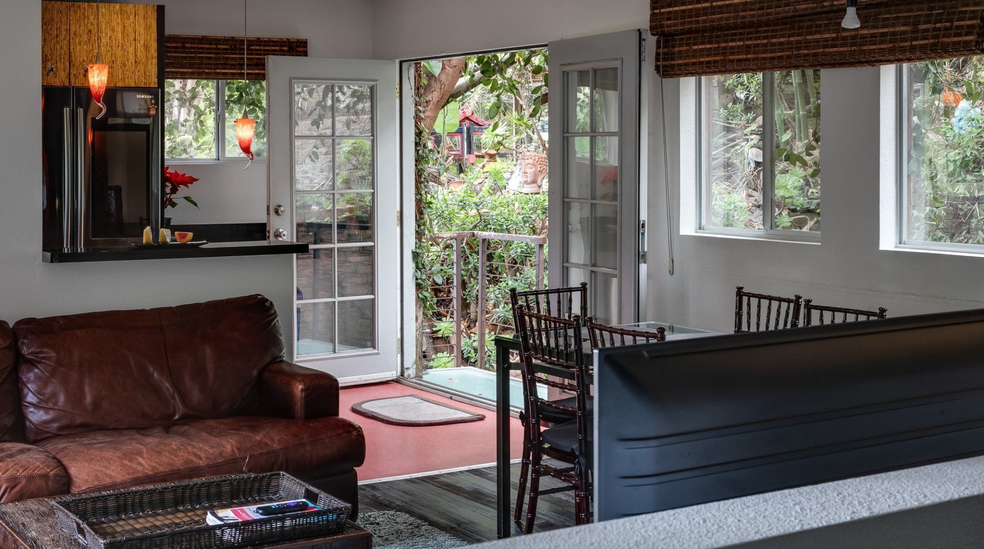 Our most ecologically minded guests will find paradise in this home. The garden feels like your very own slice of Eden – not only are the plants beautiful, but most of them are edible too and organically grown. Sweeps of bright orange nasturtium fill the spaces that aren’t manicured and there are cascading waterfalls to add to the feeling of zen. It might be impossible to leave this tranquil space, especially when you can enjoy the tropical vistas from the steamy hot tub.