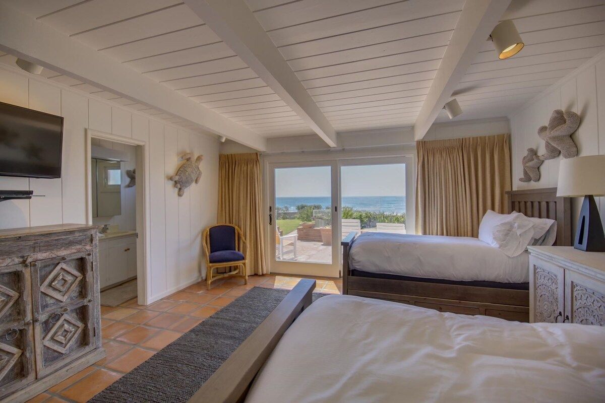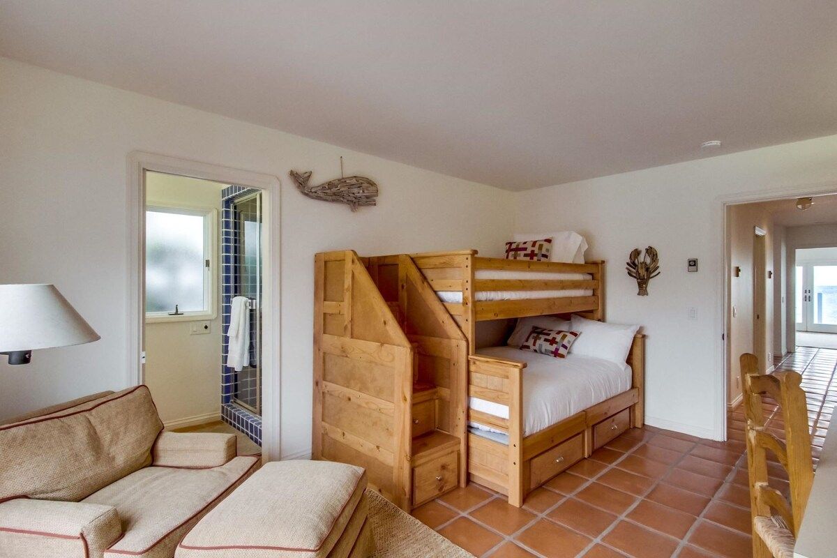Just steps from the sandy beach, this home is something the whole family will remember. With breathtaking views from almost every angle, a garden and a stunning patio, it’s the perfect spot for a relaxing beach break. Inside, we’re talking vaulted ceilings and exposed wood beams for a real beach house feel, and each bedroom has its own en-suite and access to an outside space – be it a balcony or the rear terrace. Facing the ocean, there’s a perfect outdoor dining area and barbecue, so you can enjoy warm evenings outdoors together, and there’s a lovely pool and spa. Best of all, you’ll have your own private access steps down to the gorgeous stretch of sand between Windansea Beach and Marine Street Beach. If you're travelling with a golf fan, Torrey Pines Golf Course is a short drive away, and San Diego Zoo is a great day out if you’re traveling with children.