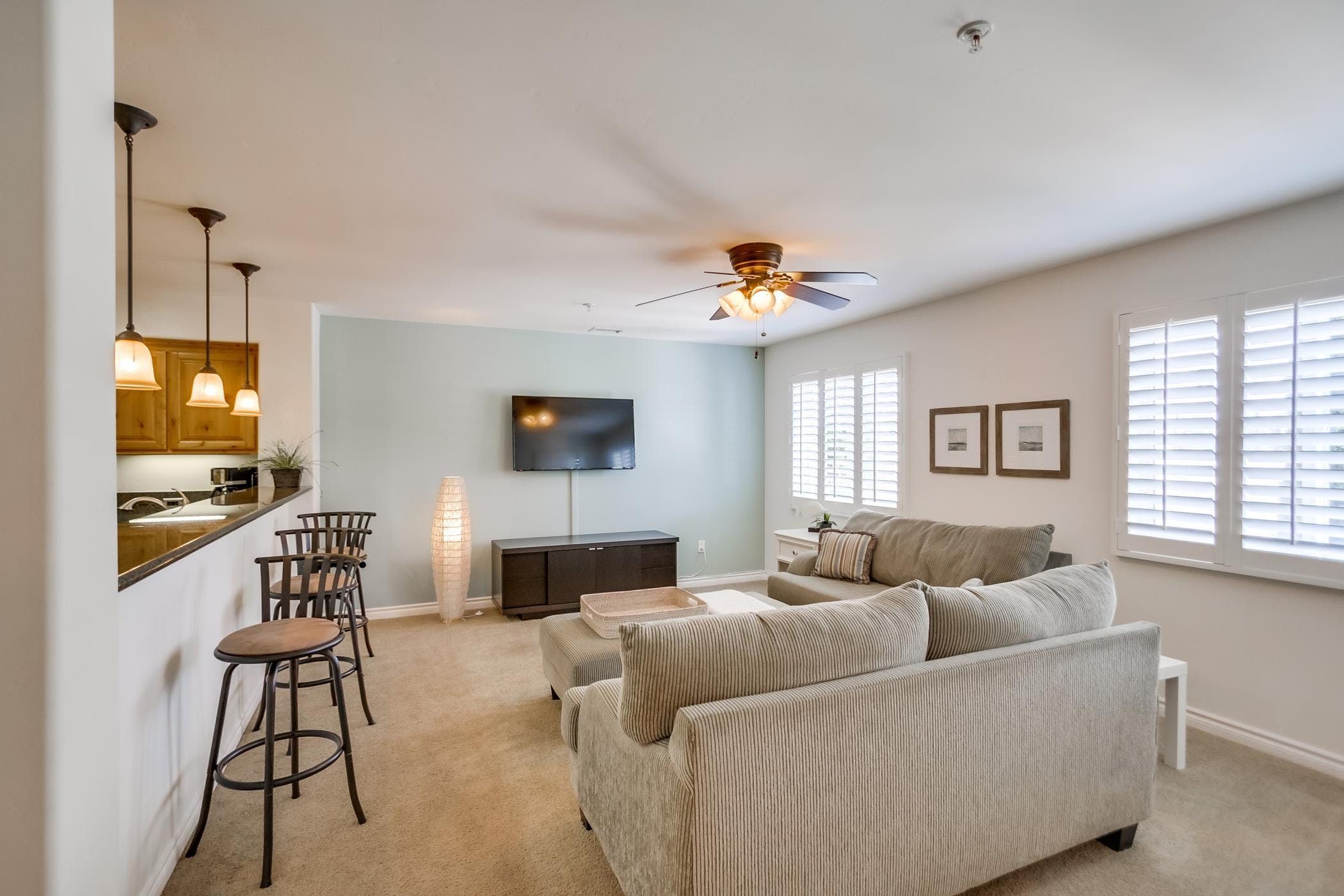 Meanwhile, the apartment itself presents everything you'll need for a chilled-out and comfortable stay by Pacific Beach. Step out onto the balcony terrace each day and soak up the fresh sea air as the California sun beats down. Inside, you'll find contemporary furnishings laid out in a sociable manner so that the group can come together for homemade meals and aperitifs in the open kitchen, dining and lounge area. Find solitude in the large bedroom and bathroom spaces which will have you sinking into blissful moments of relaxation through a neutral and soothing colour scheme in no time.