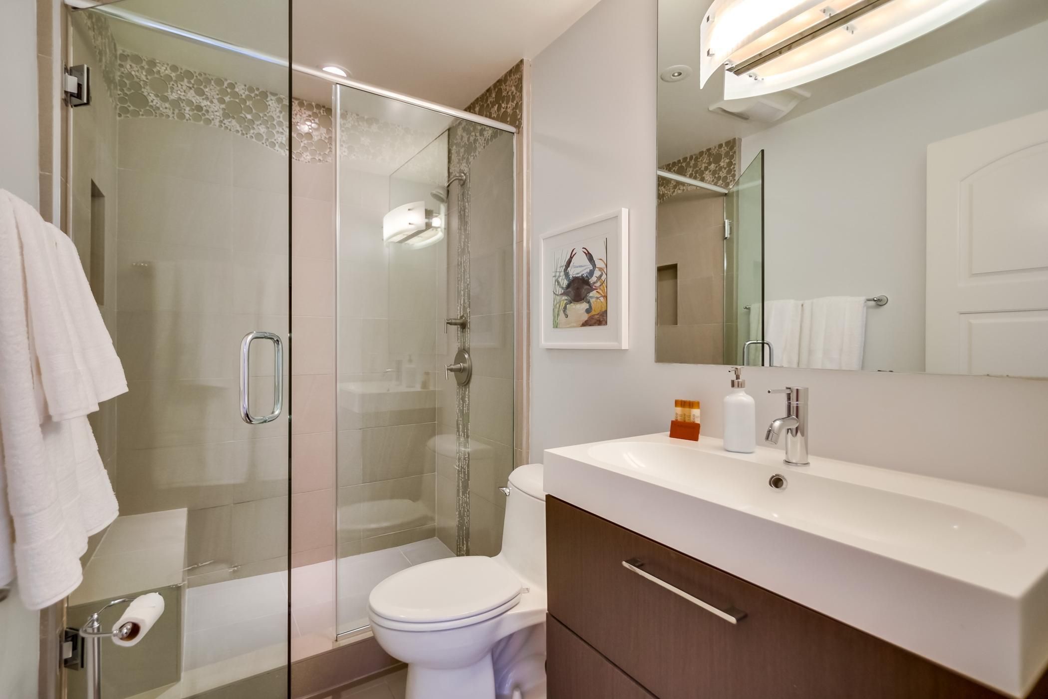 Stepping outside, make your way onto the boardwalk for a refreshing stroll along the oceanfront. From surfing and volleyball to markets and restaurants, there’s plenty to do and admire here. And for a healthy dose of family fun, Belmont Park is just a six–minute walk away.