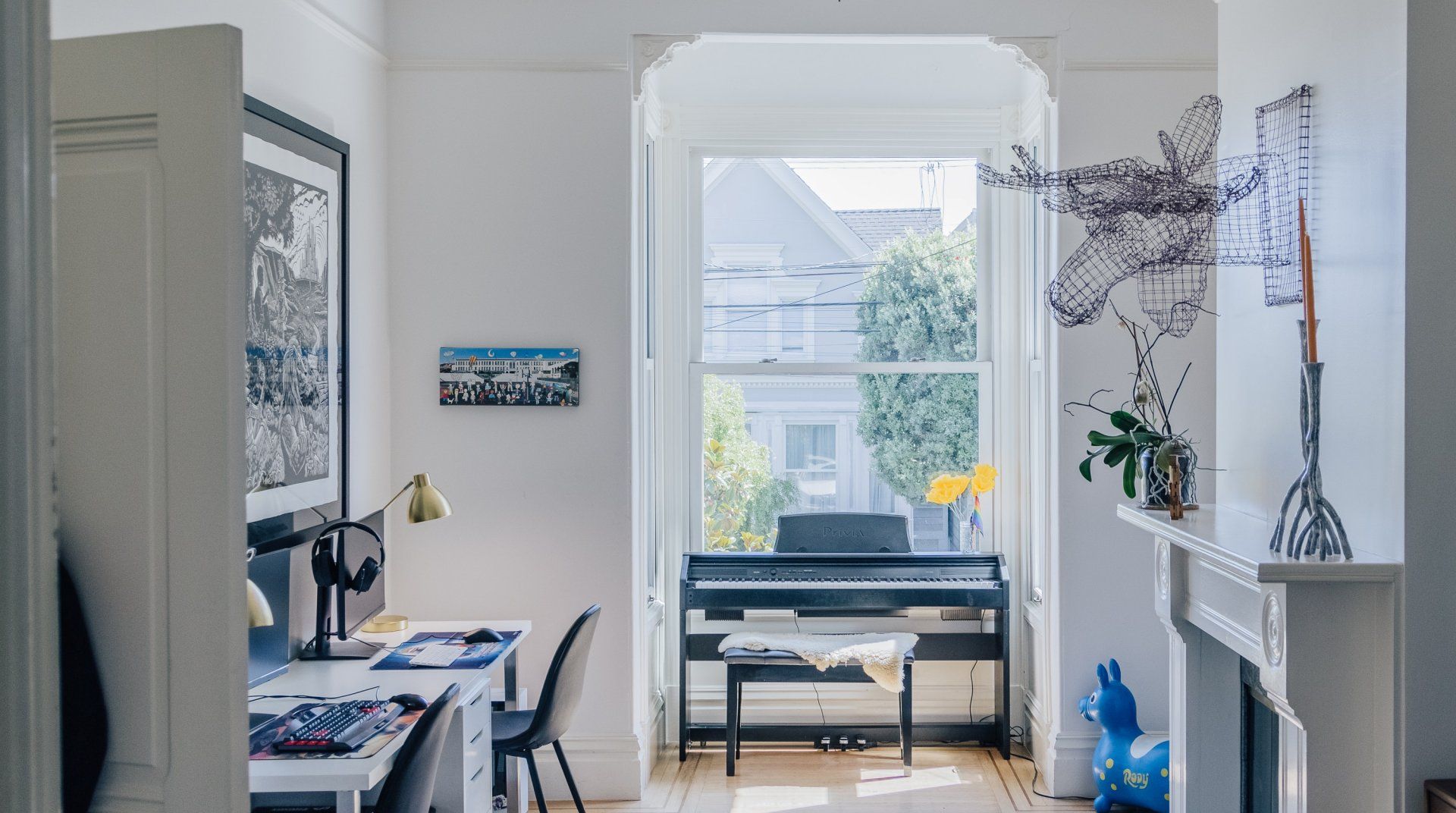 As you arrive at this quintessentially San Franciscan Victorian house, its ornate wooden exterior and stairs invite you inside. Located in Noe Valley (a family-friendly area right by the Mission District and Castro) you can’t help but feel at home from the offset. The interiors feel warm, plush, and playful. We love how some of the pieces play on transitional versus modern – the wire-sculpted moose head above the fireplace, and an angular chandelier in the lounge, alongside original paintings and photography prints. The living spaces are all connected, leading outdoors to decking and a leafy garden. Start the morning out here with the free weights or on the yoga mat like a true Californian. After lunch, pop on the record player or have a tinkle on the piano by the beautiful windows. For the little ones, you’ve got your very own playroom filled with kids toys and books. For a day out, gather the family and head twenty minutes up Twin Peaks for spectacular views of the city. About twenty minutes in the other direction will take you into the Mission. Get a babysitter (your host can help you out with recommendations) and head out for wine bars, excellent restaurants, and perhaps a cocktail to round off the evening.