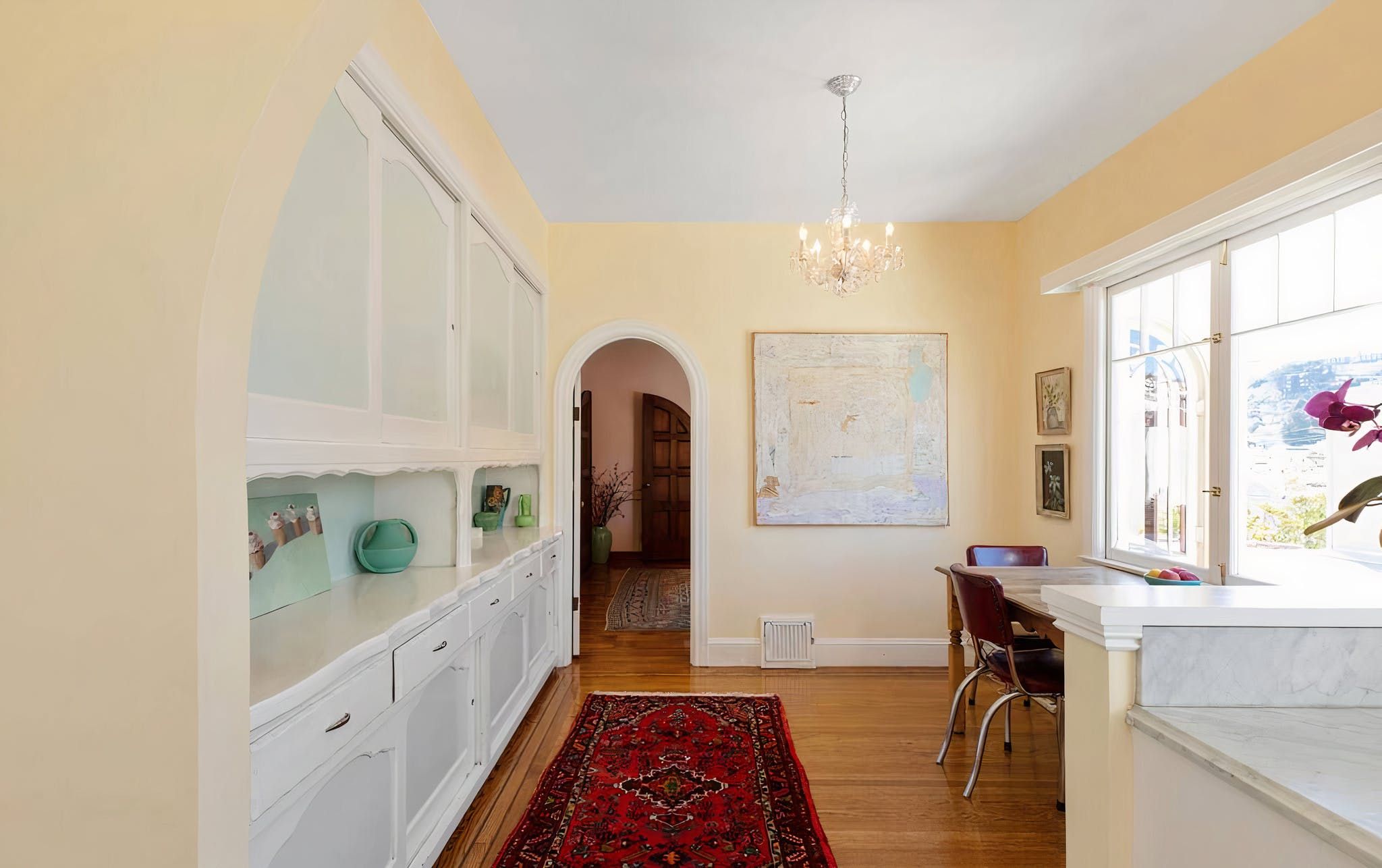 For those creative souls who revel in unique beauty from a bygone era, this elegant, art-filled home visually delights from every angle while offering all the modern conveniences. Situated on the top floor of a two-unit condominium in the sought-after Noe Valley neighbourhood, this home with Mediterranean influences benefits from garden views as well as views out to the iconic Twin Peaks and Sutro Tower. And thanks to Noe Valley's central location, it’s one of the sunniest spots in the city.