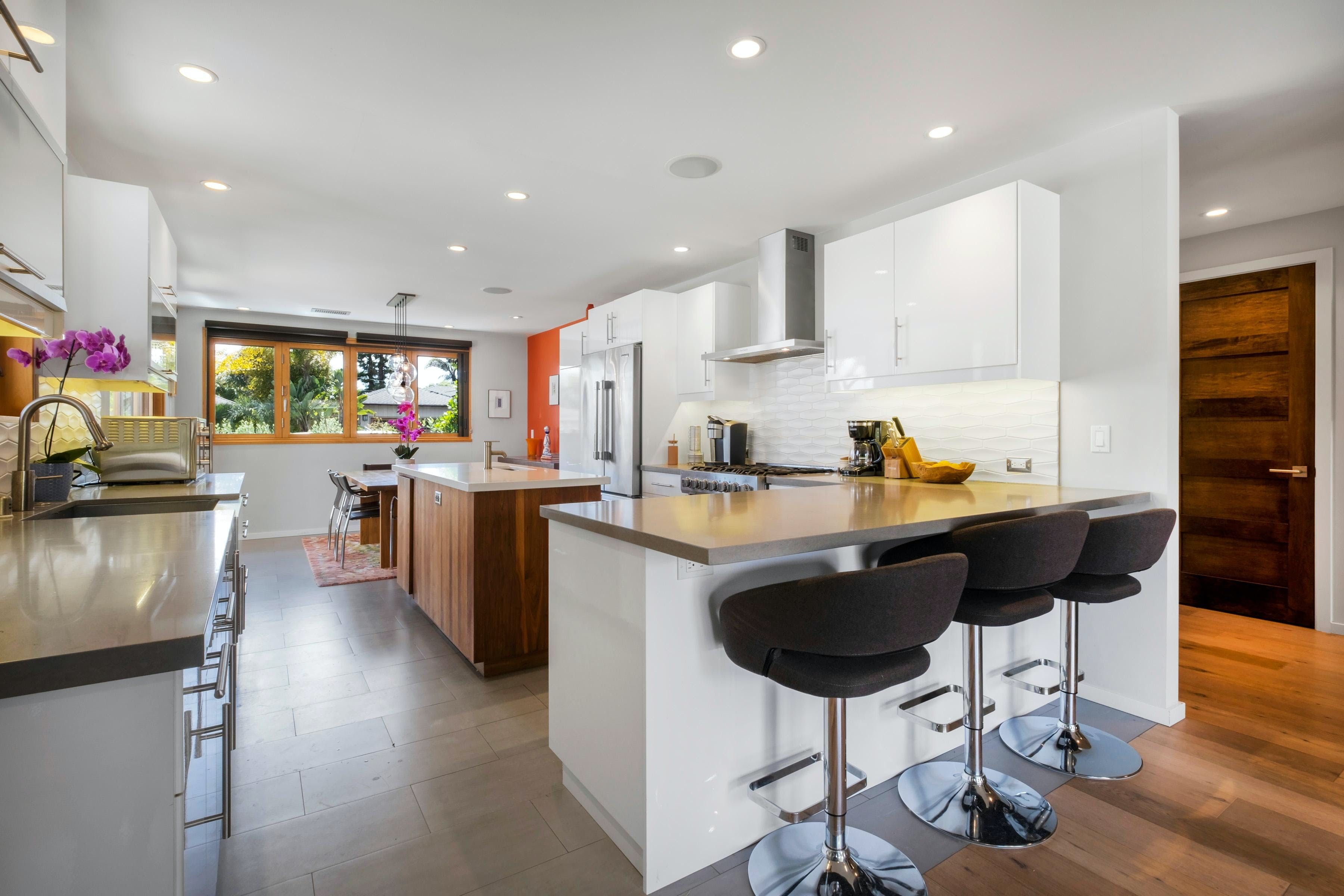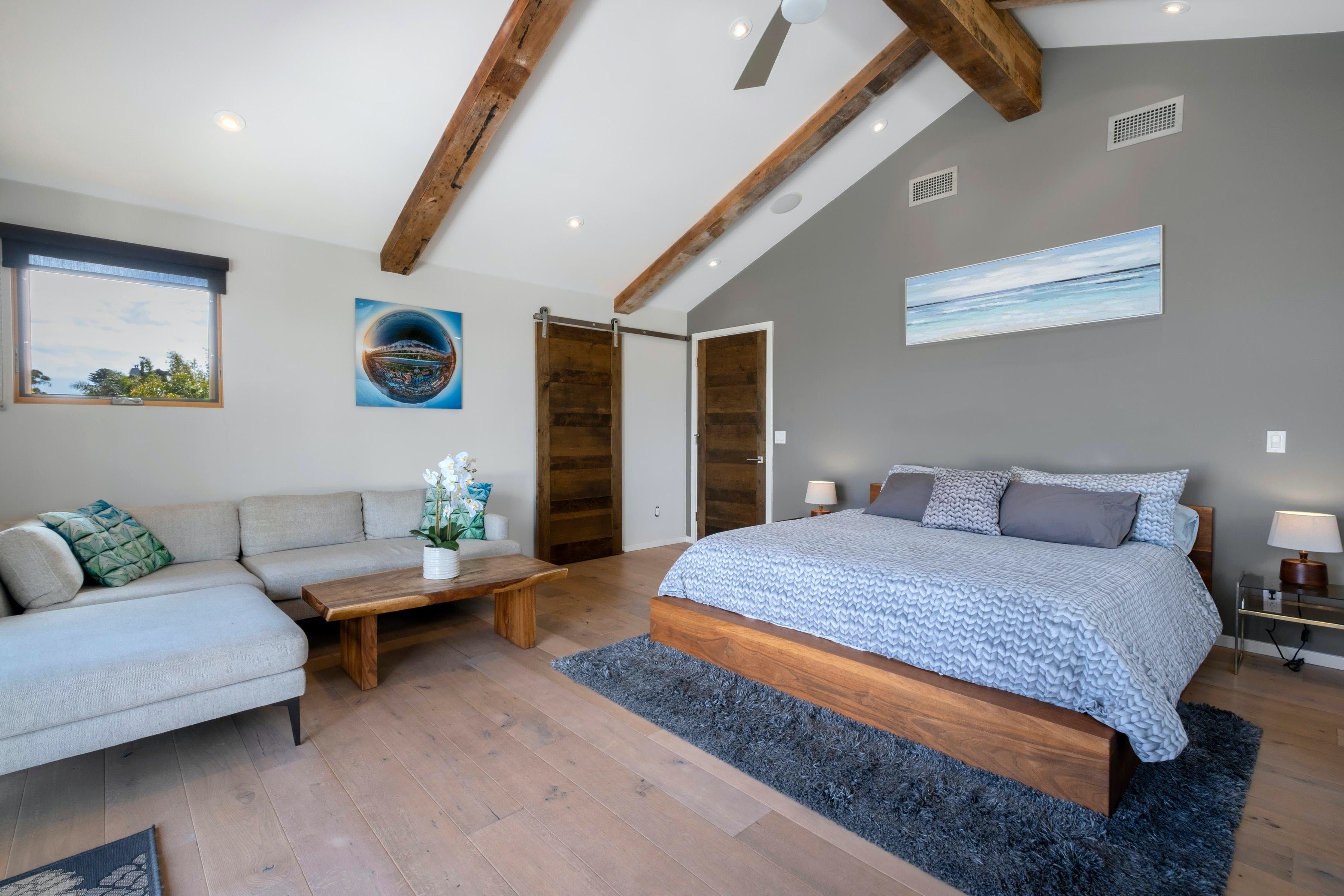 Come for the outdoor living, stay for the cosy quarters at the end of a sunny day. This three-bedroom home, nestled in Santa Barbara’s coveted Marine Terrace neighborhood, has everything you’d want from a coastal California home – not least its sprawling outdoor area made for the sun, with a bocce ball court, hot tub, fire pit, and plenty of outdoor seating to boot. Inside, the open floor plan and sleek finishes make it easy to gather, cook, and relax. One or two well-behaved, potty-trained dogs are welcome, so your furry family members can enjoy the trip too! This is your chance to enjoy the comfort of a lovely stay with the charm of living like a local.