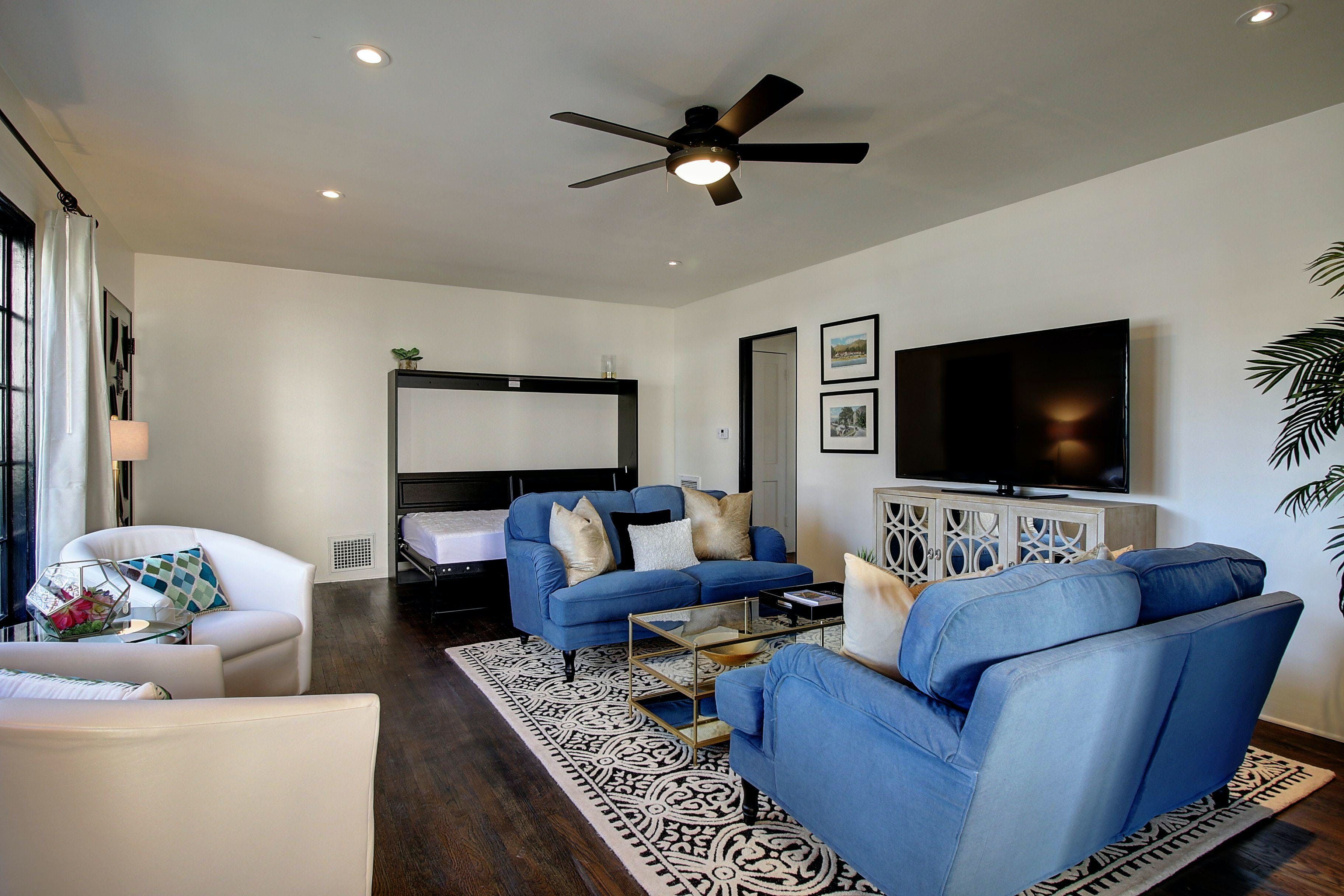 This one bedroom villa is a historic property located in the sought after neighborhood of West Beach in Santa Barbara. The villa has been professionally designed to capture the unique style of the 1930s and 1940s, while also providing modern amenities such as laundry facilities and a well-appointed kitchen. Guests can enjoy a private outside patio and stroll to the beach with provided linens, cookware, and supplies. The villa is within walking distance of the beach, harbor, activities, festivals, restaurants, bars, train station, State Street, The Funk Zone and cafes. A pack and play portable crib and high chair are also provided for families traveling with young children. Sorry, no pets allowed at this villa.