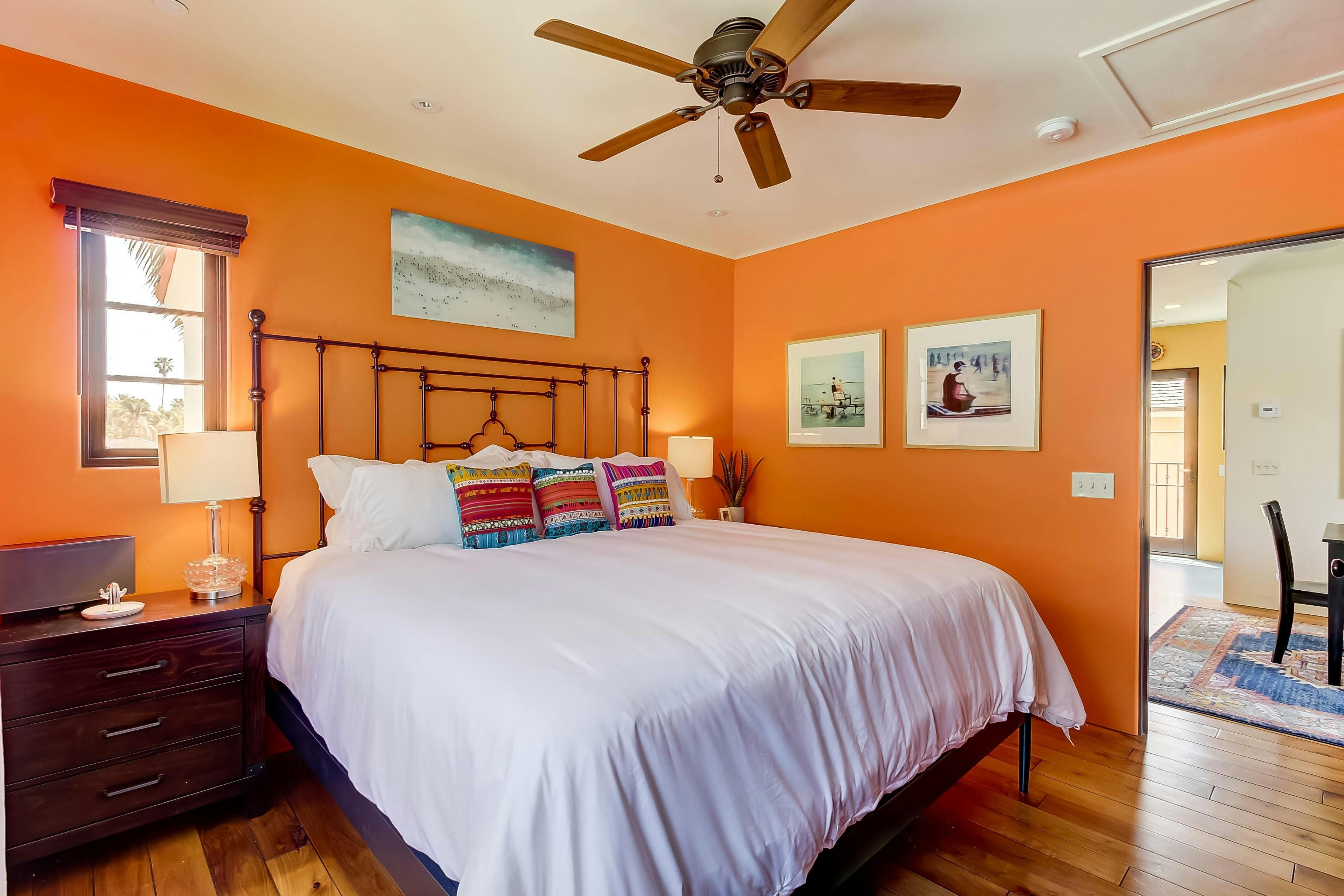 Experience the beauty of Santa Barbara's coast at this exquisitely remodeled villa in West Beach. The Diego Rivera inspired design and high-end construction by a renowned local builder make this property special. With majestic beach views just steps away, guests can relax under an umbrella or gather shells while building sandcastles. The fully-equipped kitchen is perfect for cooking dinner before cozying up indoors to play games around the dining table. This upstairs villa has a sweet deck/patio with a BBQ perfect for enjoying the sunset. Professionally interior designed to capture the uniqueness of the property, it is filled with Santa Barbara local treasures and quality bedding and linens. Guests can unwind and have privacy all at the same time with two master bedrooms. All linens, cookware, and supplies are provided, including a pack-and-play portable crib and high chair. The location is unbeatable, with everything within walking distance, including the beach, harbor, State Street, restaurants, bars, train station, and cafes. Sorry, no pets allowed at this villa.