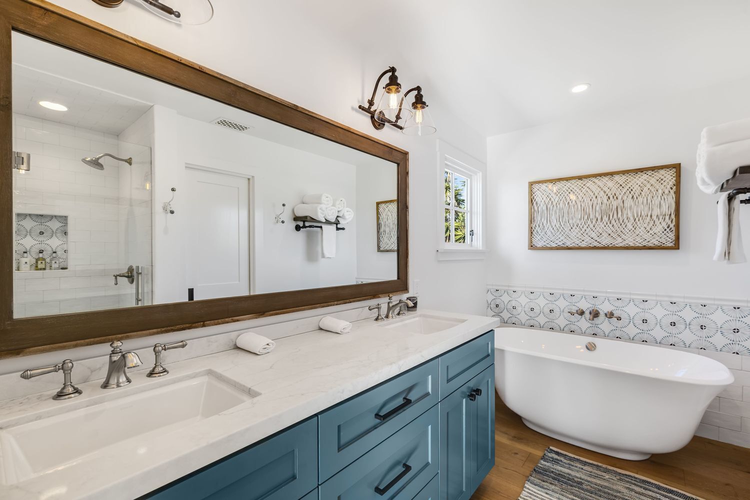 With sweeping ocean views and easy beach access, it’s not hard to see why this Santa Barbara home caught our eye. We love the open-plan living and kitchen area, making the most of the vistas while providing plenty of space for socialising. And, with a games room, hot tub, sun-kissed garden and alfresco dining opportunities, you’ll never be lost for things to do. When you’re ready to explore, hop on the bikes for a two-wheeled sightseeing tour. Beach calling your name? Sandy shores await just down the street via a set of steps, or you can jump in the car and make the short one-minute drive to Leadbetter beach.