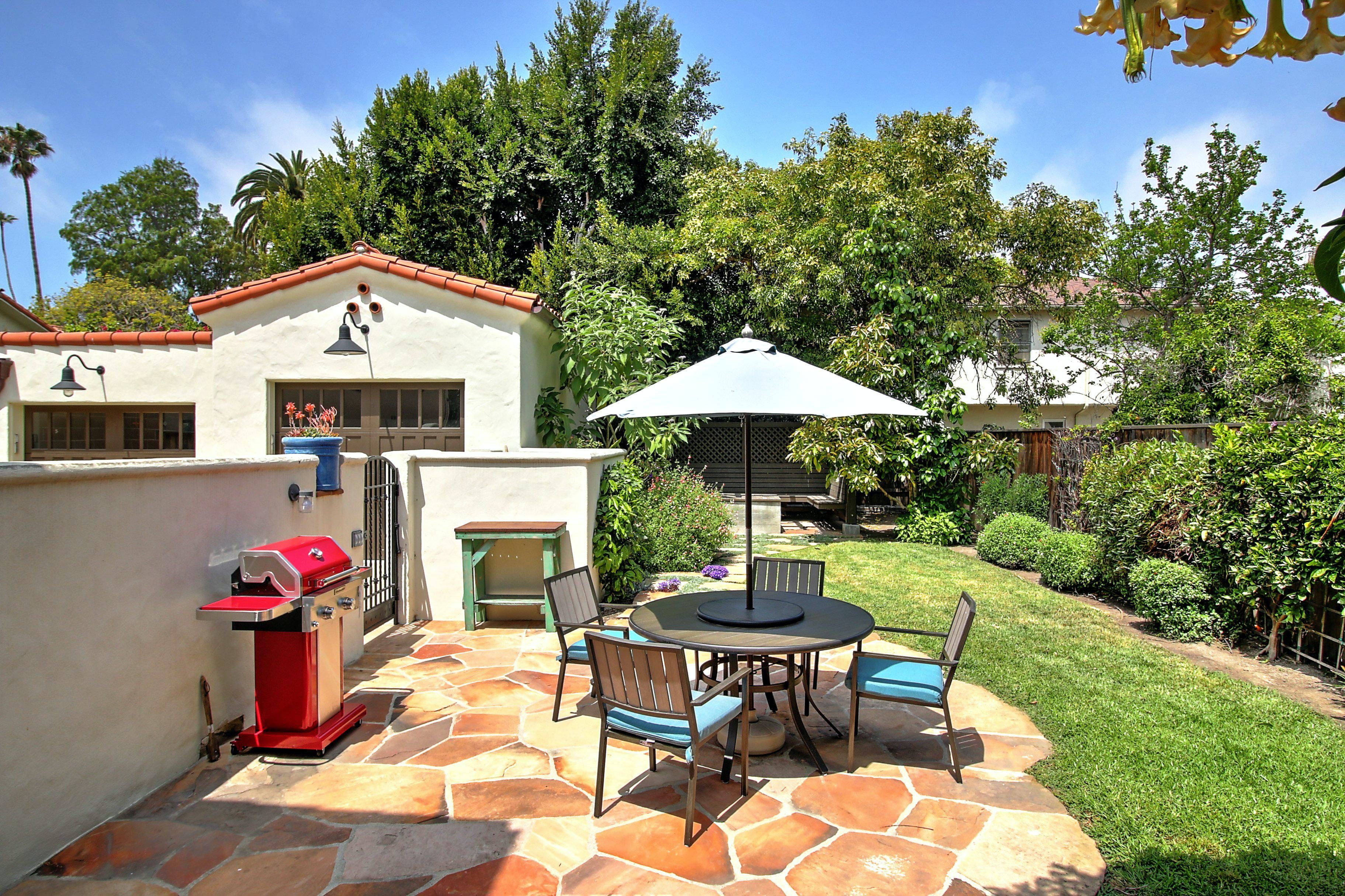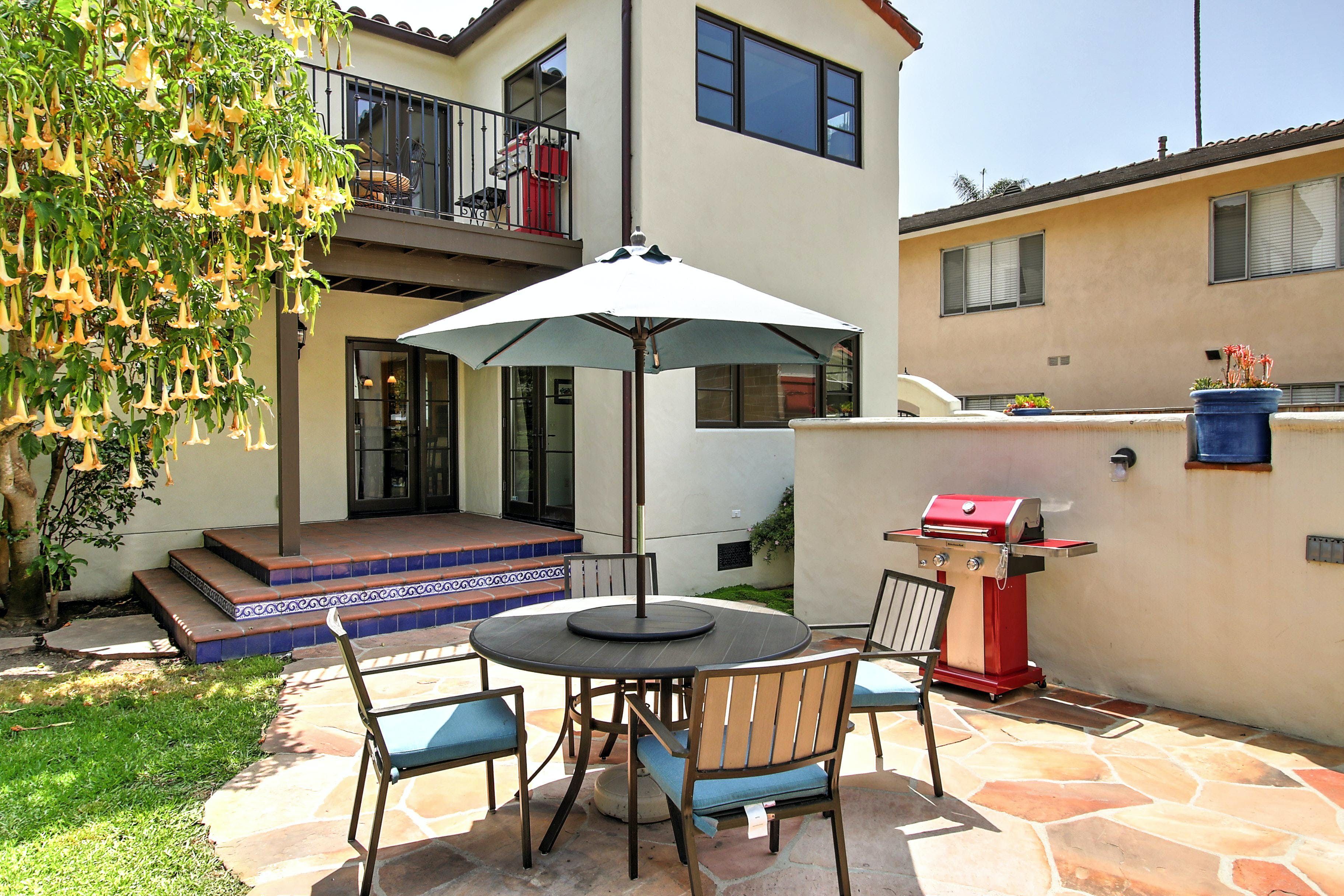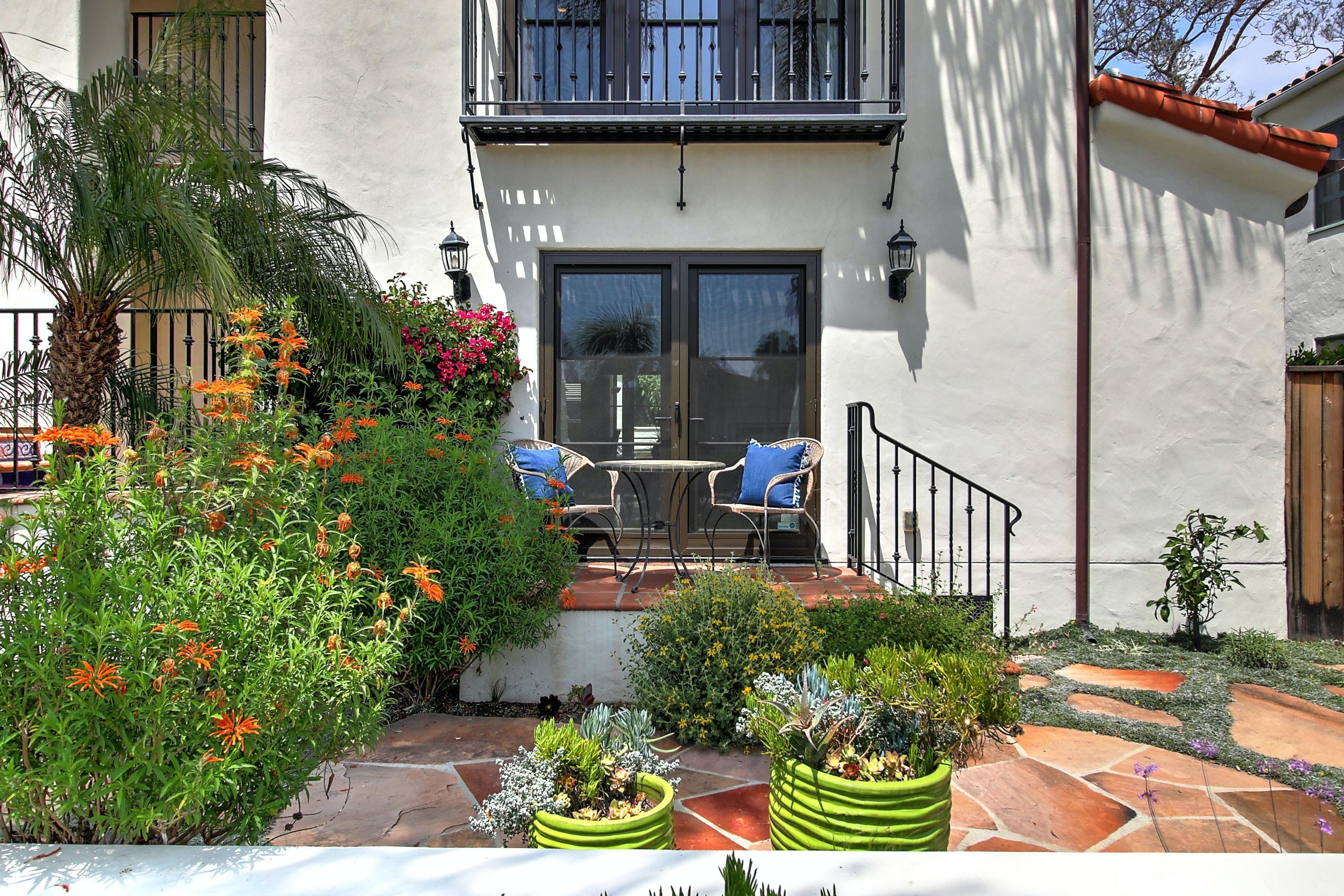 This is a beautiful property located in the heart of West Beach, Santa Barbara. The listing is for two private villas on the same property, each with two bedrooms and two bathrooms, and their own kitchens. The property is new and high-end, with funky interior design inspired by Diego Rivera. It boasts many amenities, including heated flooring in the master bathroom, smart TVs in the living room and master bedroom, brand new furnishings, front and back yard areas, and a 2-car garage with driveway parking. The location is unbeatable, within walking distance of the beach, harbor, State Street, The Funk Zone (a hot new local favorite), and cafes. Guests can rent both villas to have their own private compound for a luxurious vacation experience. All linens, cookware, beach gear, and supplies are provided to ensure guests have a wonderful dining experience or they can relax on brand new furnishings or mattresses after a day of fun activities.