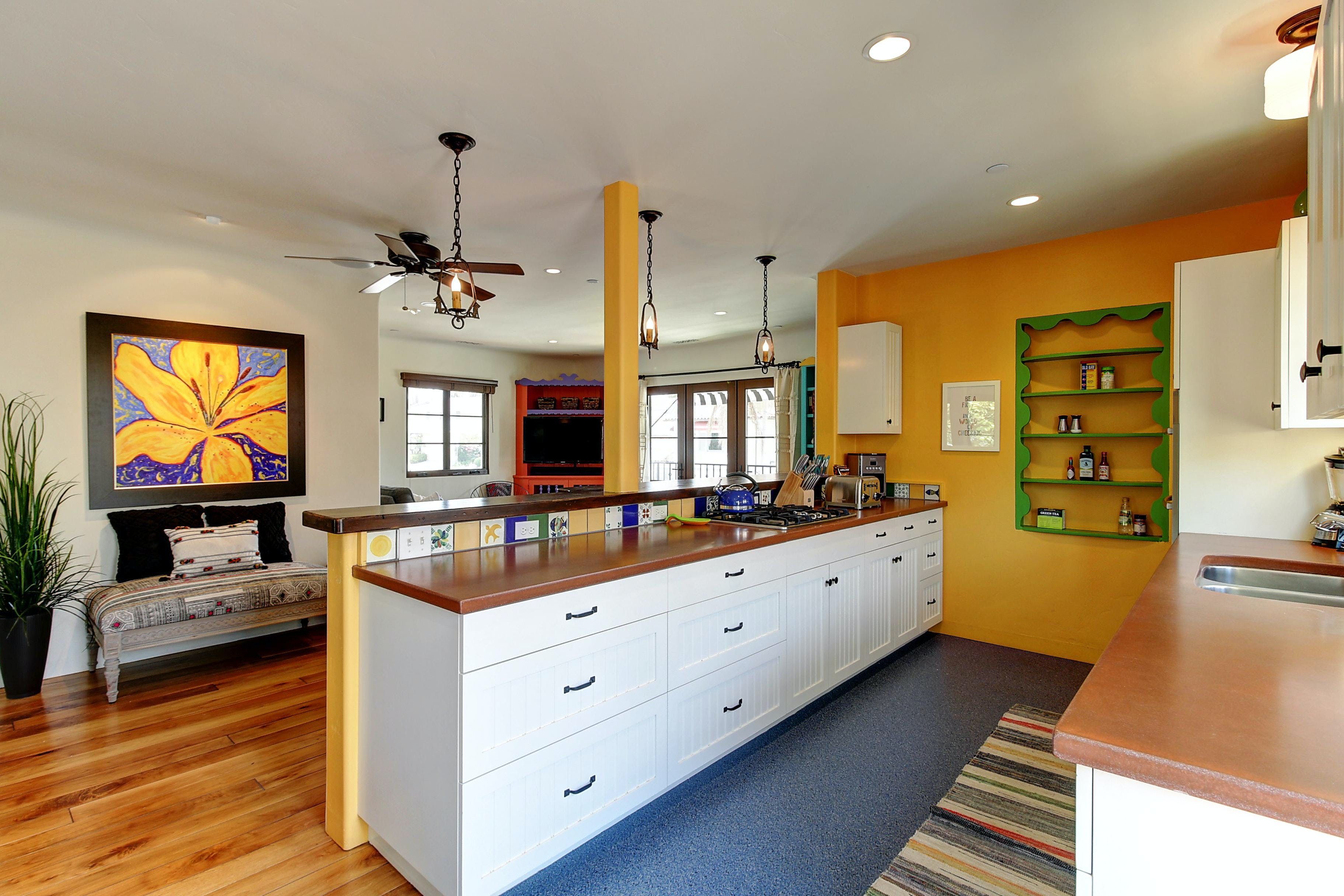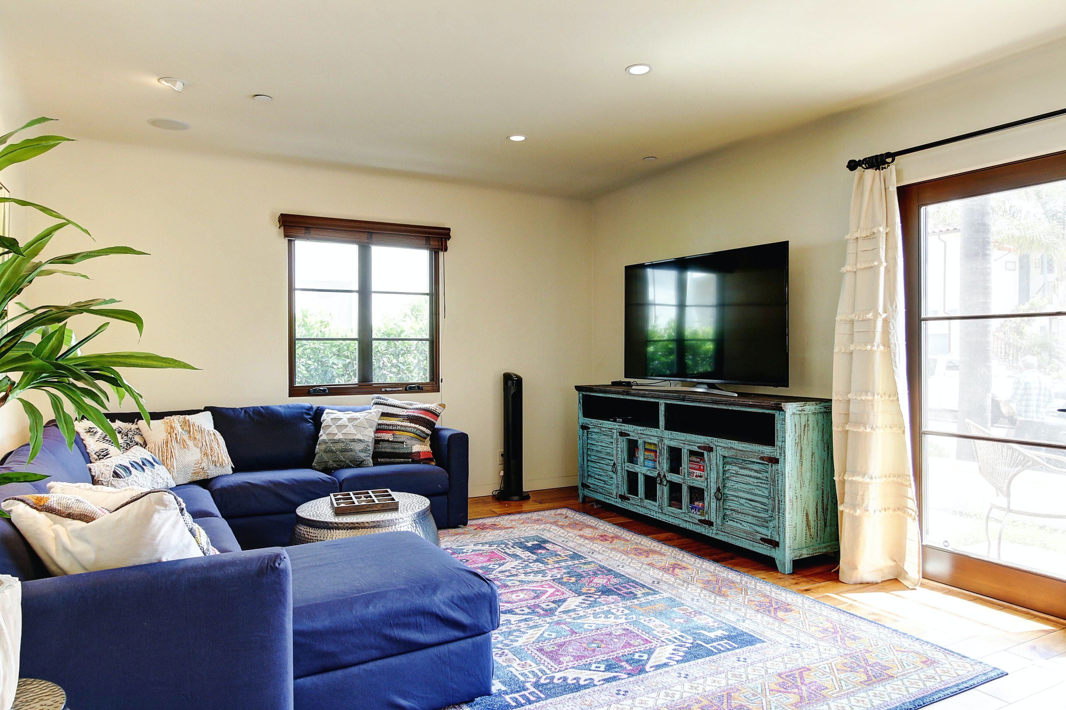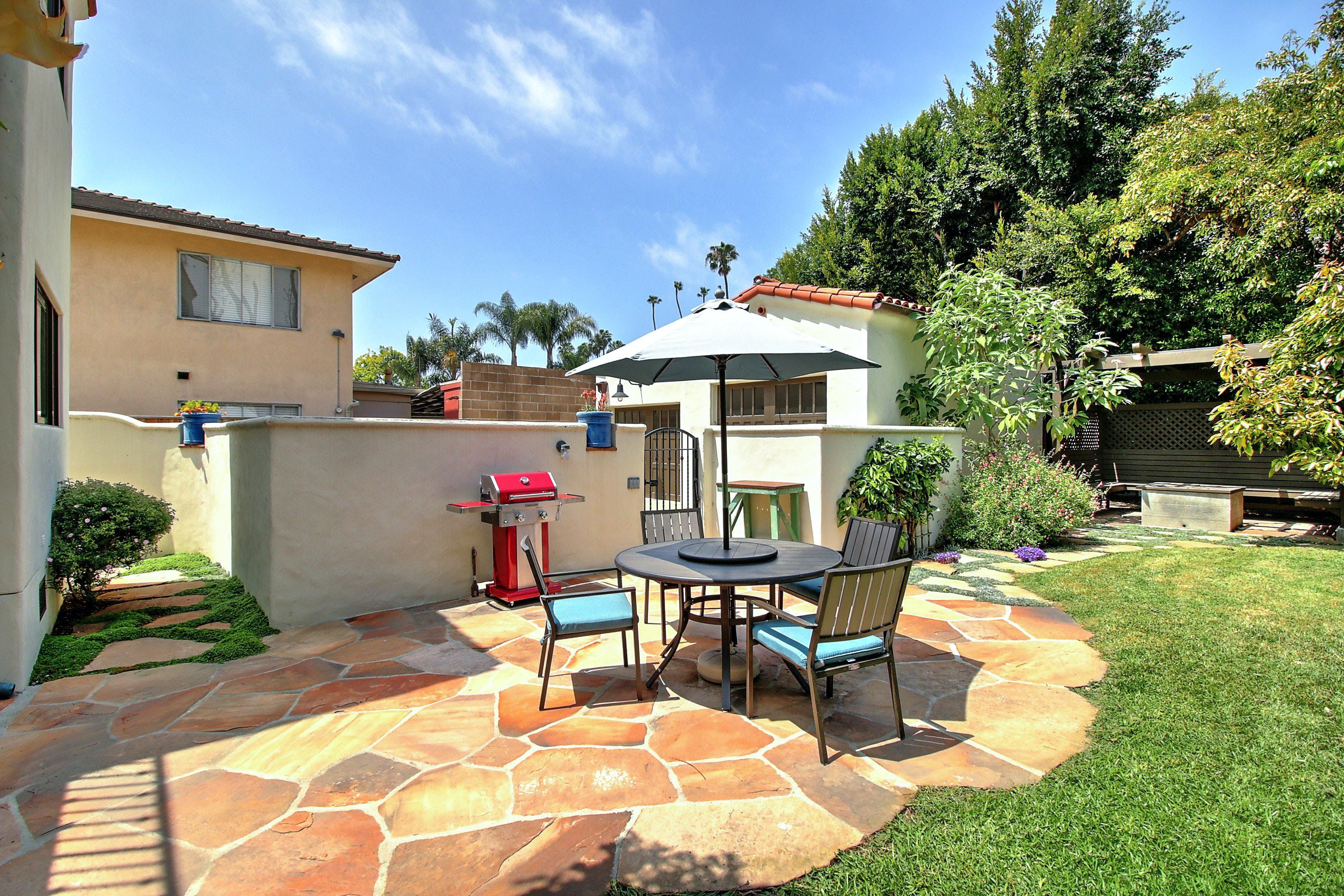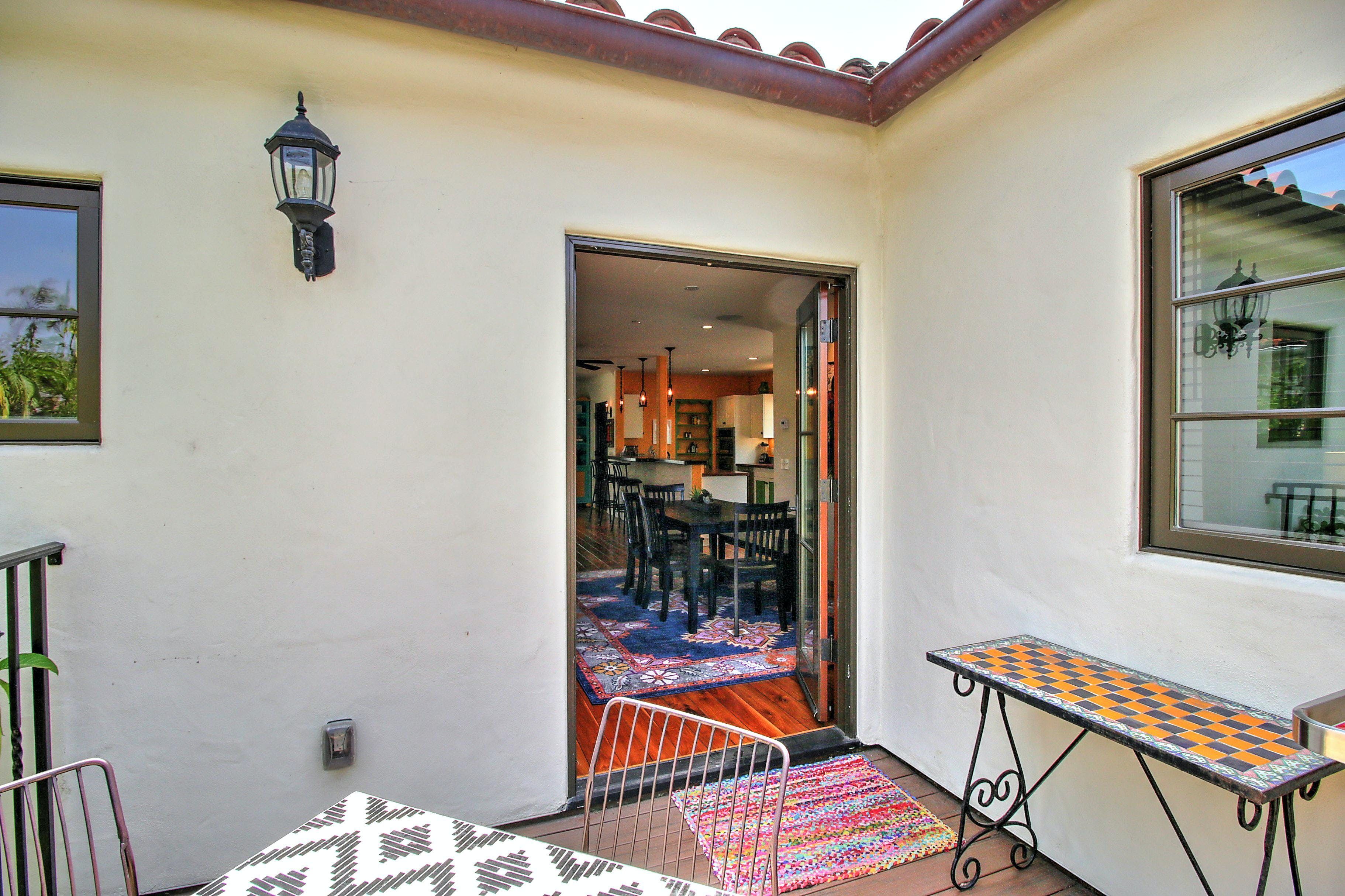 This is a beautiful property located in the heart of West Beach, Santa Barbara. The listing is for two private villas on the same property, each with two bedrooms and two bathrooms, and their own kitchens. The property is new and high-end, with funky interior design inspired by Diego Rivera. It boasts many amenities, including heated flooring in the master bathroom, smart TVs in the living room and master bedroom, brand new furnishings, front and back yard areas, and a 2-car garage with driveway parking. The location is unbeatable, within walking distance of the beach, harbor, State Street, The Funk Zone (a hot new local favorite), and cafes. Guests can rent both villas to have their own private compound for a luxurious vacation experience. All linens, cookware, beach gear, and supplies are provided to ensure guests have a wonderful dining experience or they can relax on brand new furnishings or mattresses after a day of fun activities.