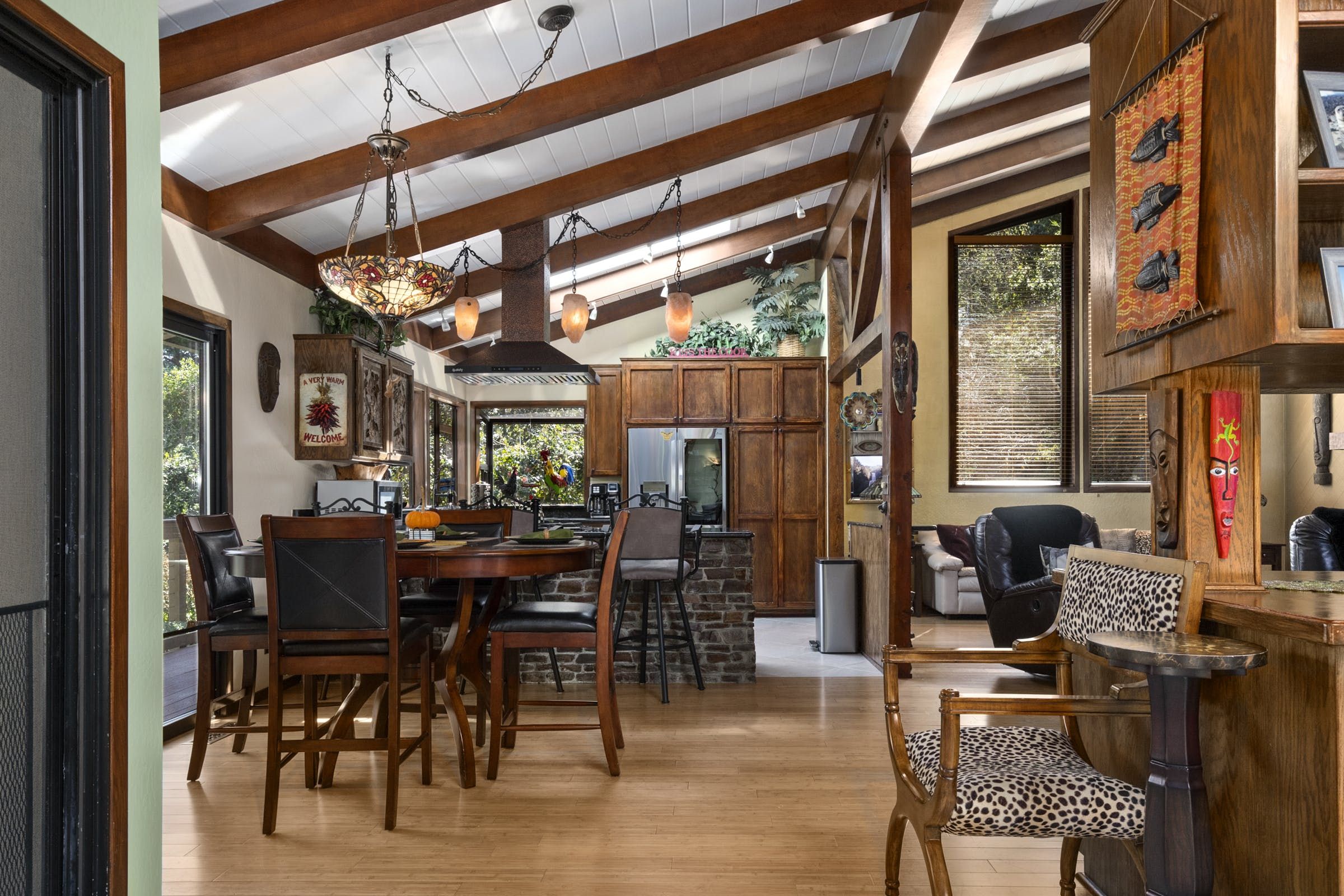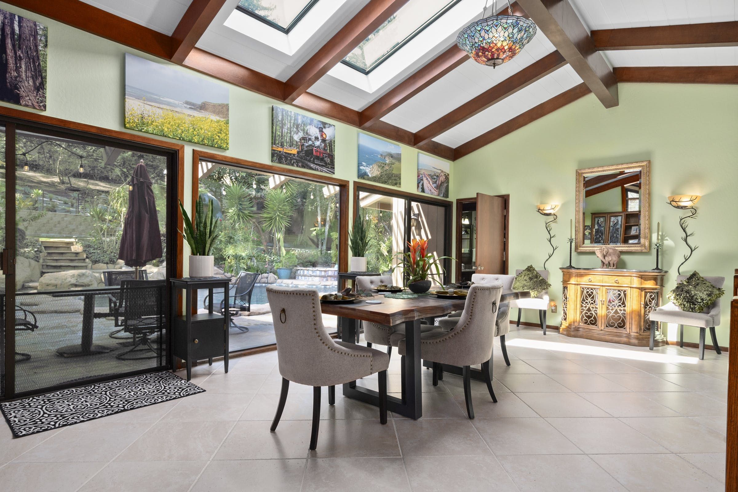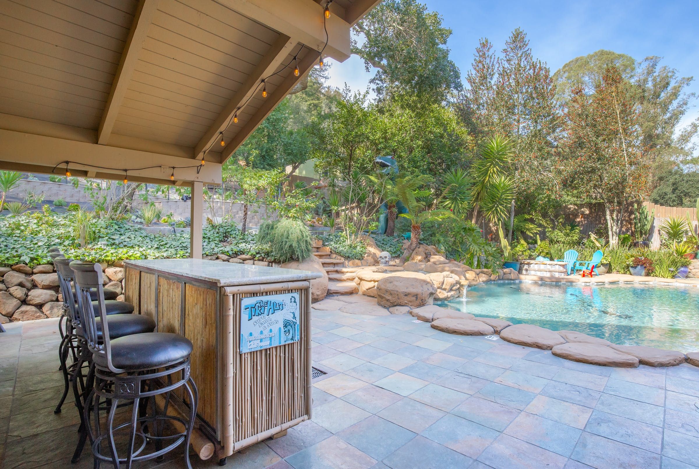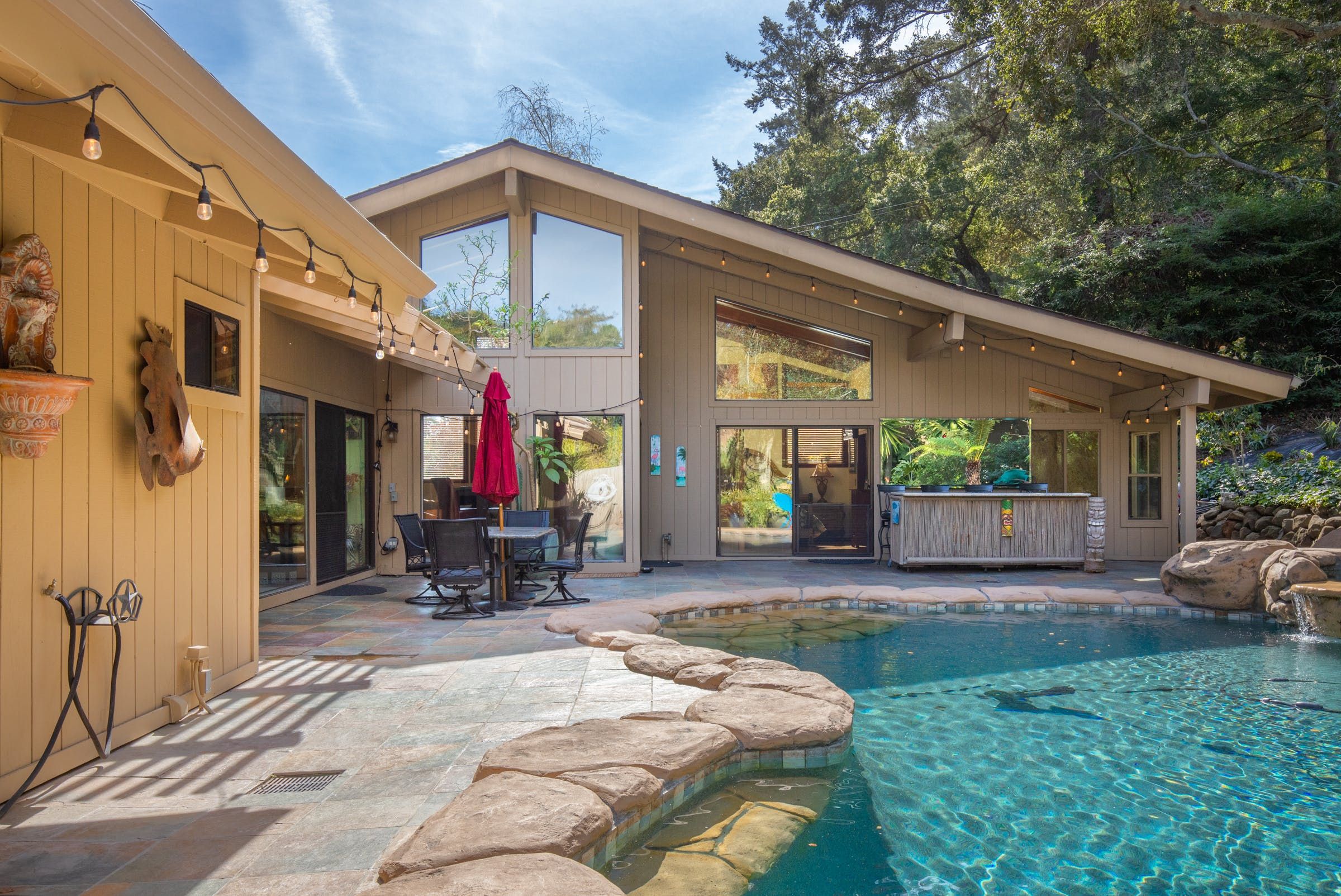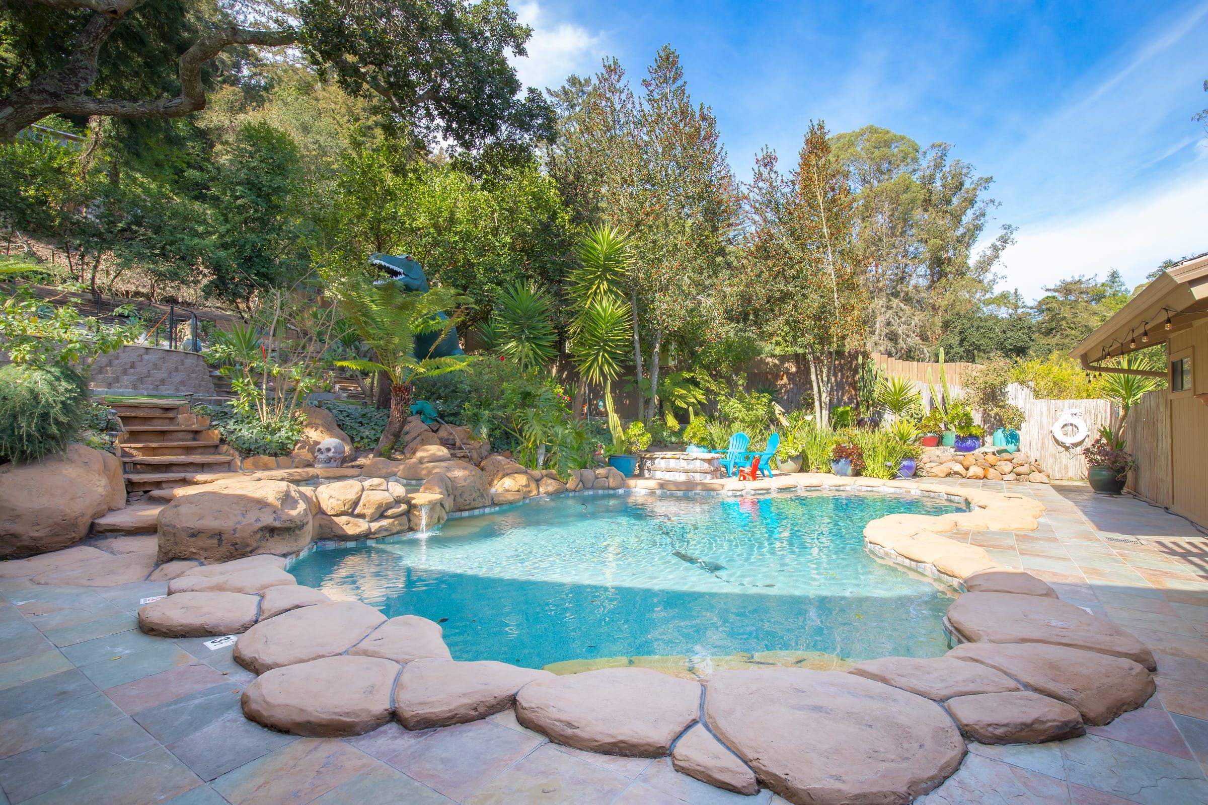 Surrounded by hiking trails, golf courses, and stretches of Pacific coast, this home in Santa Cruz not only has an enviable location, but it’s bursting with the potential for plenty of memories made. The backyard, alone, has a private swimming pool, tiki bar, and a swath of green turf that the kids will love running around on – especially when they’re hiding from the dinosaur. Now, although their ancestor is just a statue, the chickens are very real – find them in their coop when you’re making the rounds outdoors. Pass through trees, make your way up and down steps as you stretch out and shake off the last dregs of sleep, and refresh yourself with a morning swim before going back inside to brew a pot of fresh coffee.
