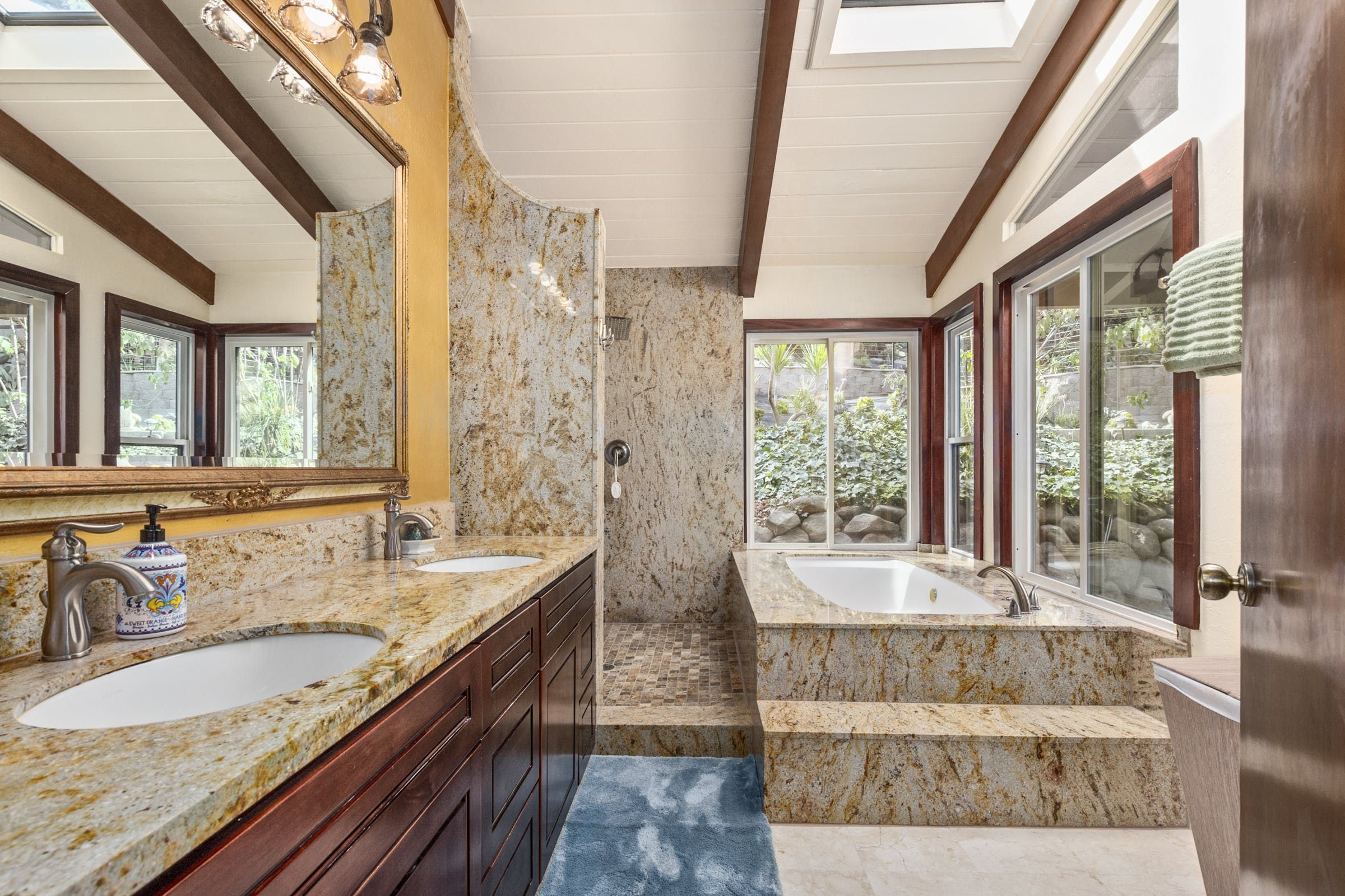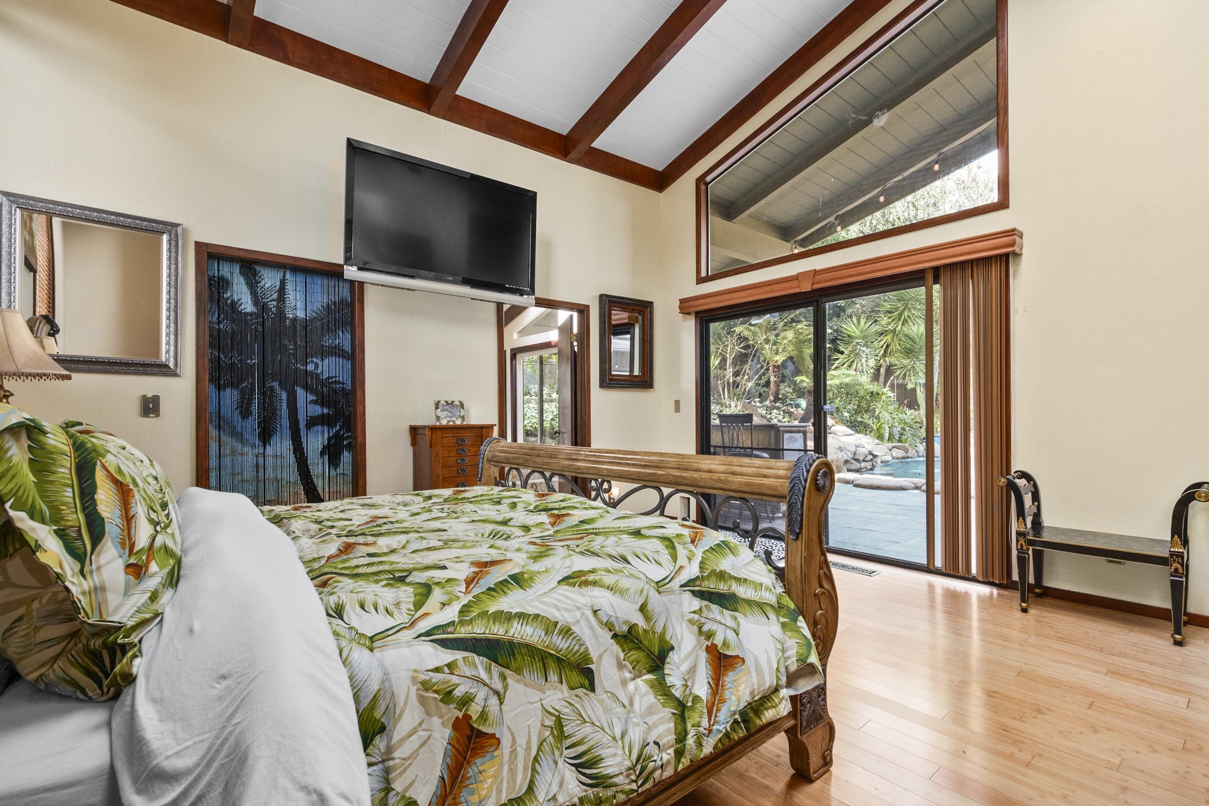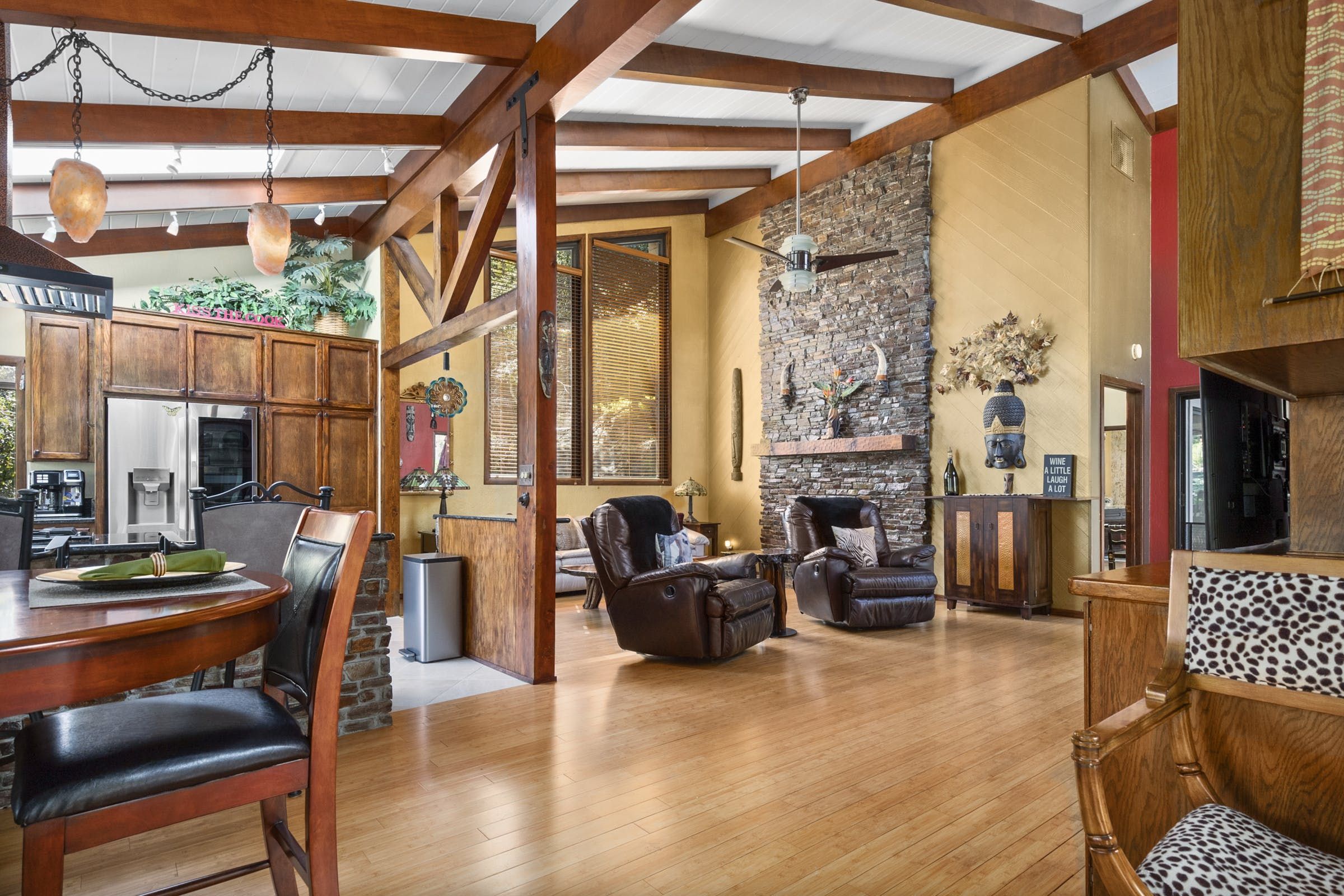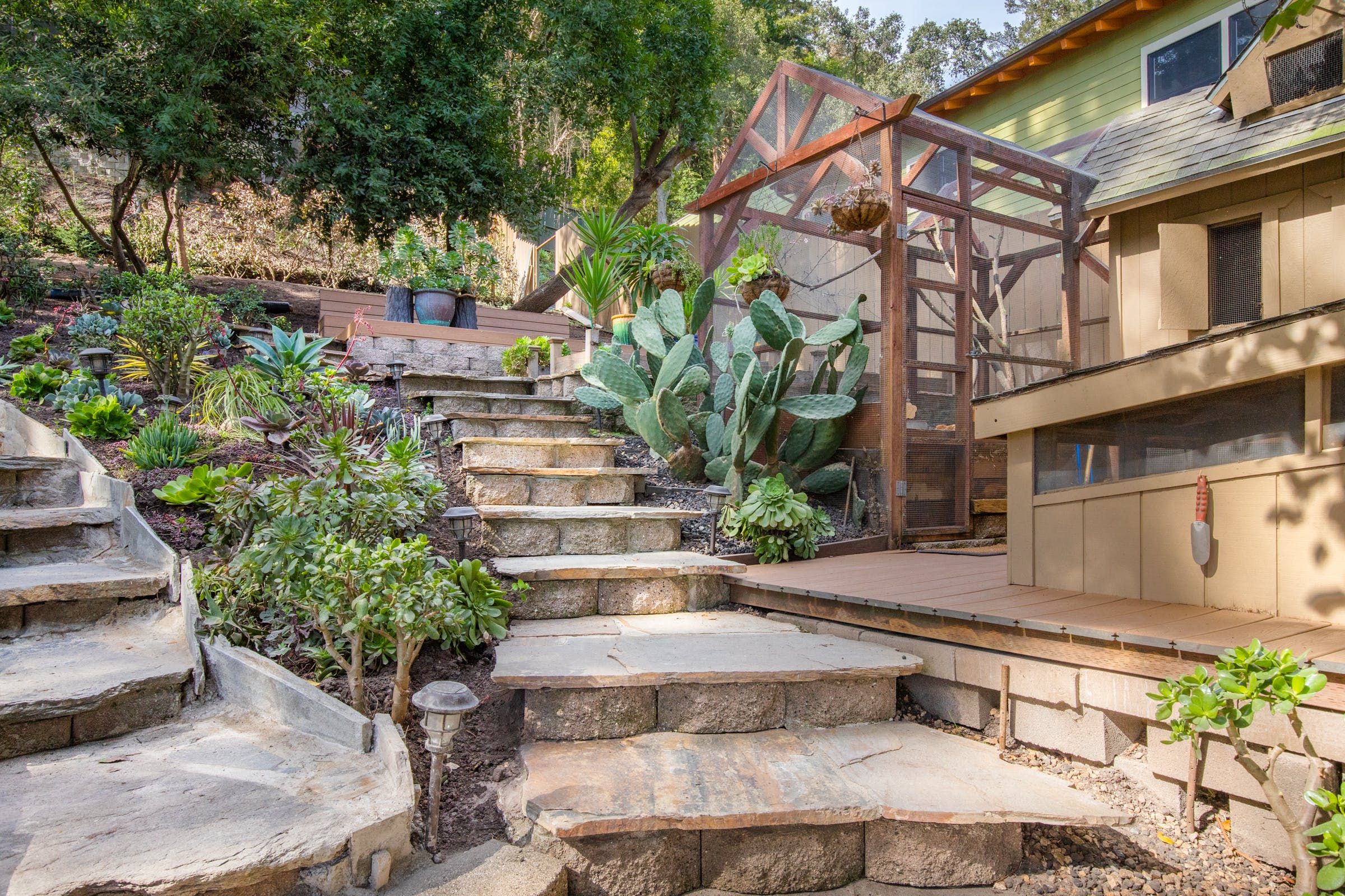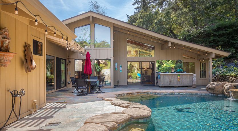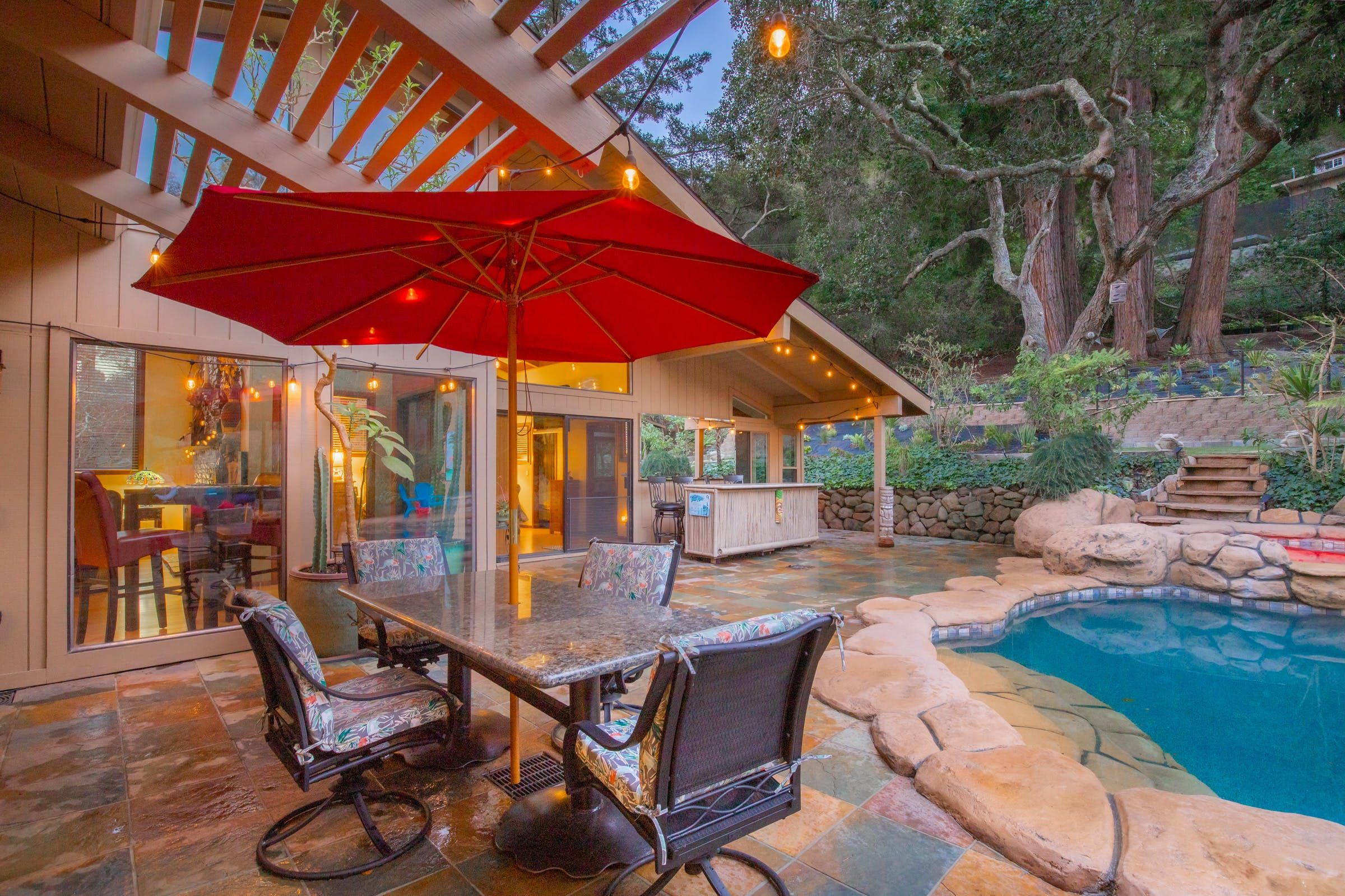Surrounded by hiking trails, golf courses, and stretches of Pacific coast, this home in Santa Cruz not only has an enviable location, but it’s bursting with the potential for plenty of memories made. The backyard, alone, has a private swimming pool, tiki bar, and a swath of green turf that the kids will love running around on – especially when they’re hiding from the dinosaur. Now, although their ancestor is just a statue, the chickens are very real – find them in their coop when you’re making the rounds outdoors. Pass through trees, make your way up and down steps as you stretch out and shake off the last dregs of sleep, and refresh yourself with a morning swim before going back inside to brew a pot of fresh coffee.