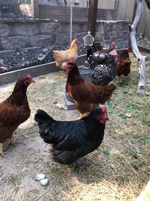 *There are nine chickens in the coop here who the landlords – in the house next door – care for