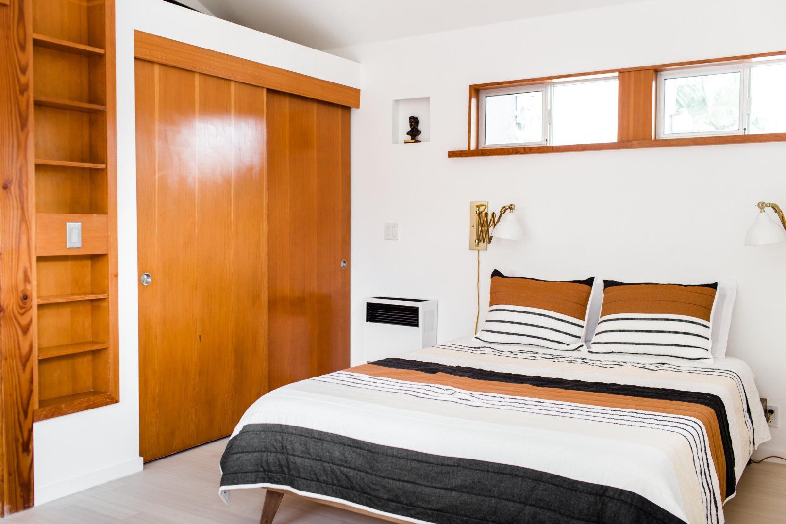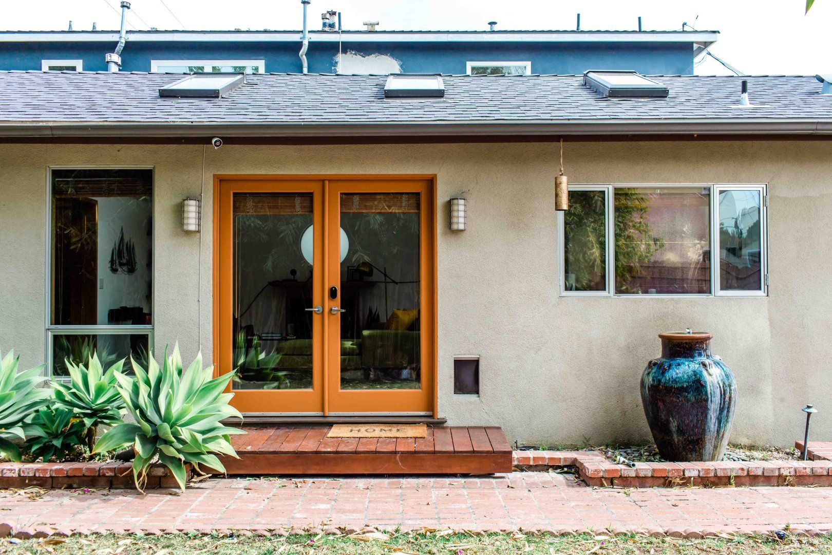 This effortlessly stylish bungalow captures Santa Monica's easy, breezy attitude. There are 1970s vibes galore in the home, with sliding pine doors, a mosaiced jet bathtub and pops of burgundy and olive green against whitewashed walls.