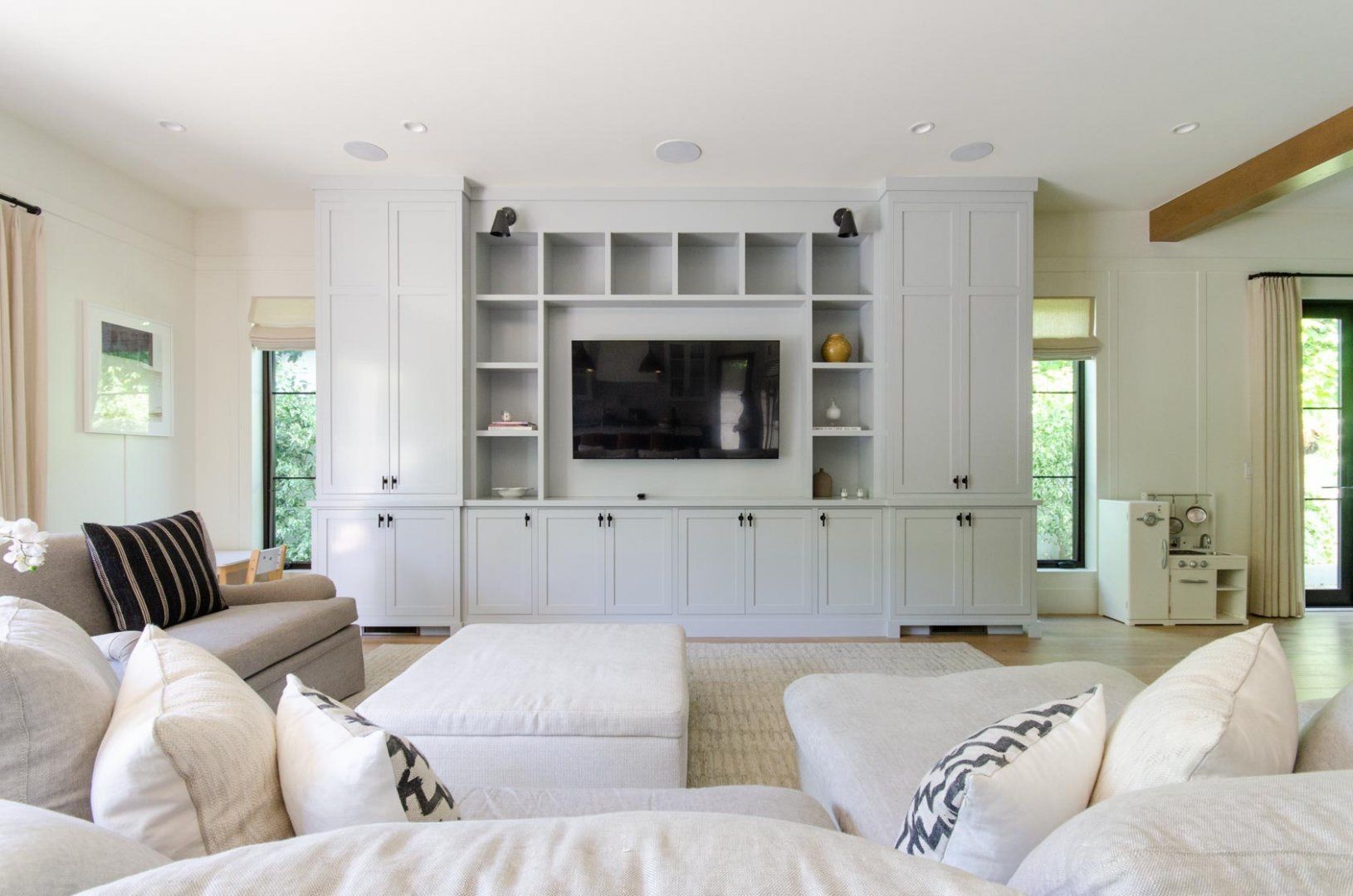 Occupying a plum spot in Pacific Palisades – home to celebrities, influencers and other affluent types – this five-bedroom apartment suits a large family group. Fluffy pampas grass, leather chairs and navy cabinets make this an eclectic take on the farmhouse style, with a long dining table providing the perfect setting for games night. Heading out? A spare, industrial-style vanity is a stylish setting for your toilette – one of the sinks has three taps, so there'll be no fighting for space. Jump into the free-standing tub that sits right in the window. An office corner comes with plenty of space for storing papers and files, should you need to catch up on work. Wind down in your minimalist bedroom with a light read.