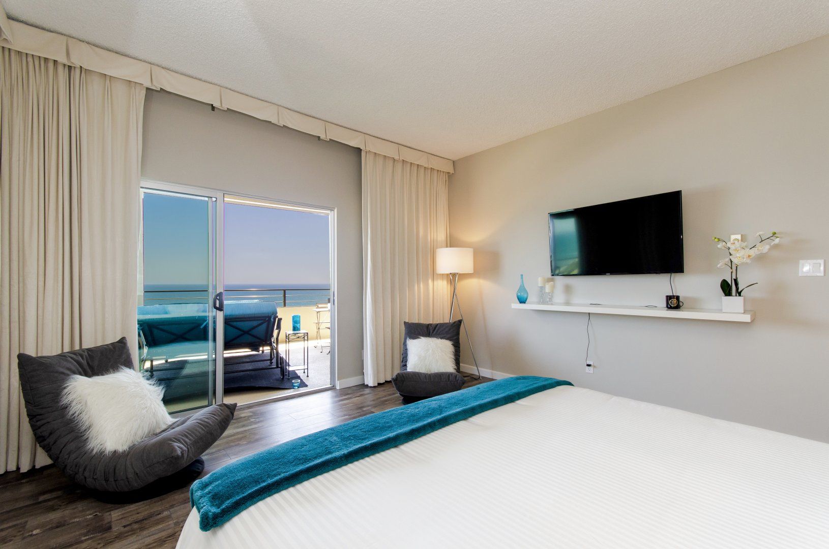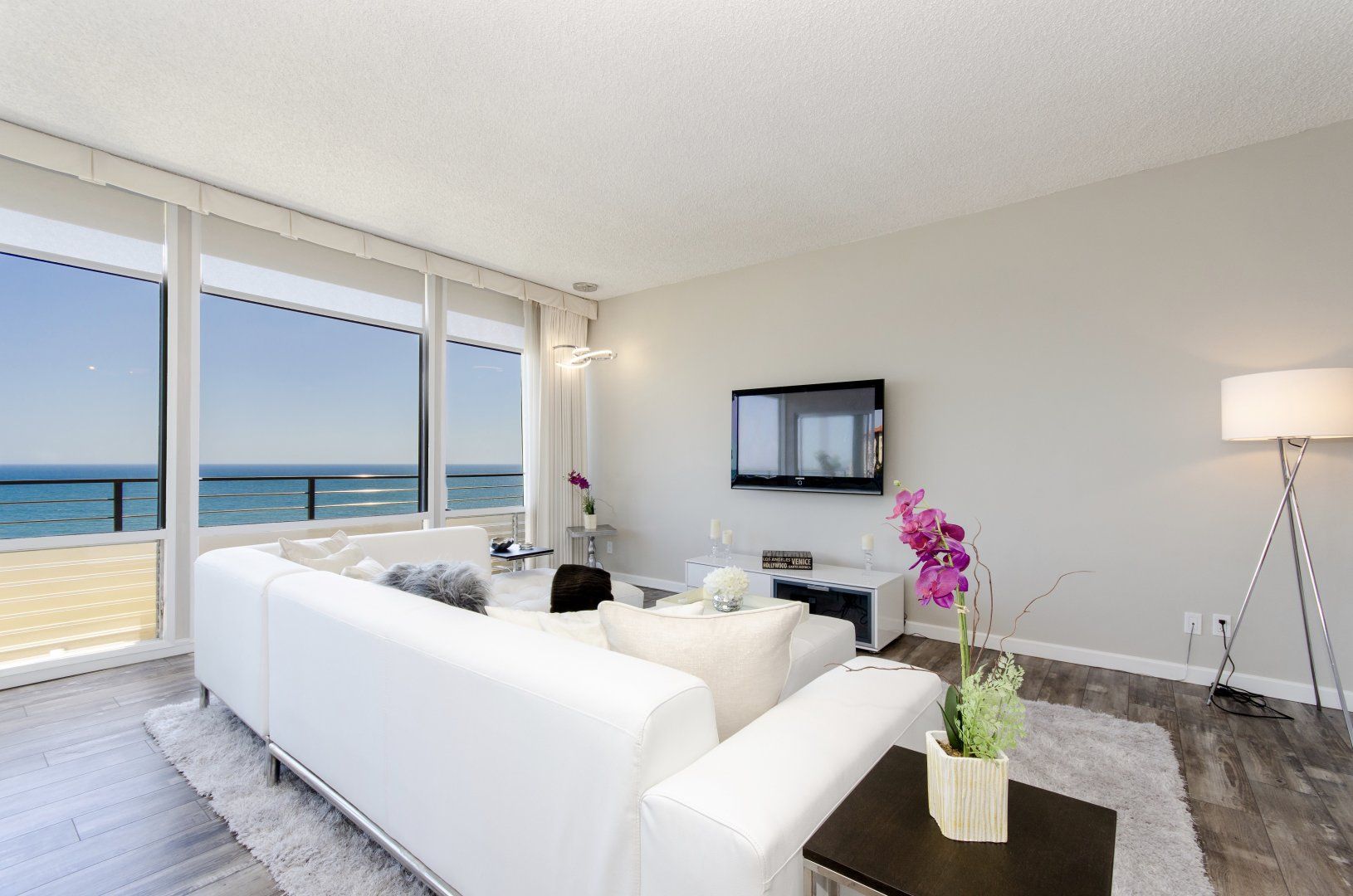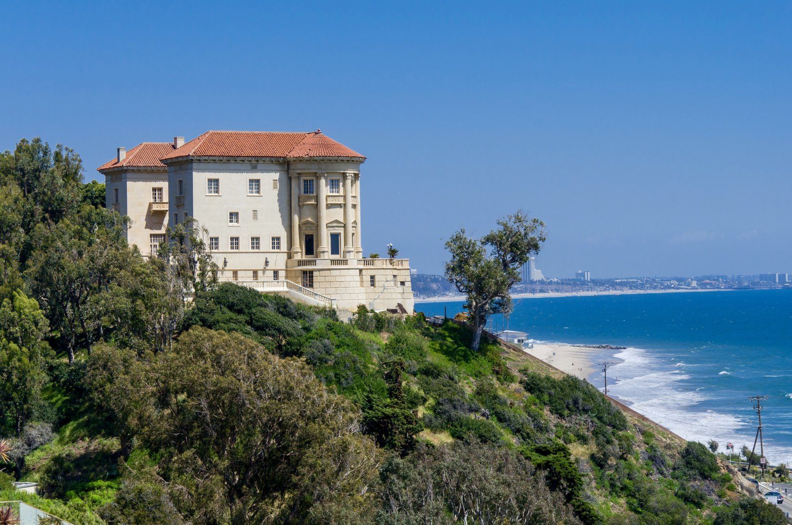 As the ocean runs along the coast by Malibu and Pacific Palisades, your waterside retreat is right on the border between the two. Stepping into your apartment, the sleek, modern interiors offer white as the main colour – a perfect blank canvas for the windows and doors opening up to views of the sapphire waters of the Pacific Ocean, and blue Californian skies. Whether you’re relaxing on the L-shaped sofa inside, or savouring a glass of organic chardonnay on the private balcony, coastal scenery comes as standard. Thanks to touches like sliding glass doors, huge mirrors, and Starck ghost chairs in the dining area, this home feels wonderfully spacious and bright. But as the host provides beach towels and you're just six minutes from Ratner Beach, there’s no excuse not to meander to the coast for a lazy afternoon. Another easy ten-minute walk will take you to the Getty Villa. This hilltop marvel is a museum of antiquities where you can find bronze statues relaxing in gardens and pools, and admire over forty thousand items in the collection. To end the day, take a fifteen-minute taxi to Santa Monica Pier – with funfairs and classic eateries, it’s worth staying until long after sunset.