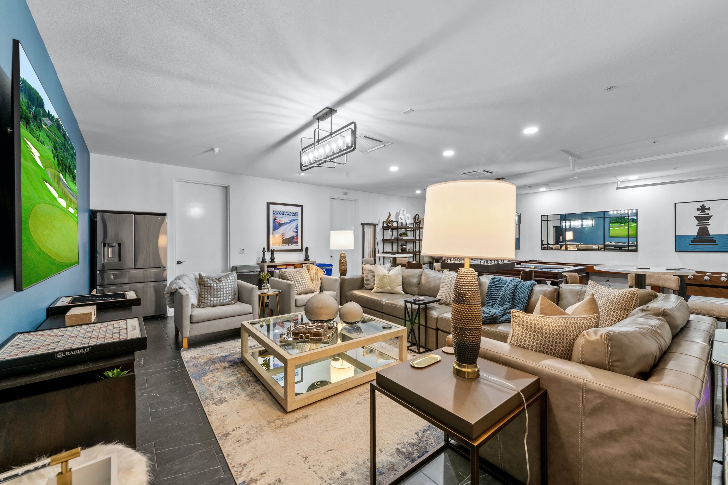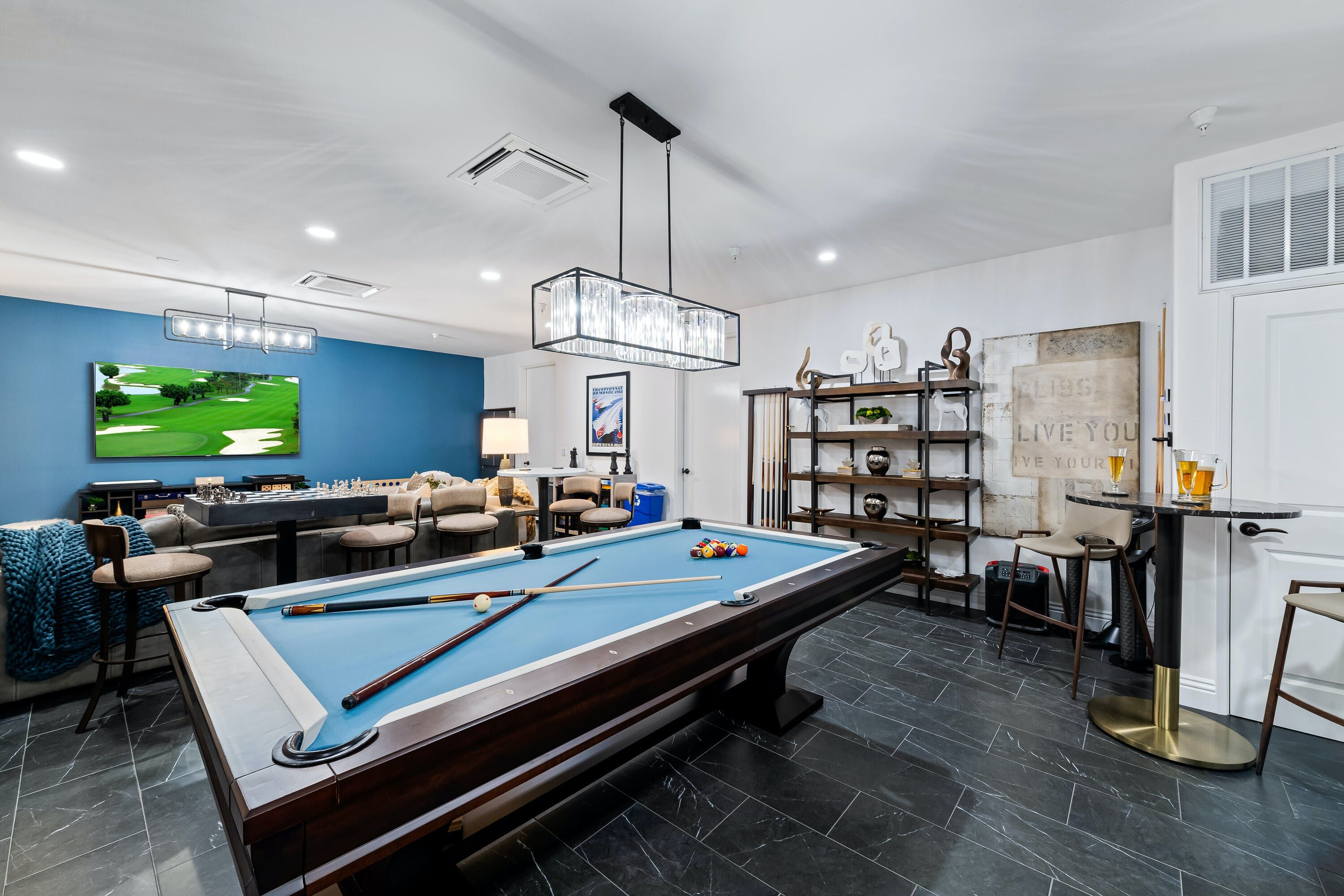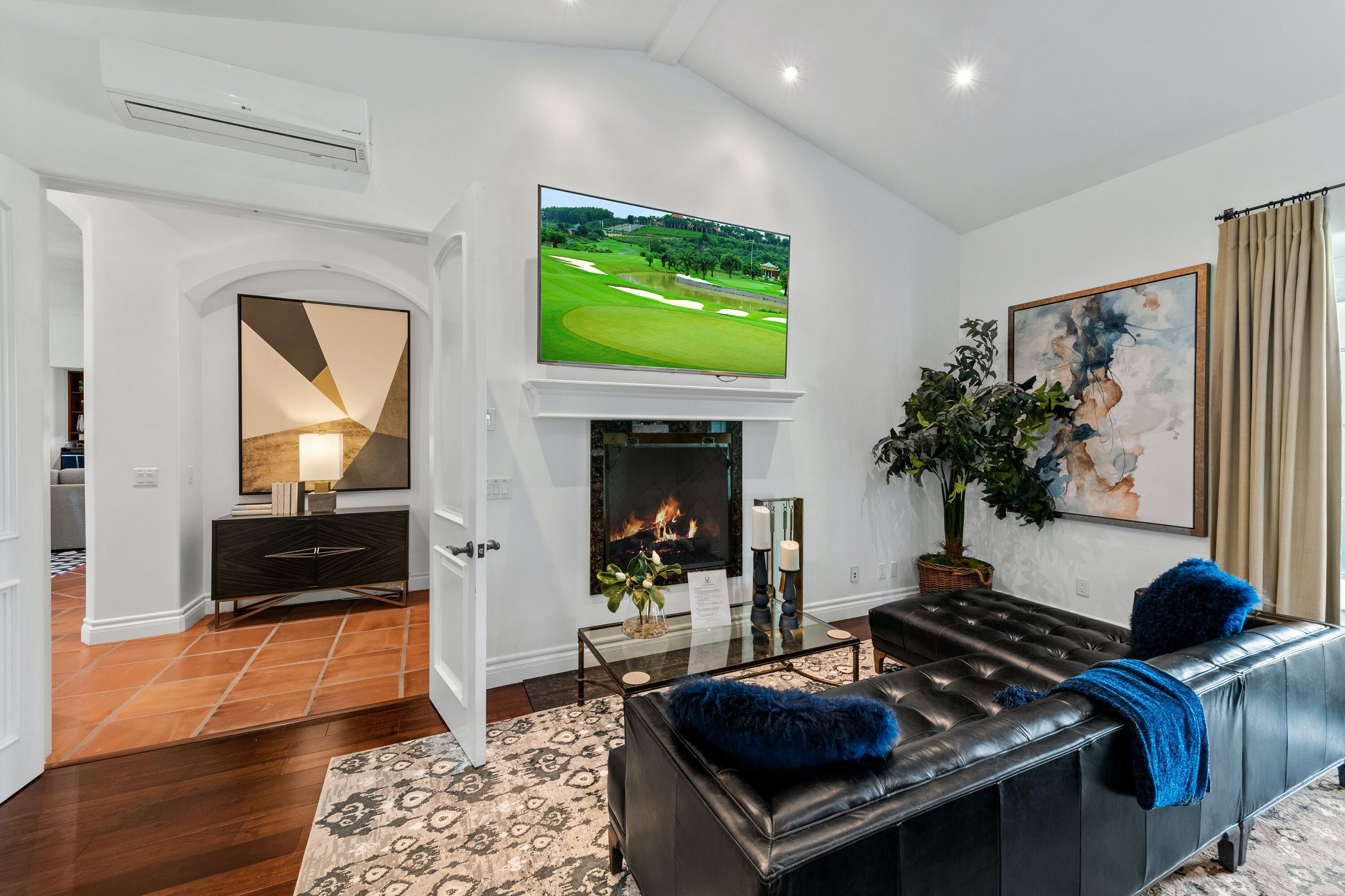 Inside, there are plenty more impressive features. There's another gizmo-stocked kitchen that's only missing a chef to do the cooking – which you can, of course, hire through the host if you so wish – as well as lots of bold artwork on the walls, an inbuilt fireplace and spa-worthy bathrooms.