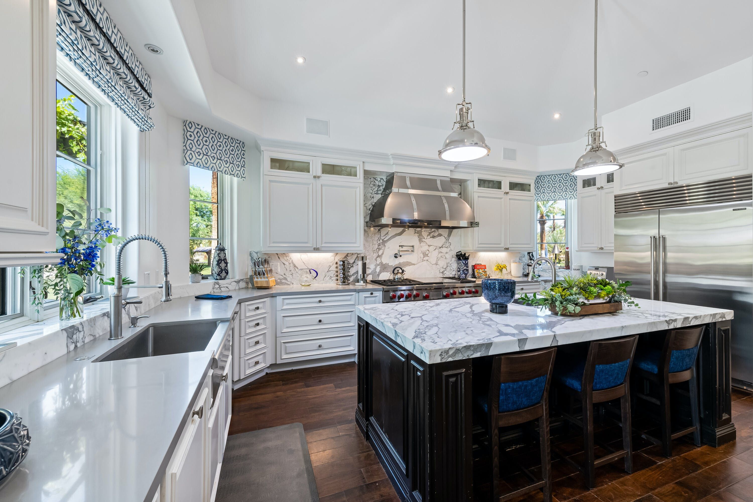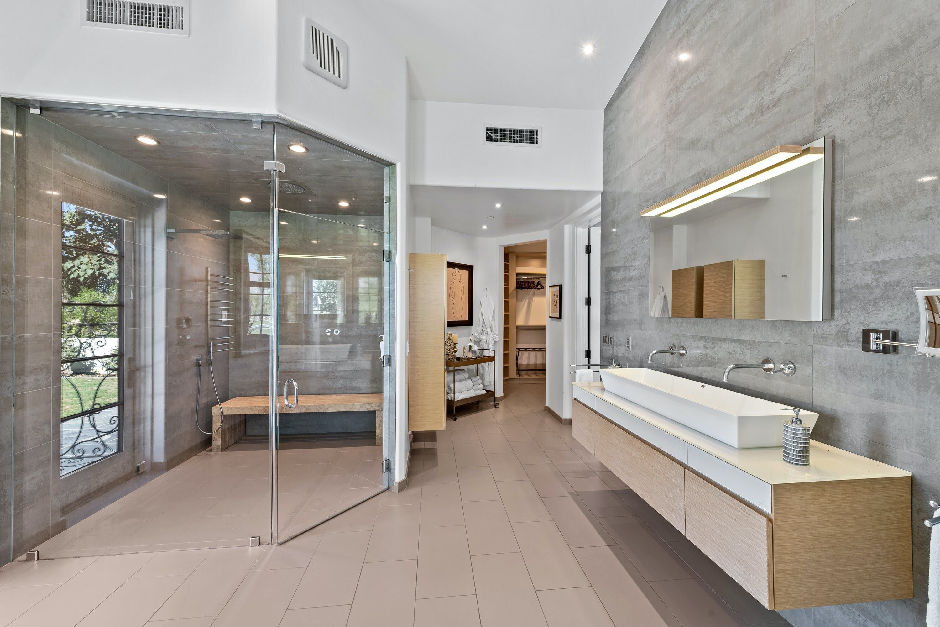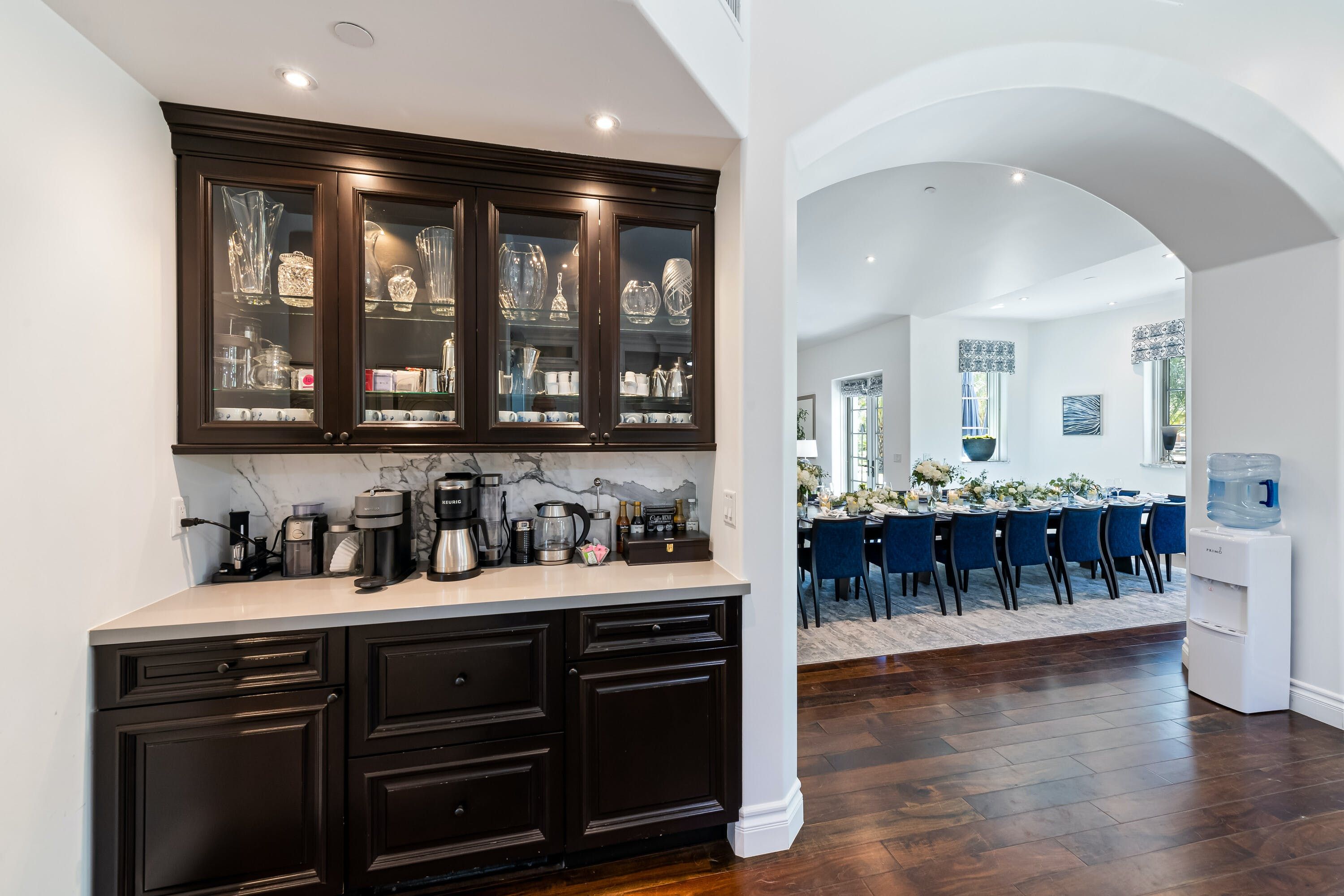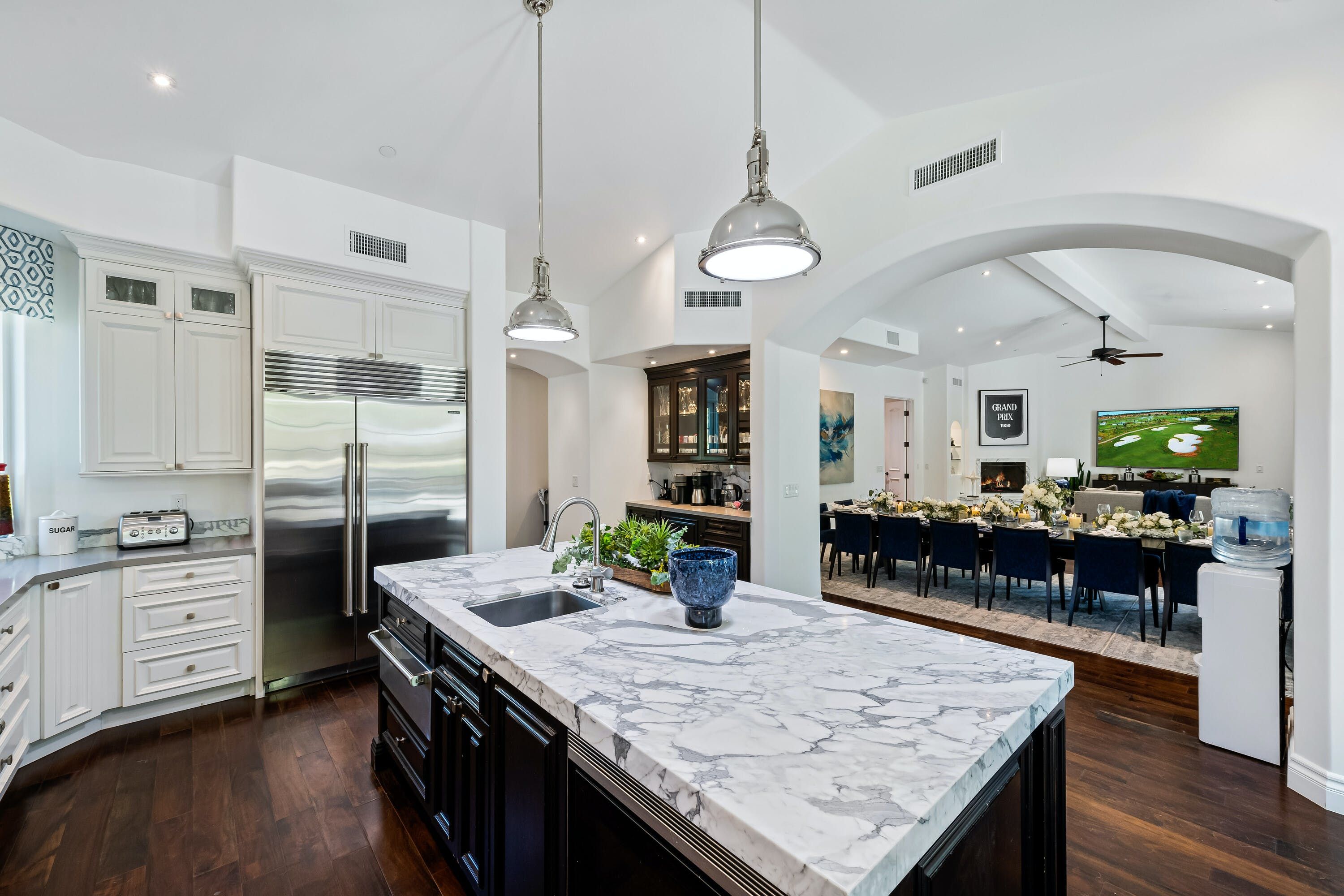 Everything in this incredible Mediterranean-inspired villa is super-sized – the home itself, the verdant grounds surrounding which span twenty acres and the invitingly blue swimming pool that sits in the middle of this space. As you might imagine, it's an ideal location for a wedding or any other large ceremony, but it's just as suitable for a decadent getaway.