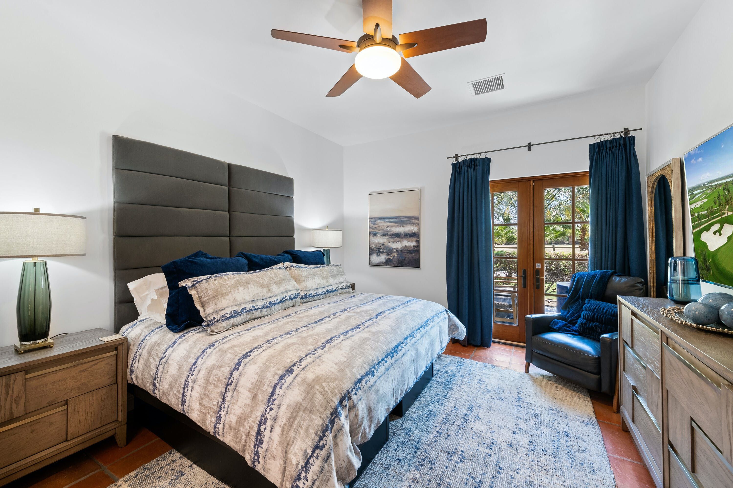 Elsewhere outside, there's a fully-equipped outdoor kitchen, as well as a long alfresco dining table on a pretty palm-fringed patio where you can enjoy the fruits of your labour. When you want to relax after dinner, the bubbling water of the hot tub awaits.