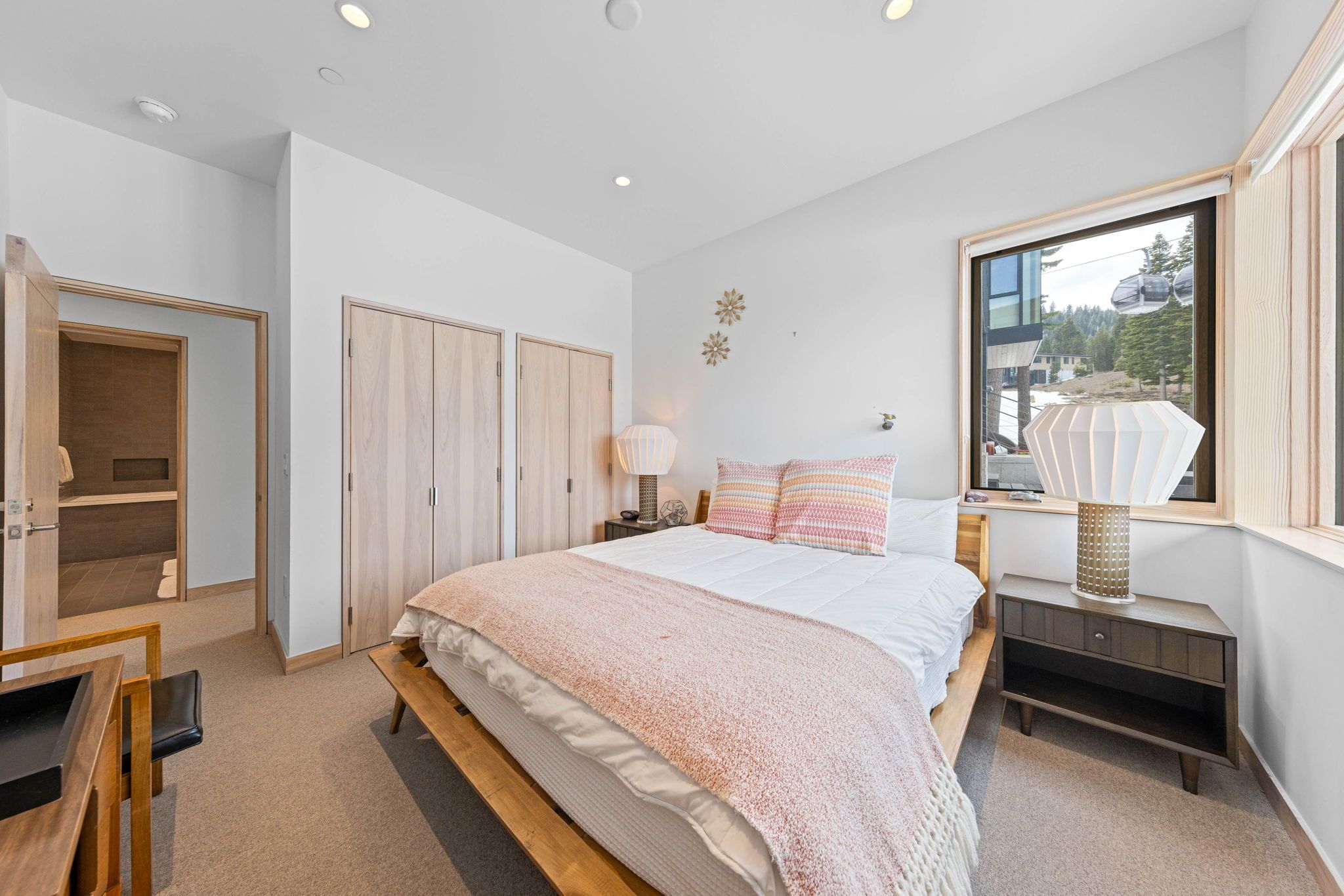 Set directly on Northstar’s Home Run Trail, this is as close to true ski-in/ski-out as it gets. Step outside, clip in, and you’re on the mountain in minutes – then ski straight back for lunch or a soak in the private hot tub. Inside, practical touches include ski storage, a boot dryer and flexible sleeping across four bedrooms, including two primary suites. You’ll also have access to the nearby Tree House amenity complex, with a heated pool, fitness centre, games room and seasonal door-to-door ski shuttle. Dog-friendly, calm and mid-mountain, this hideaway is best suited to families or groups focused on slope time and downtime, rather than nightlife.