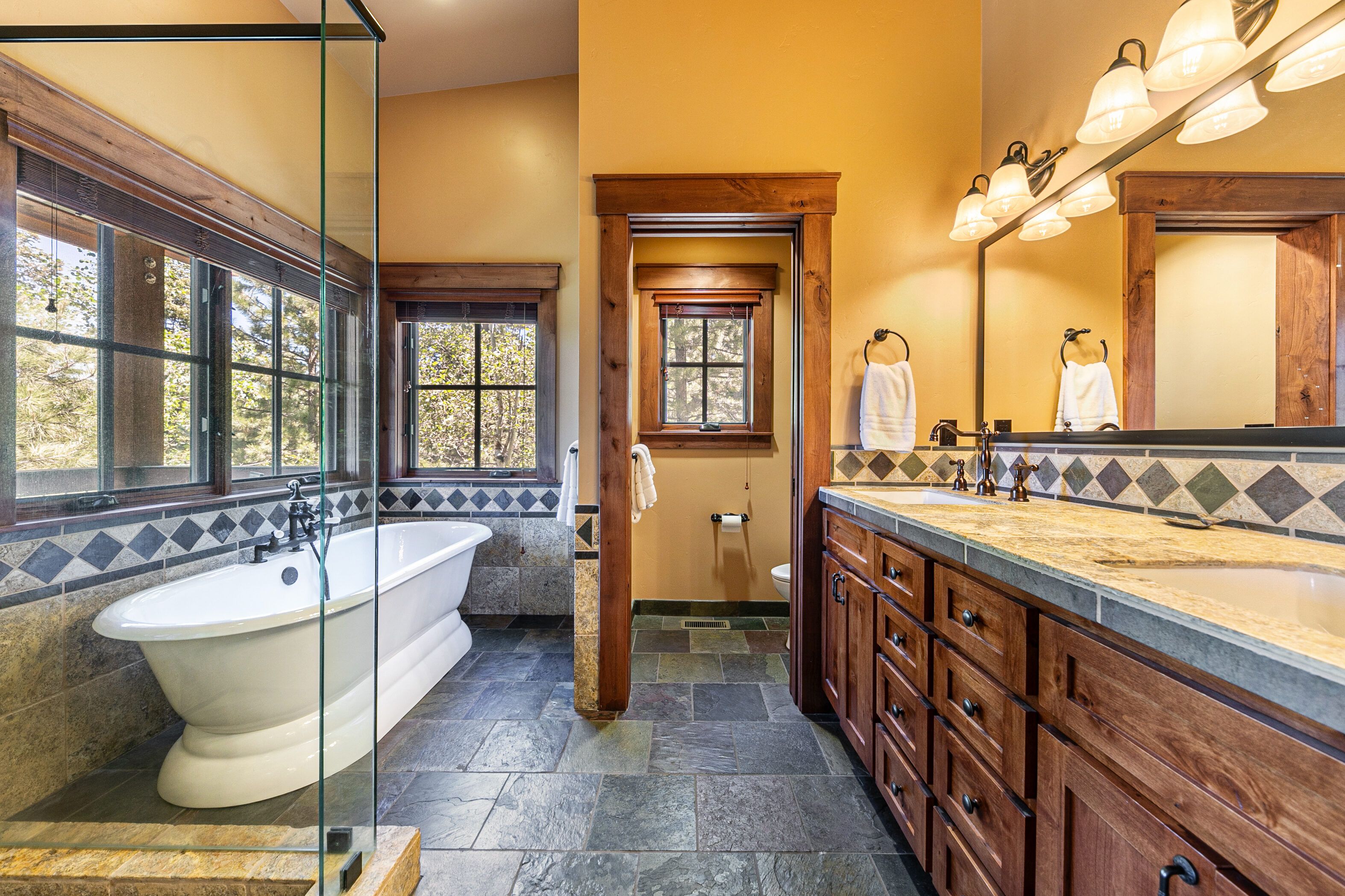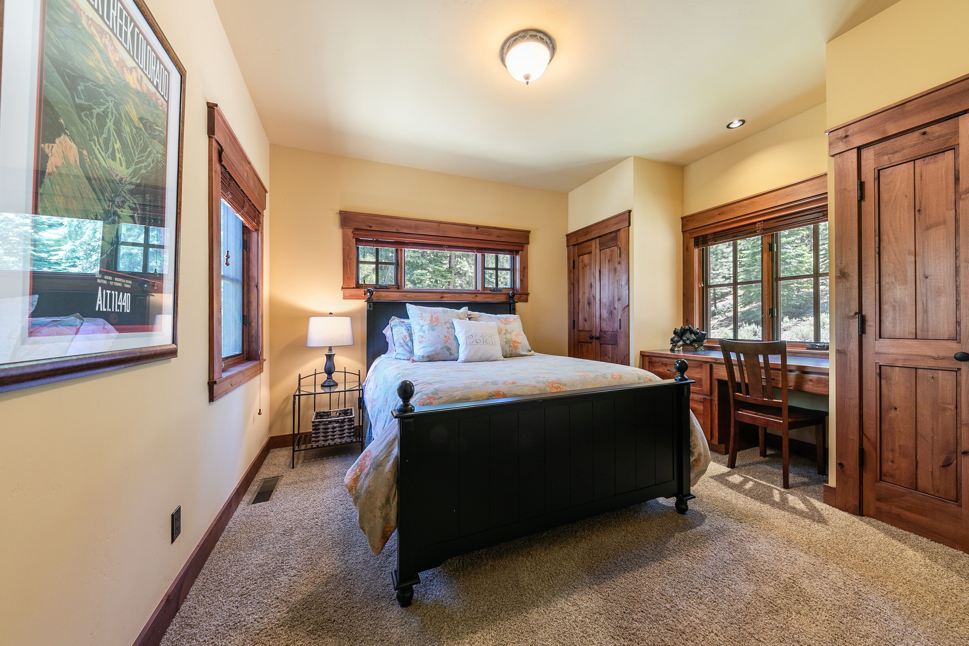Wake up to Martis Valley views, step straight onto the trail from your patio, and be on the slopes or in the village within minutes. Set on a forested hillside in a resort, this Energy Star–certified cabin blends sustainability with serious style. Reclaimed wood, exposed beams and natural stone give it that elevated lodge feel, while vaulted ceilings and wide-plank floors keep things airy and warm. The open living space centres around a dramatic stone fireplace, flowing easily into a well-equipped kitchen with a generous island made for slow breakfasts and sociable dinners. Three thoughtfully designed bedrooms, including a serene primary suite with spa-like bath, offer comfort after full days outdoors. With a wraparound patio and seasonal shuttle at your door, adventure here feels effortless.